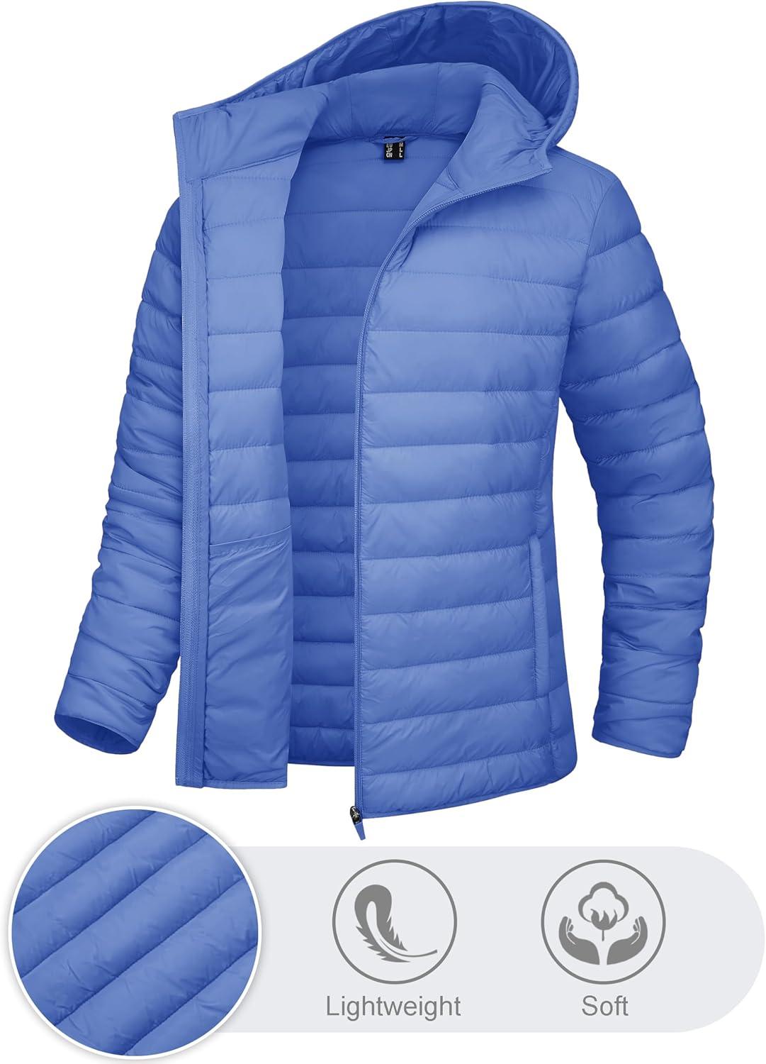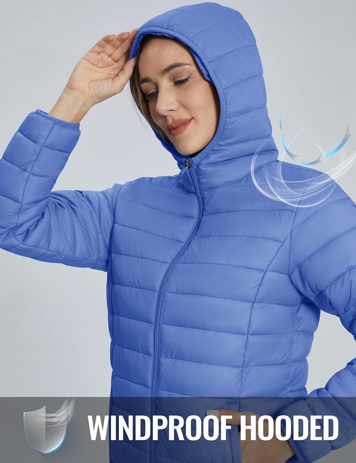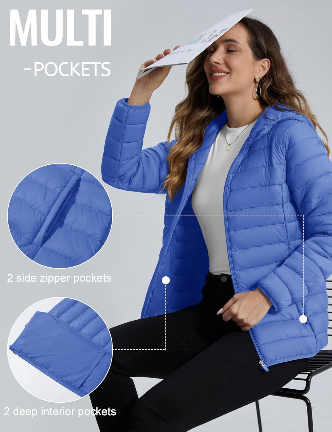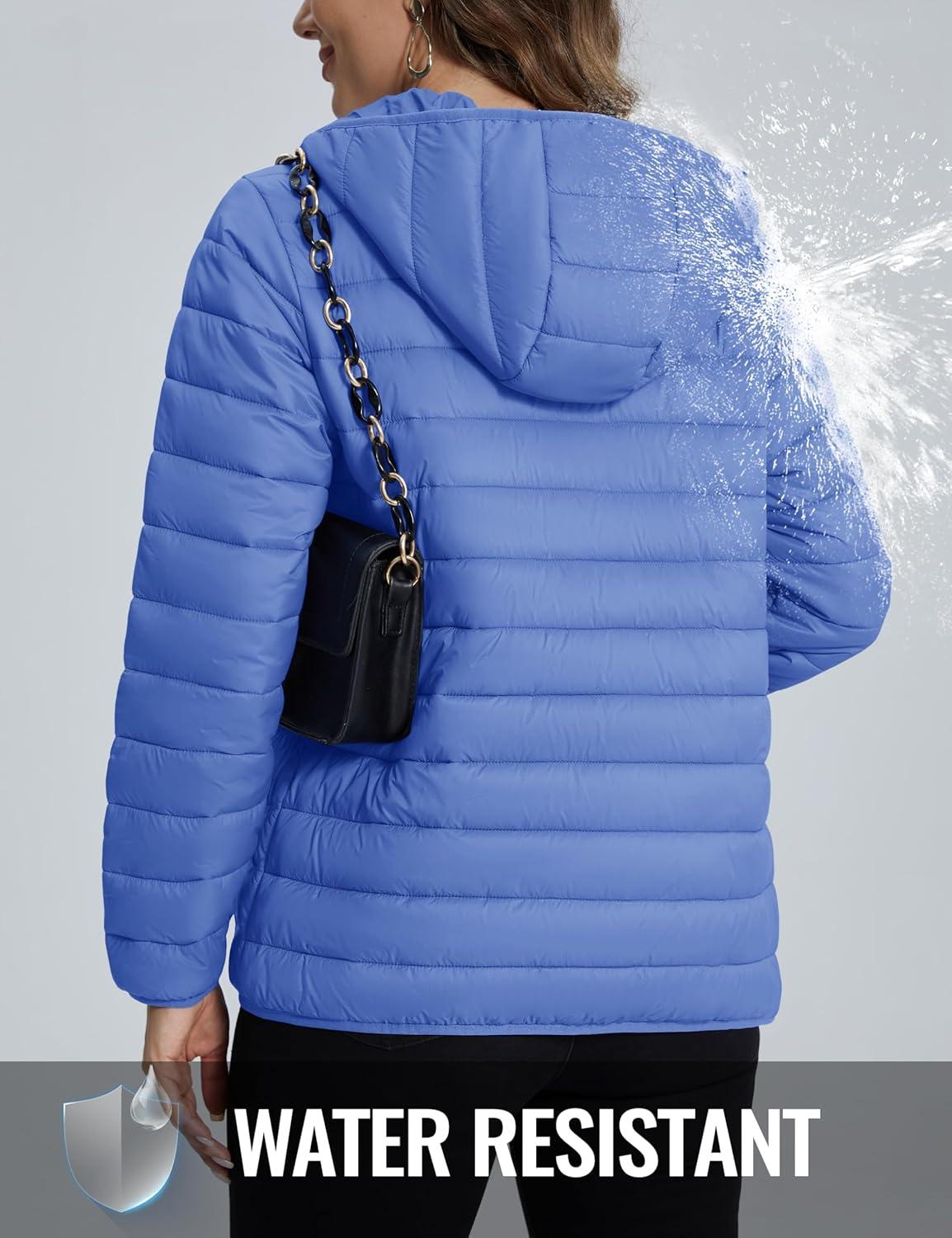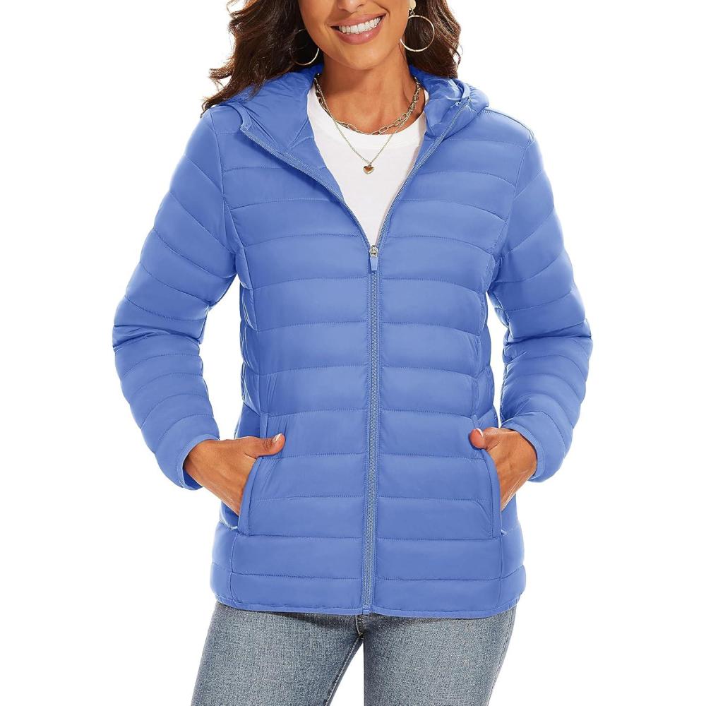 TACVASEN Women’s Lightweight Puffer Jacket with Hood Pockets Quilted Padded Full-zip Water-Resistant Winter Coat(Light Blue)