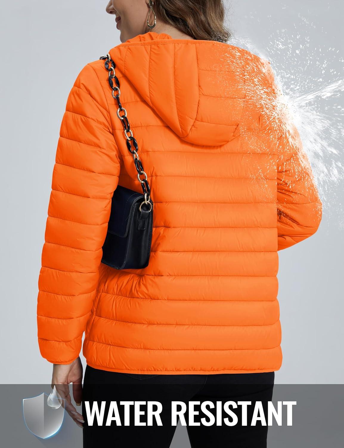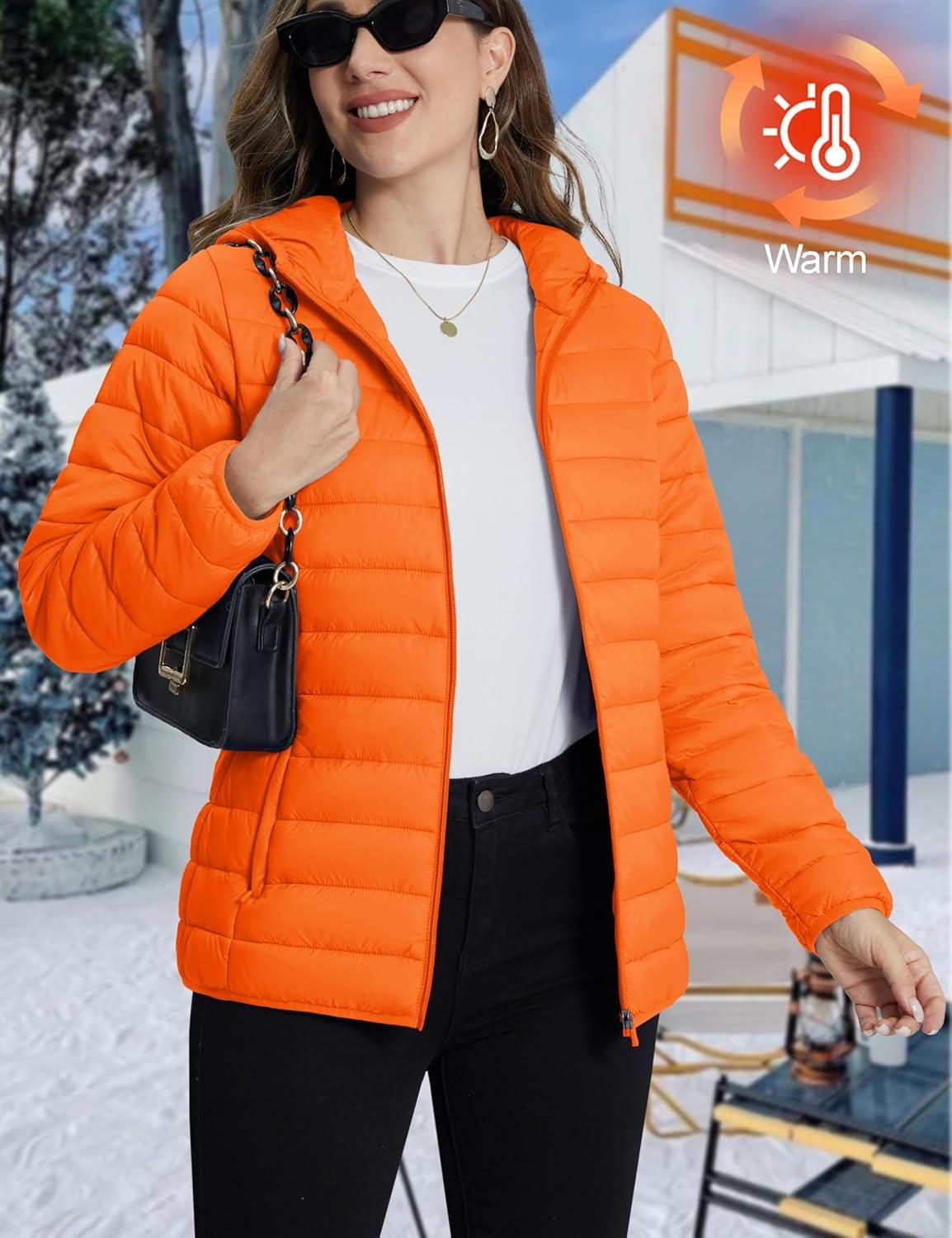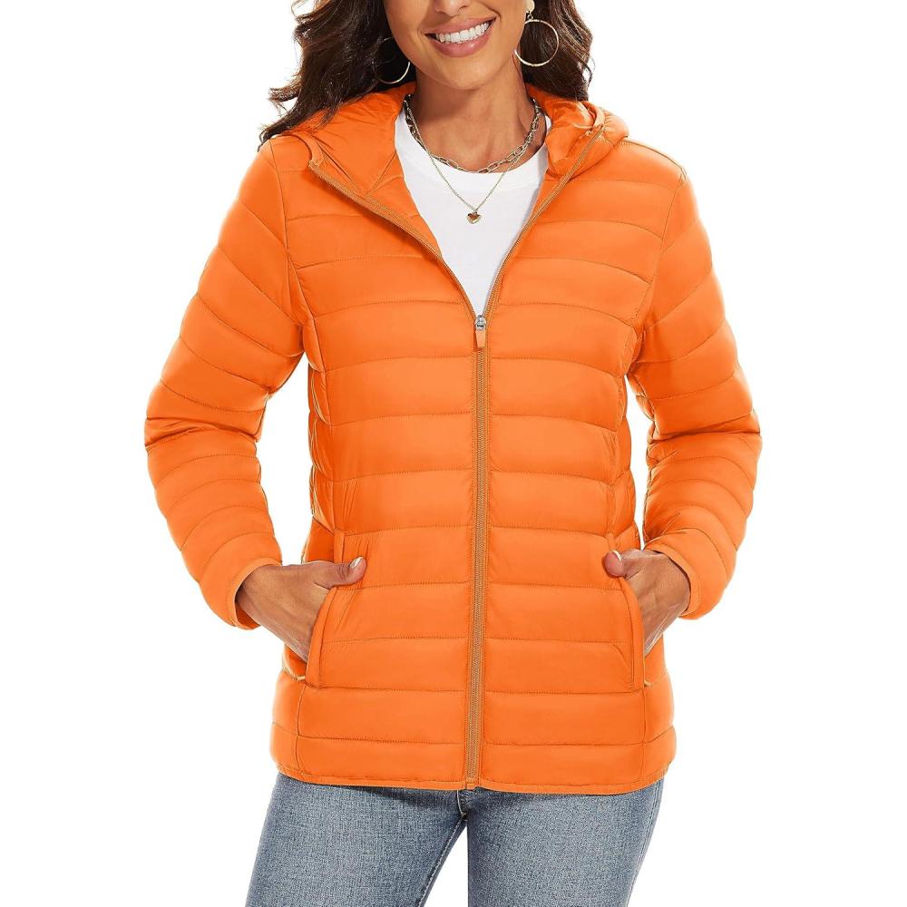 TACVASEN Women’s Lightweight Puffer Jacket with Hood Pockets Quilted Padded Full-zip Water-Resistant Winter Coat(Orange)