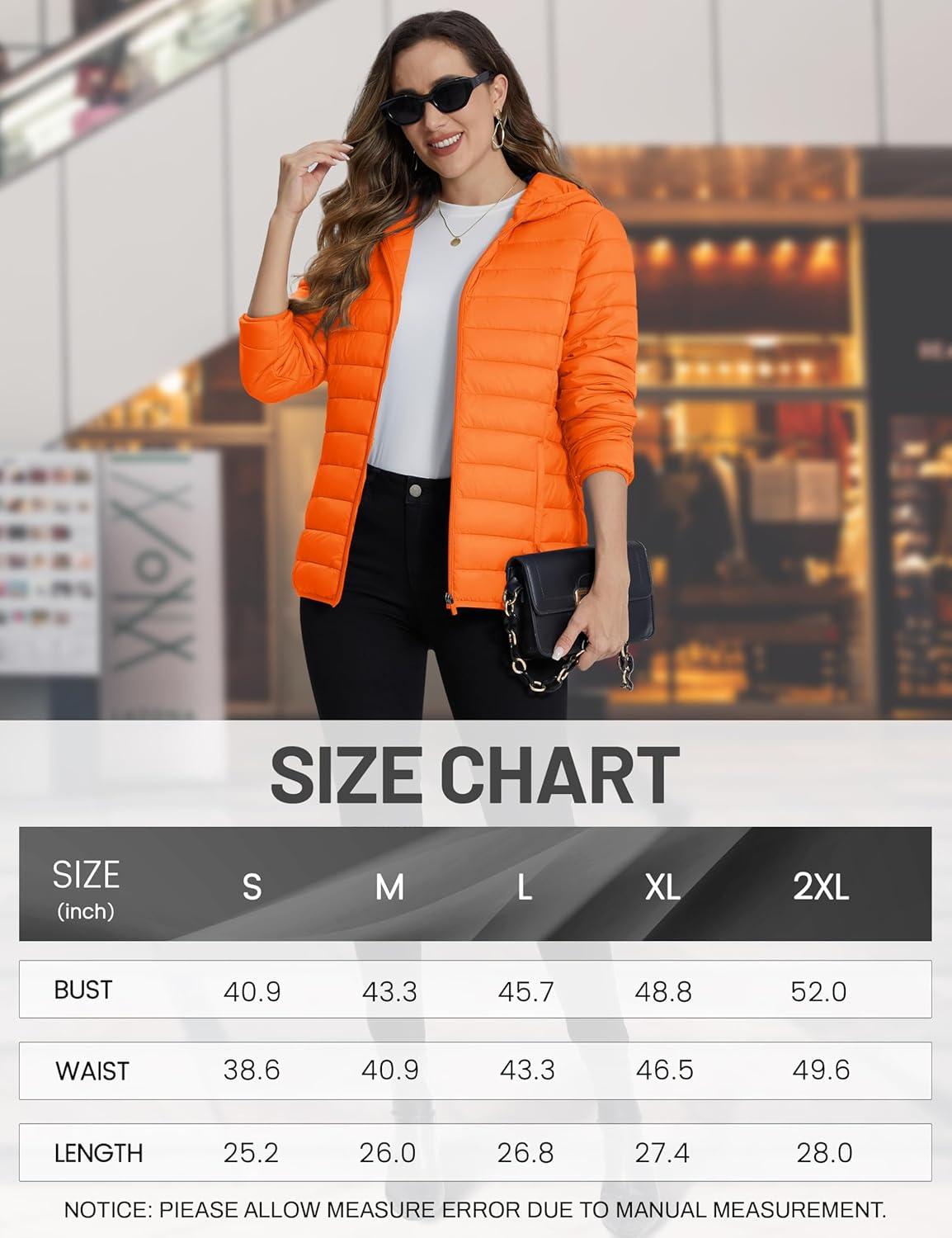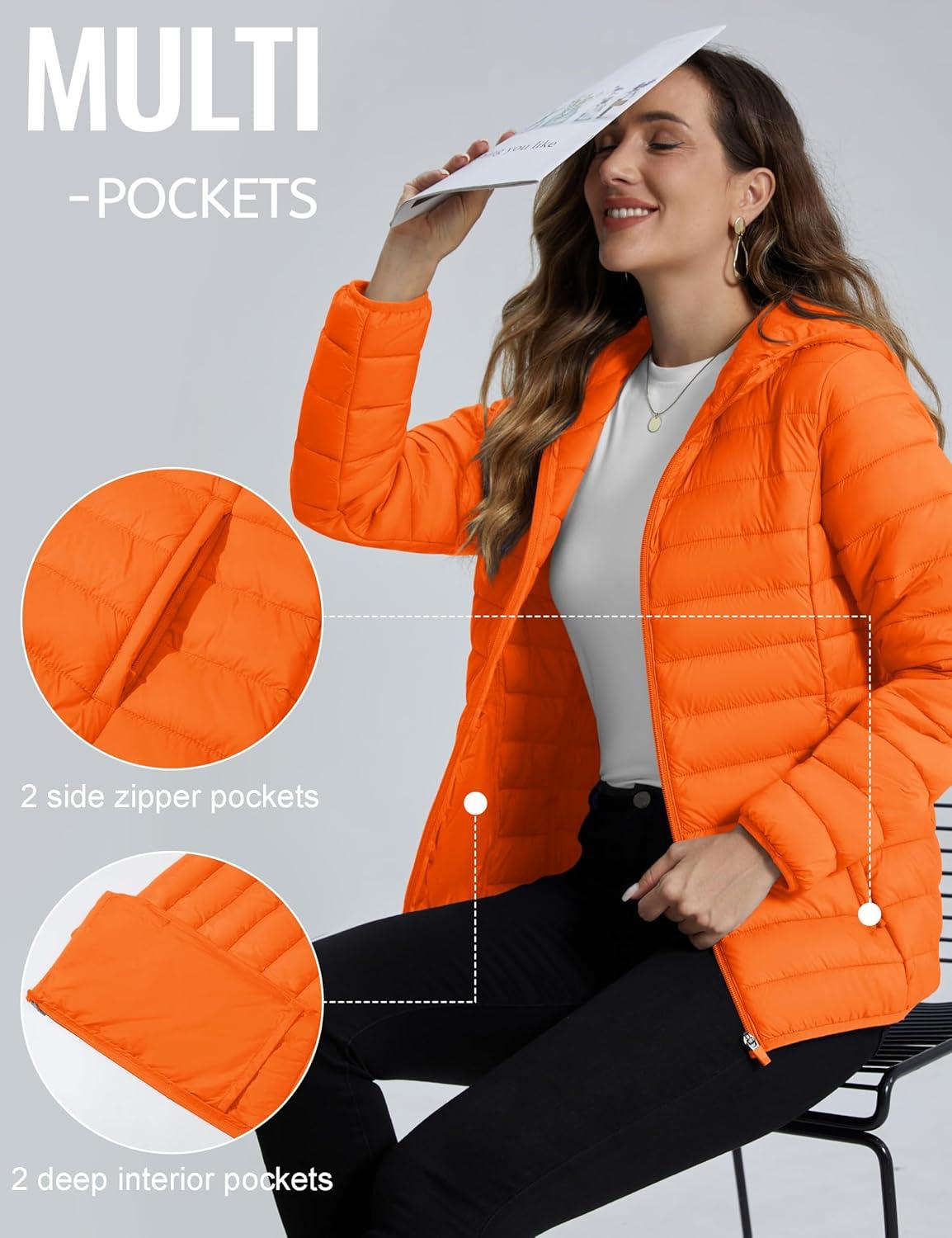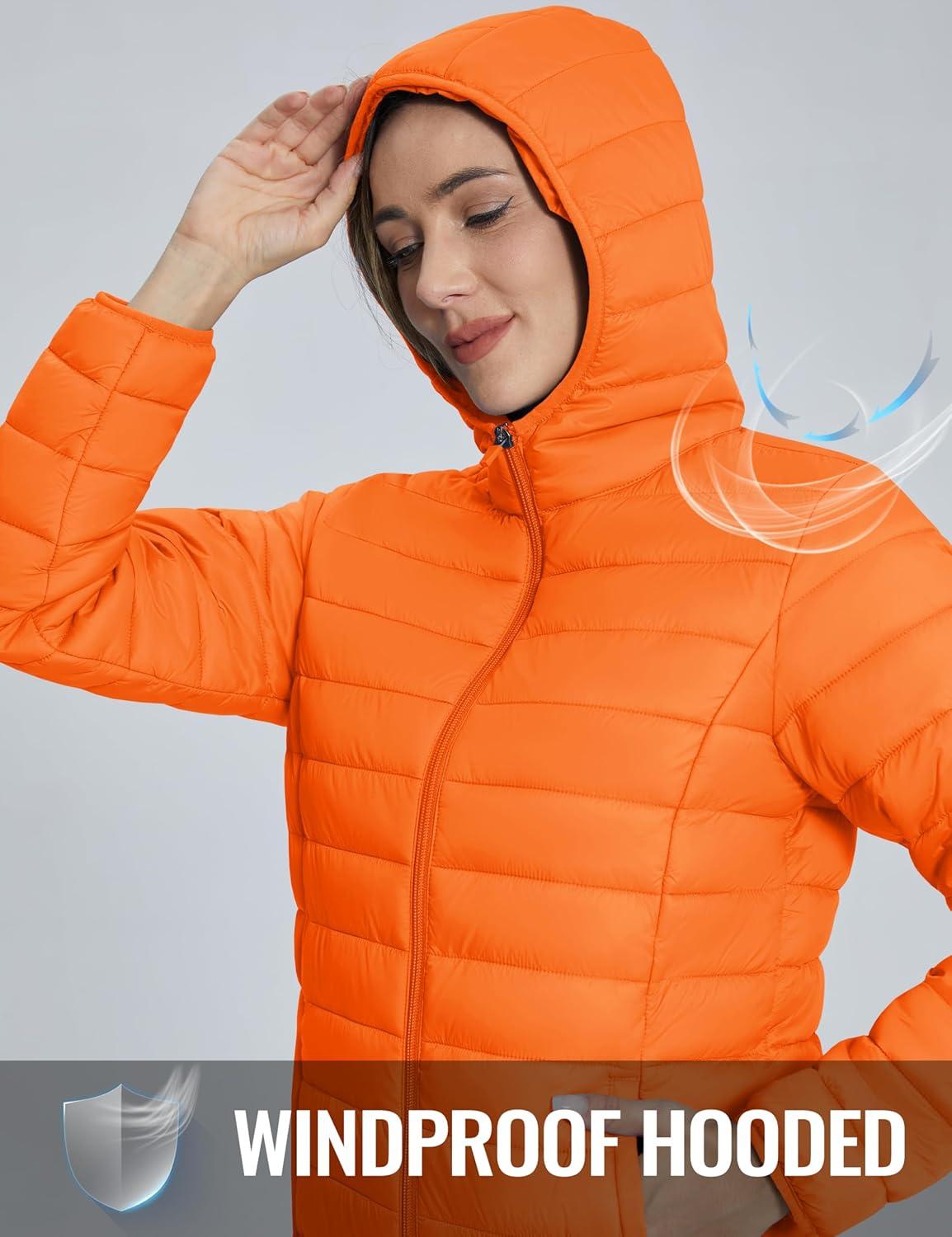 TACVASEN Women’s Lightweight Puffer Jacket with Hood Pockets Quilted Padded Full-zip Water-Resistant Winter Coat(Orange)