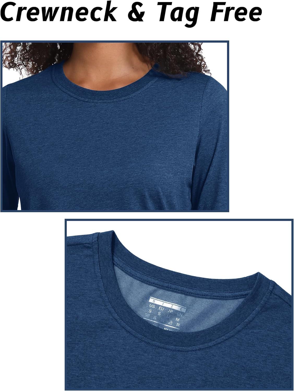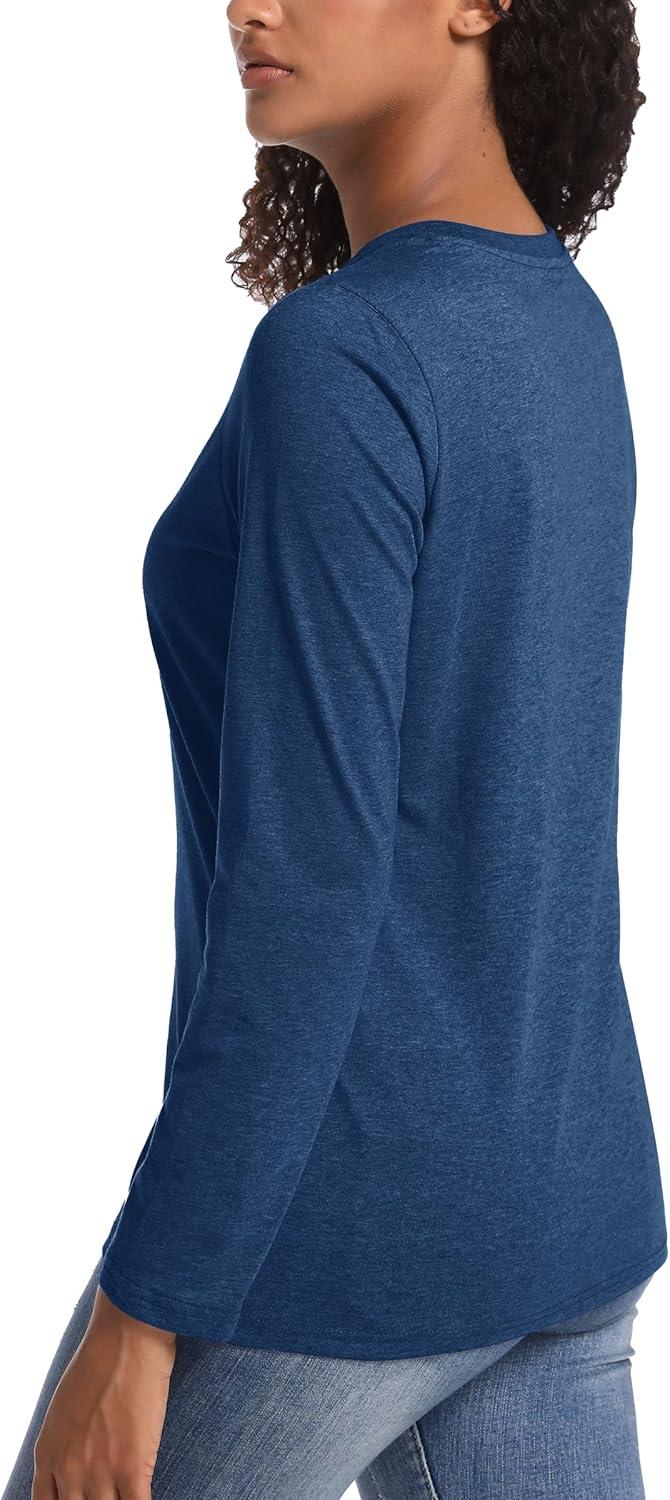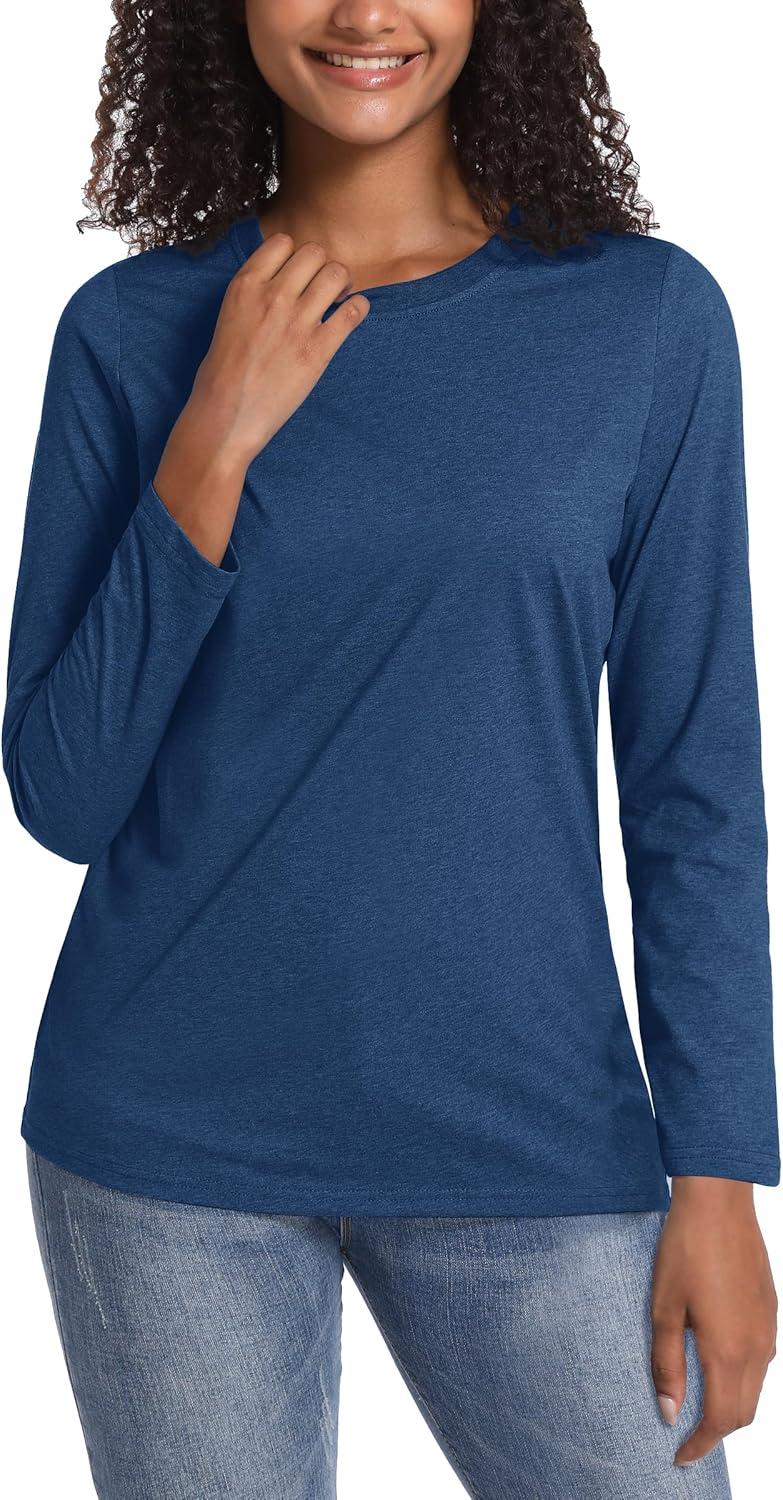 TACVASEN Women’s Long Sleeve Shirt Lightweight Cotton Crewneck T-Shirts Breathable Classic-Fit Casual Tops Basic Tees(Dark Blue Heather)