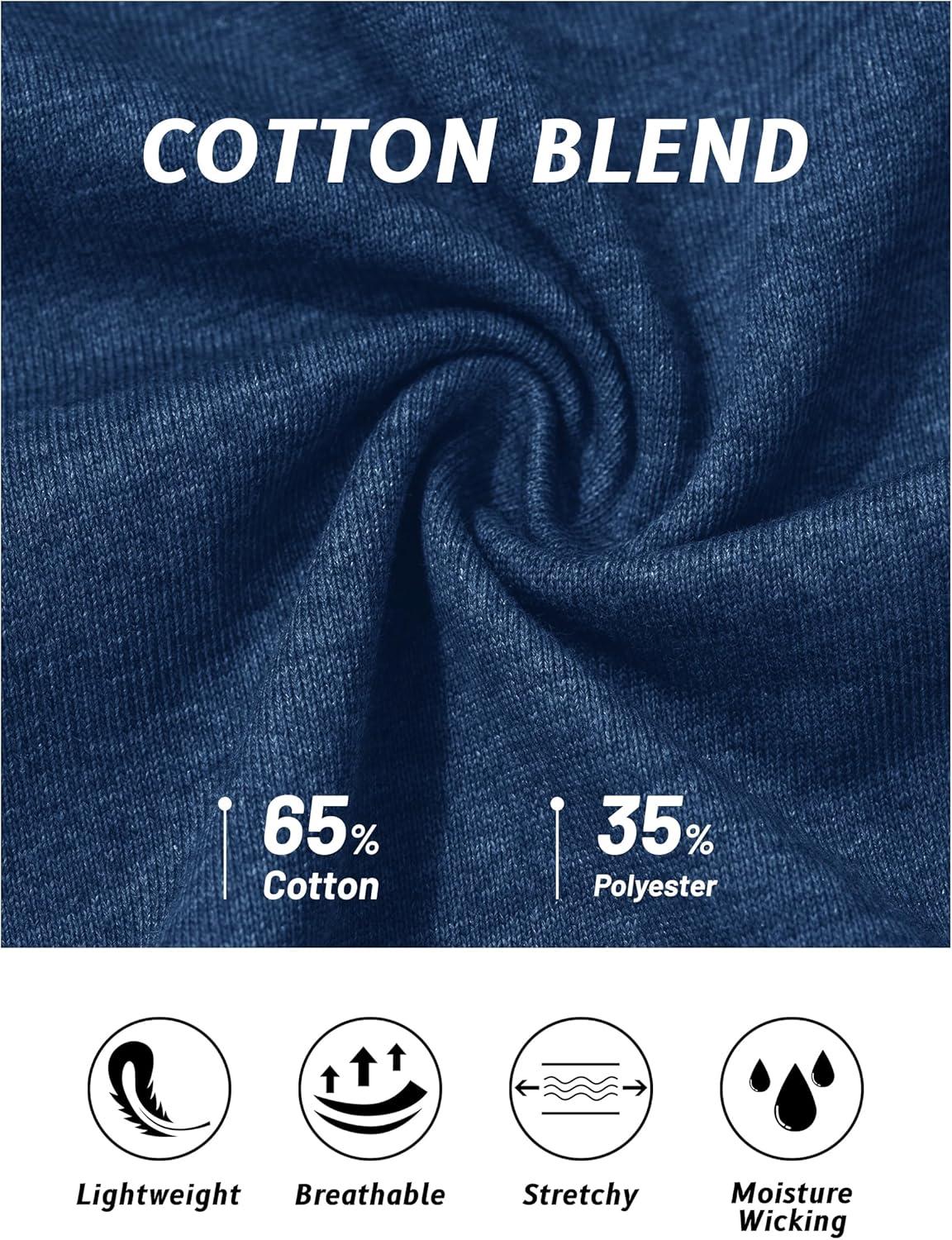 Quality Materials:Pure Color: Cotton; Heather Color: 65% Cotton, 35% Polyester.
