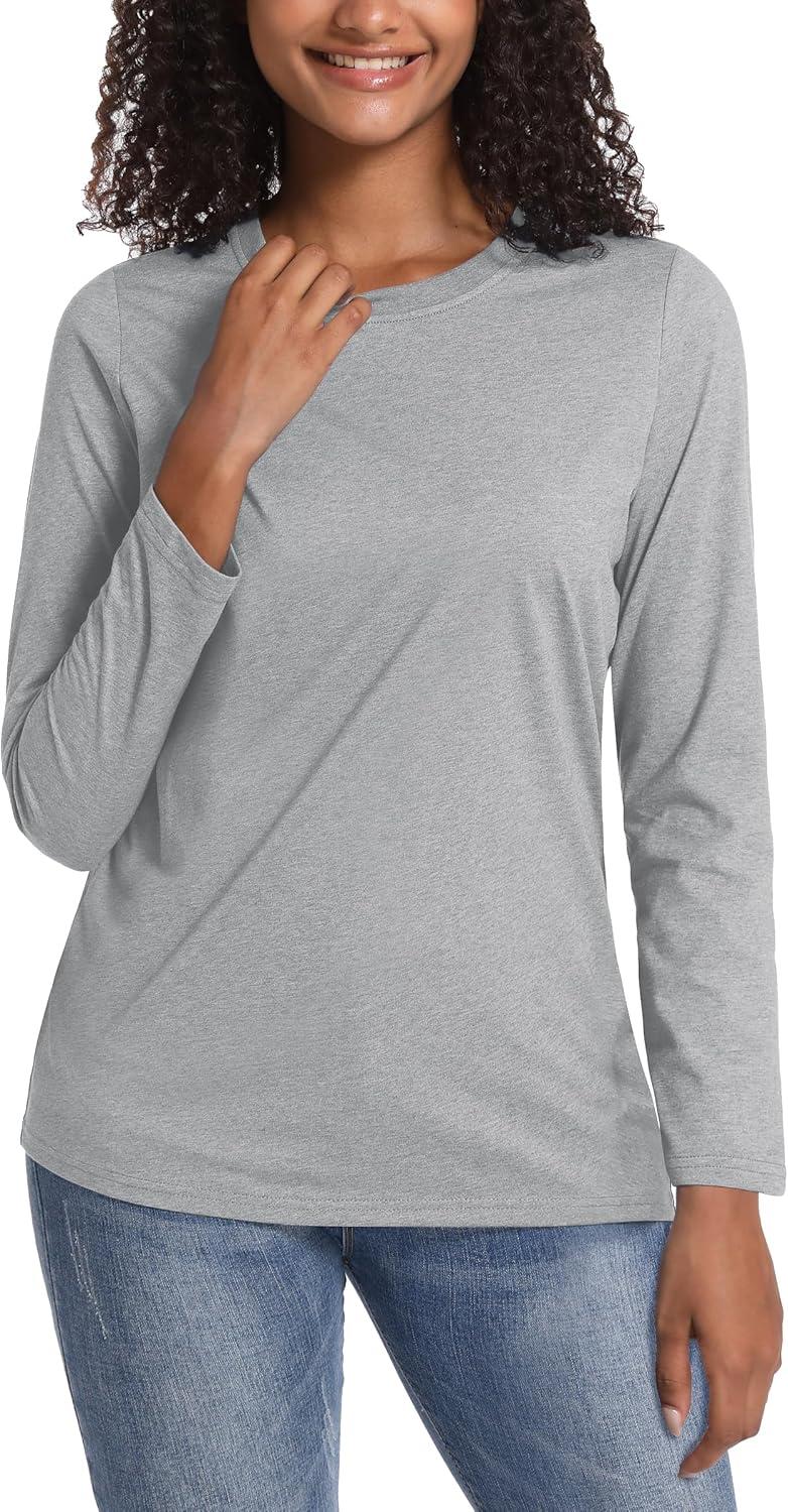 Long Sleeve Shirt for Women Cotton Crewneck T-Shirts Breathable Classic-Fit Casual Summer Tops Basic Tees