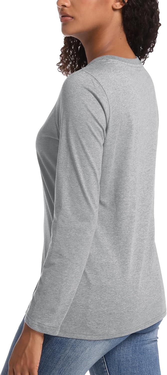 TACVASEN Women’s Long Sleeve Shirt Lightweight Cotton Crewneck T-Shirts Breathable Classic-Fit Casual Tops Basic Tees(Light Grey Heather)