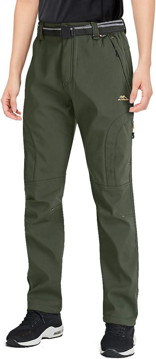 TACVASEN Women’s Pants-Skiing Hiking Thick Fleece Lining Softshell Pants, Army Green, 32