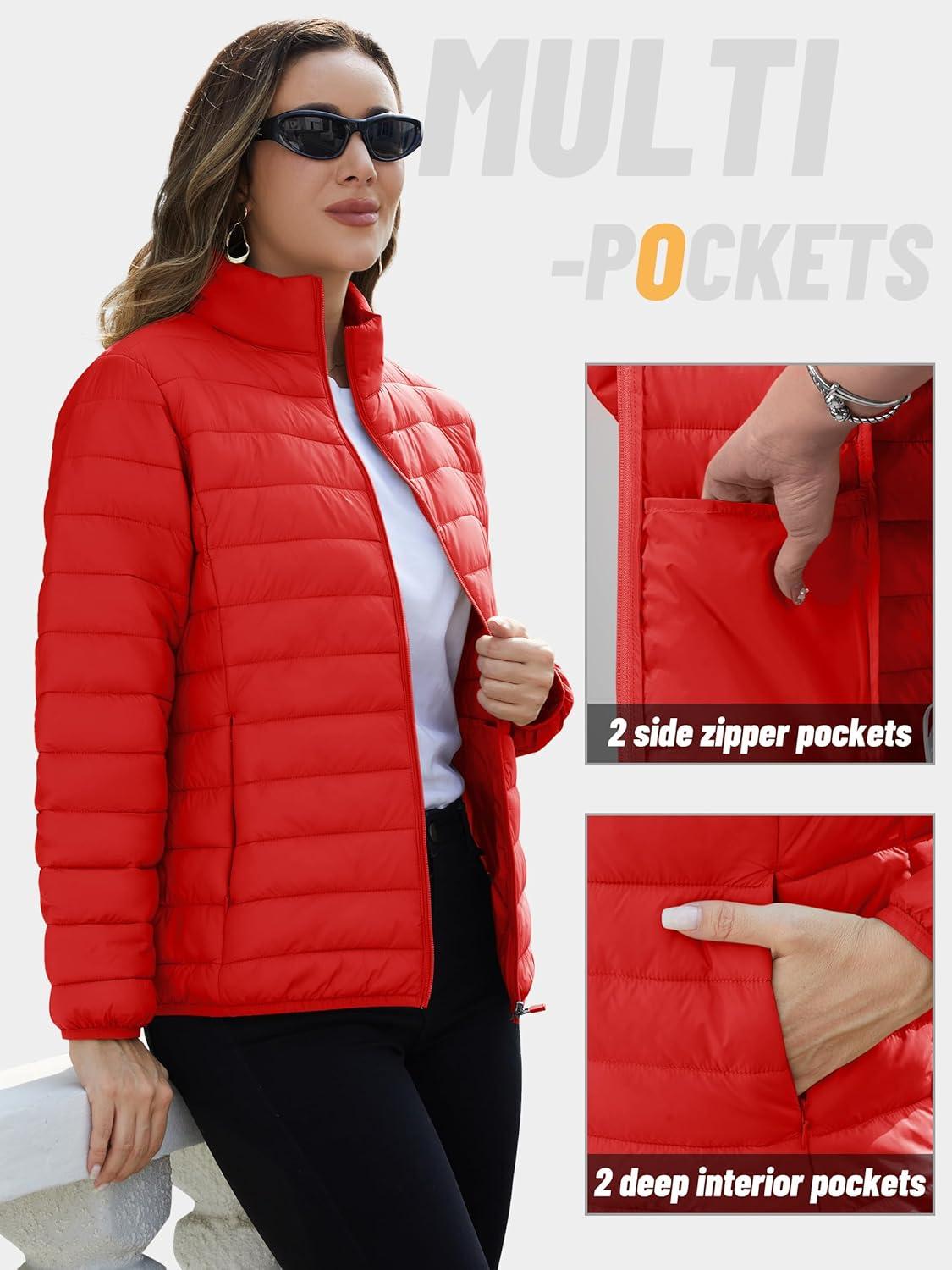 TACVASEN Women’s Puffer Jackets Quilted Packable Puffy Coats Lightweight Winter Warm Zip Up Down Jacket Stand Collar(Tomato Red)