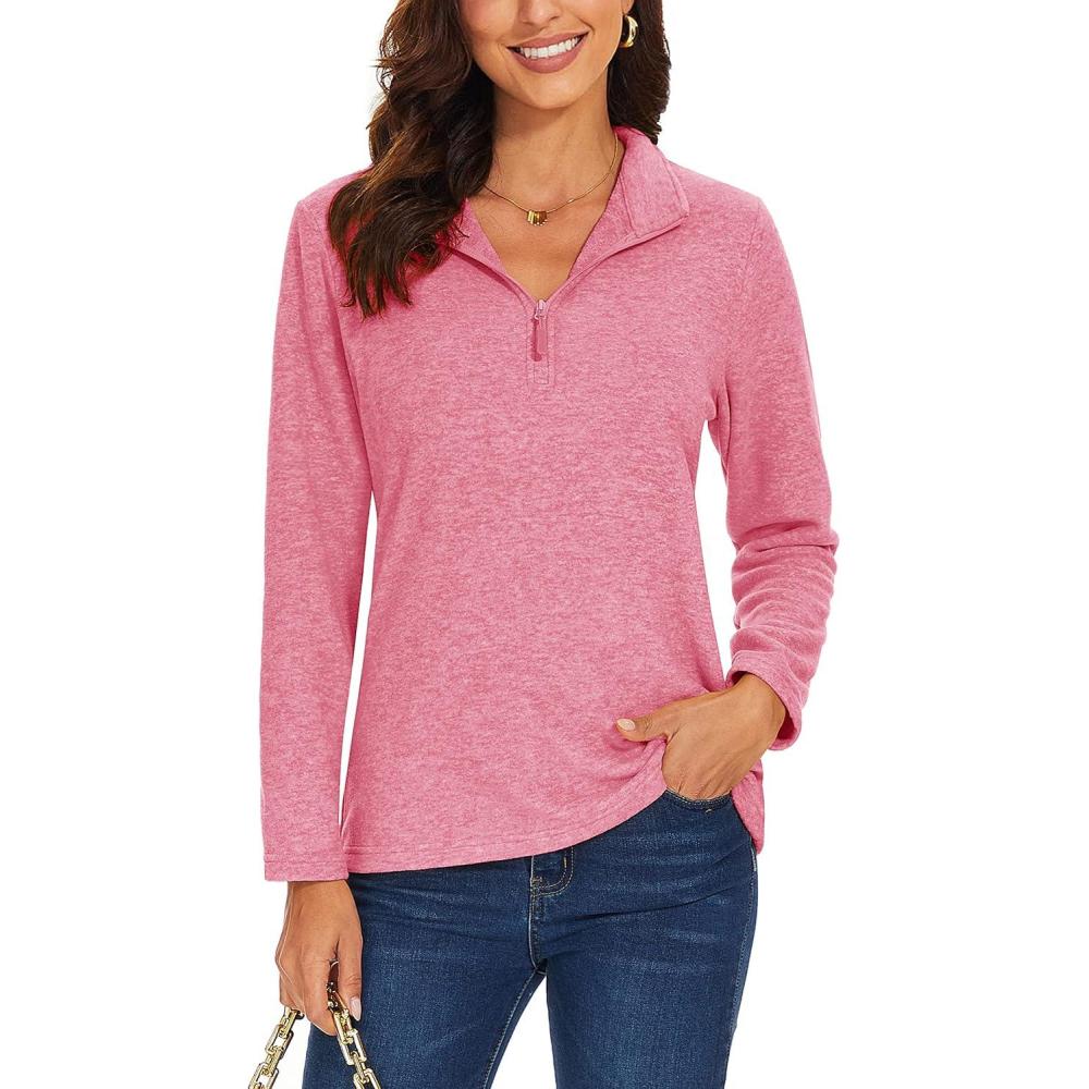TACVASEN Women’s Quarter Zip Pullover Sweatshirt Fleece Casual Long Sleeve Spring Fall Running Workout Tops(Pink)