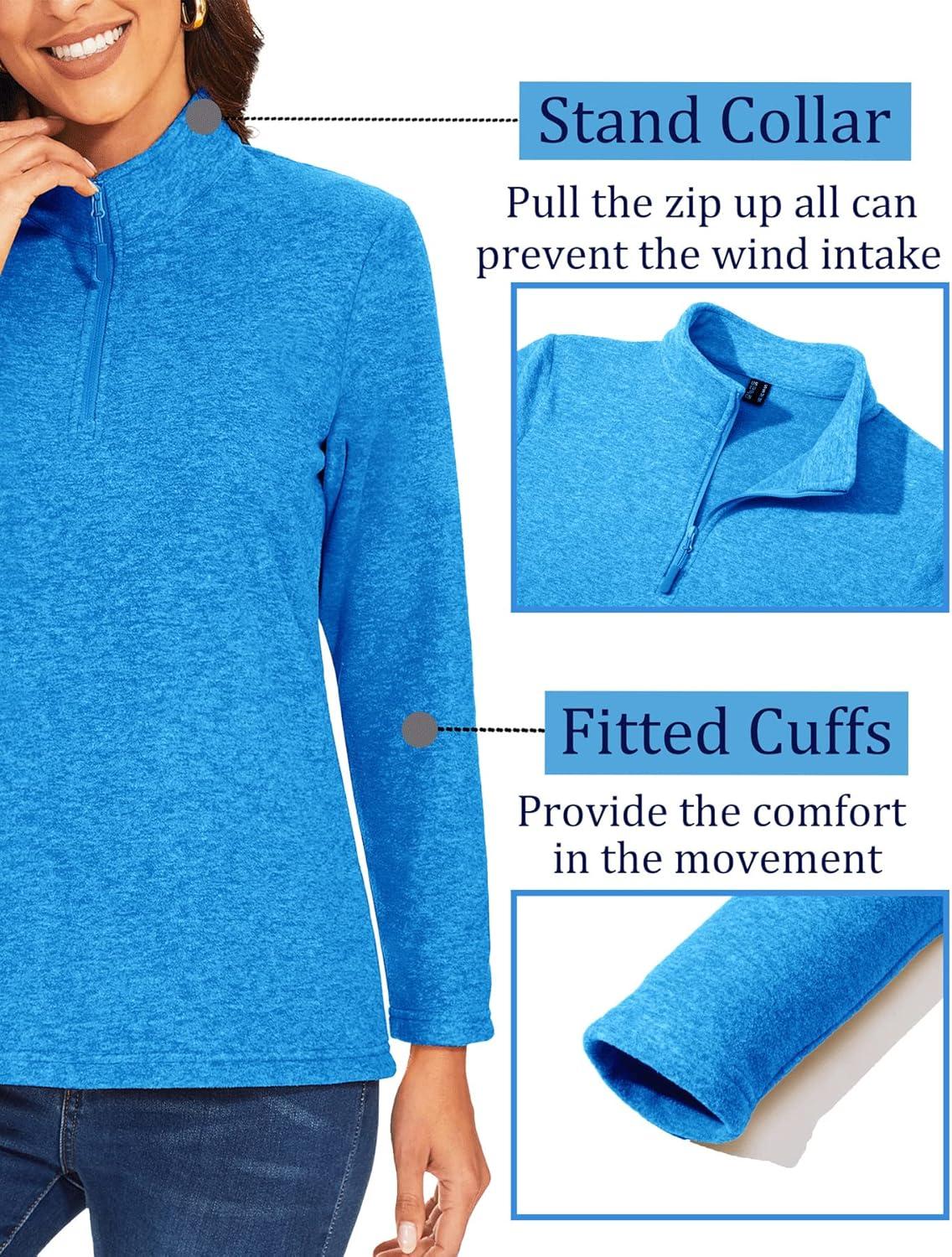 TACVASEN Women’s Quarter Zip Pullover Sweatshirt Fleece Casual Long Sleeve Spring Fall Running Workout Tops(Sea Blue)