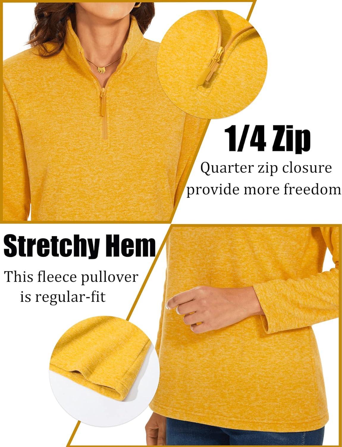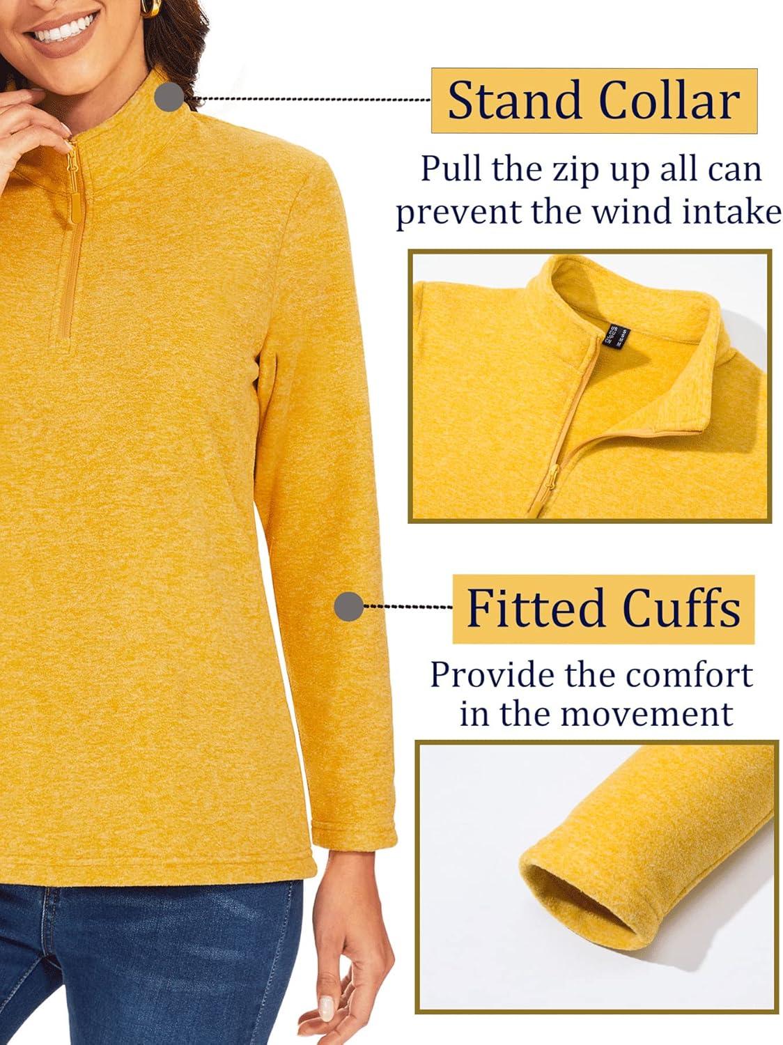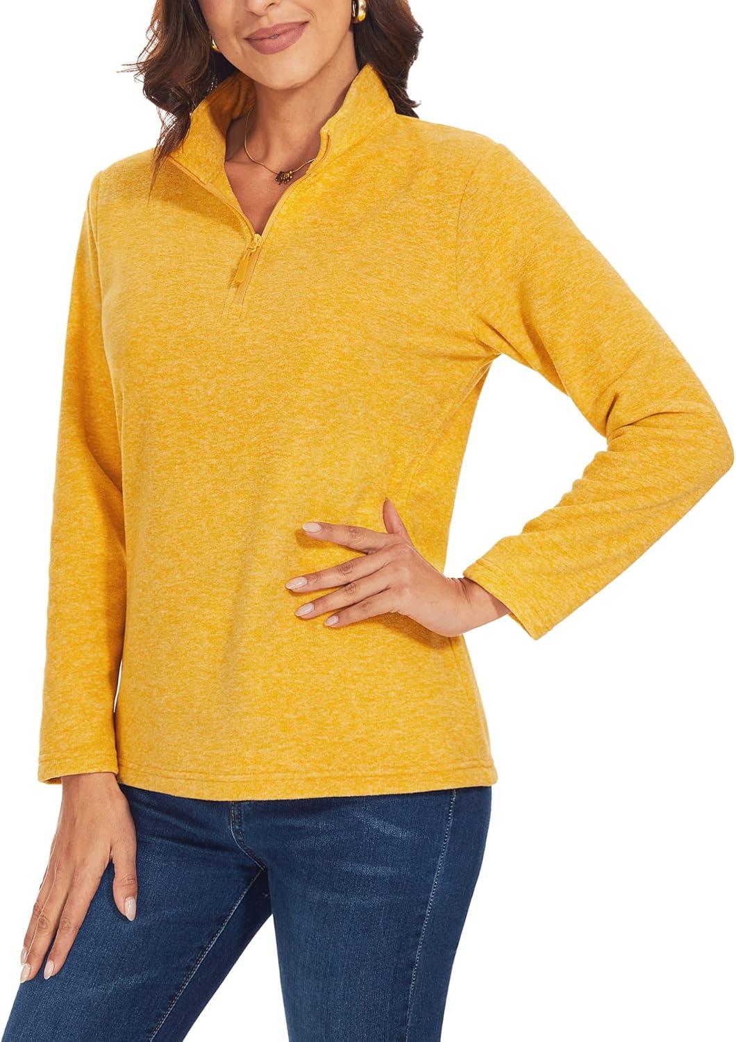 TACVASEN Women’s Quarter Zip Pullover Sweatshirt Fleece Casual Long Sleeve Spring Fall Running Workout Tops(Turmeric)