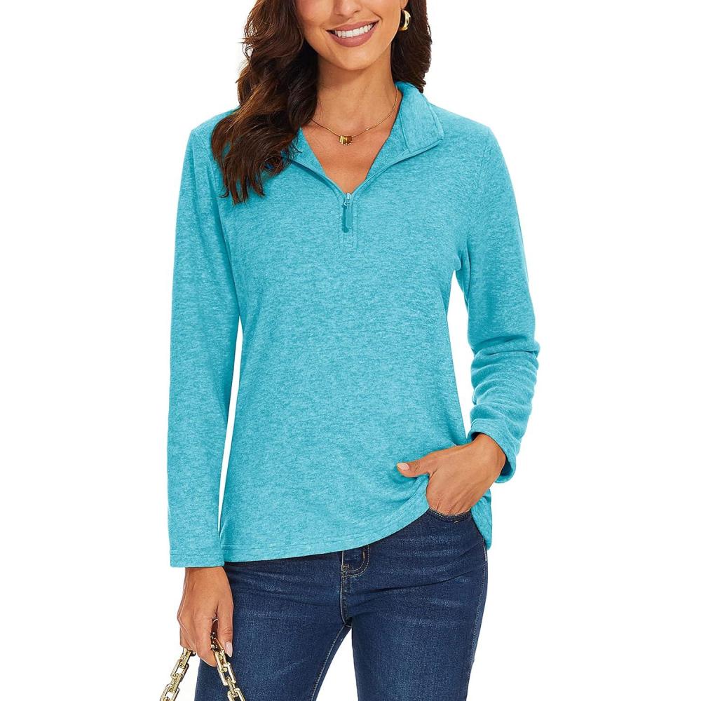 TACVASEN Women’s Quarter Zip Pullover Sweatshirt Fleece Casual Long Sleeve Spring Fall Running Workout Tops(Water Blue)