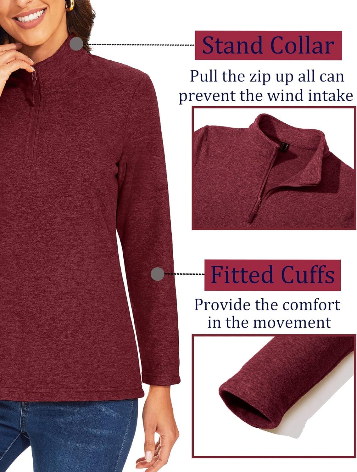 Women's casual 1/4 zip pullover, comfy, thermal and lightweight.