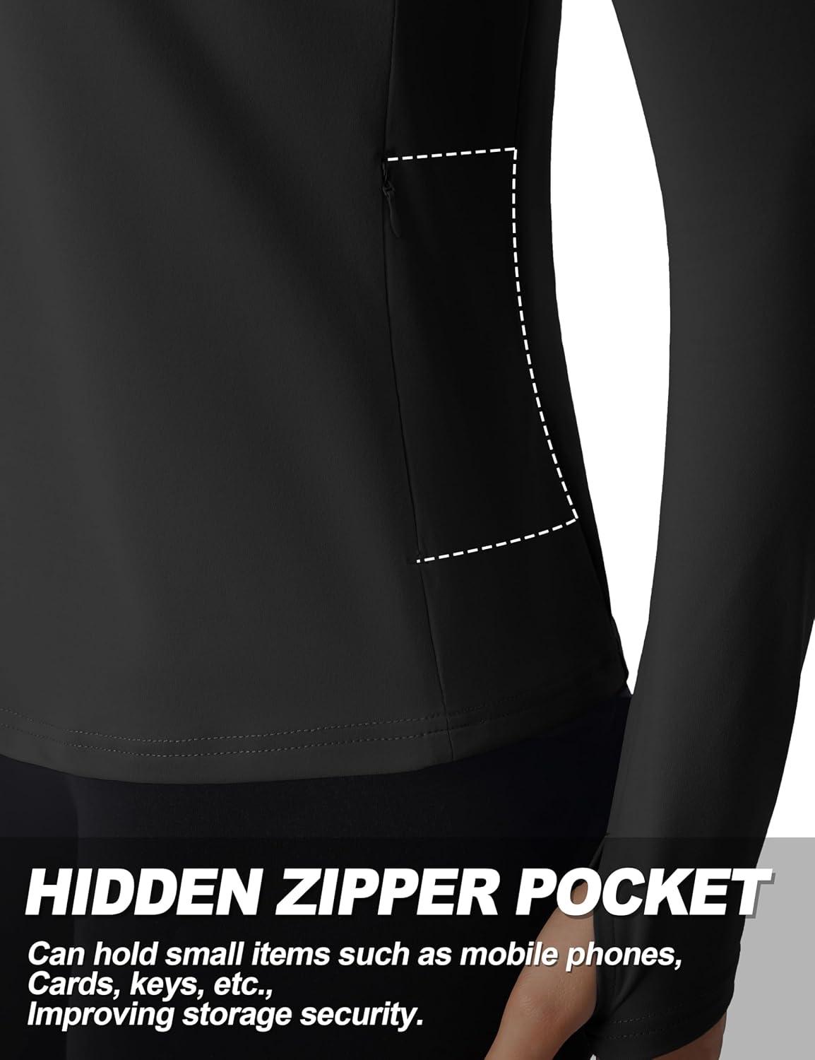 TACVASEN Women’s Quarter Zip Pullover Workout Jacket Long Sleeve Athletic Sweatshirt Running Golf Tops with Thumb Holes(Black)
