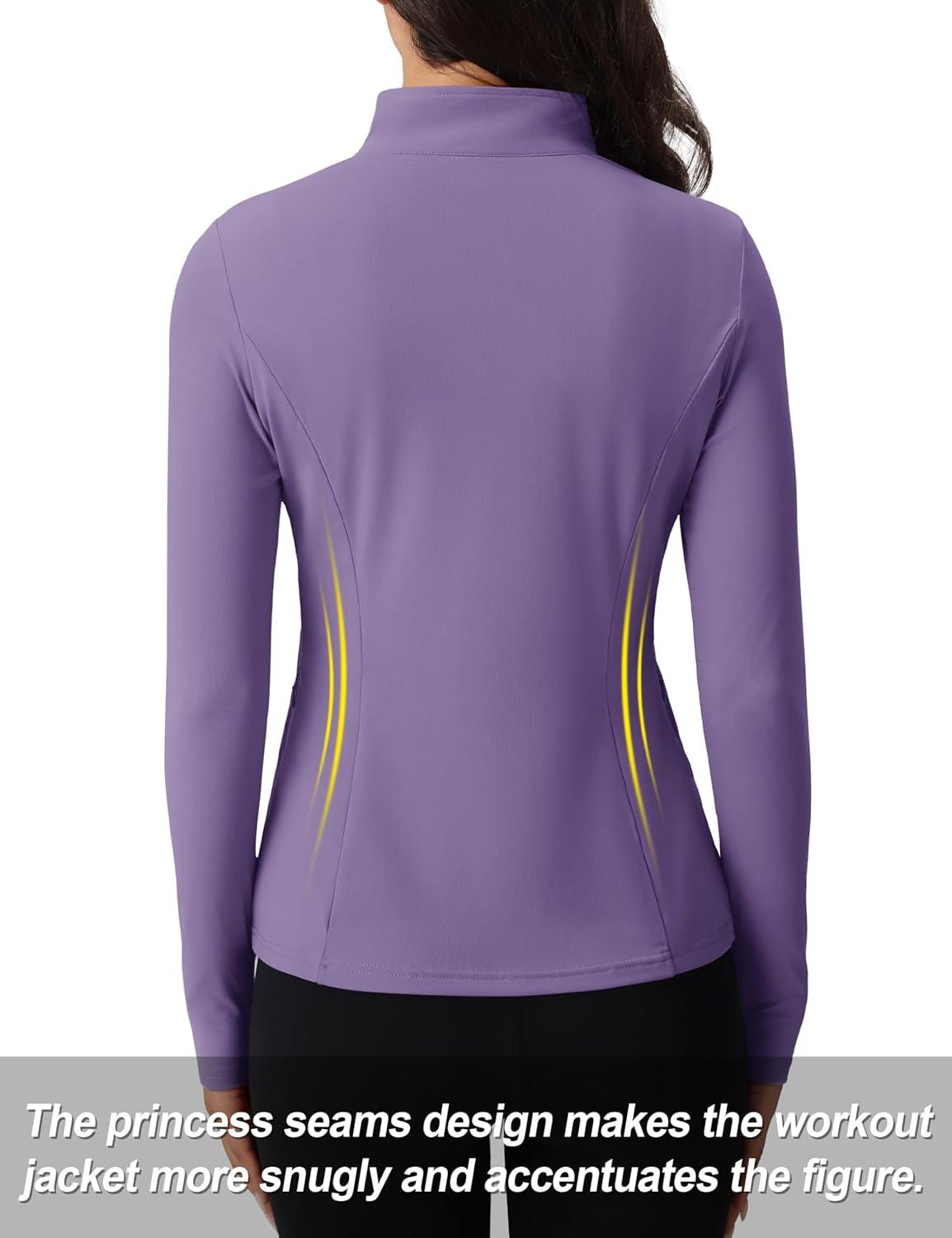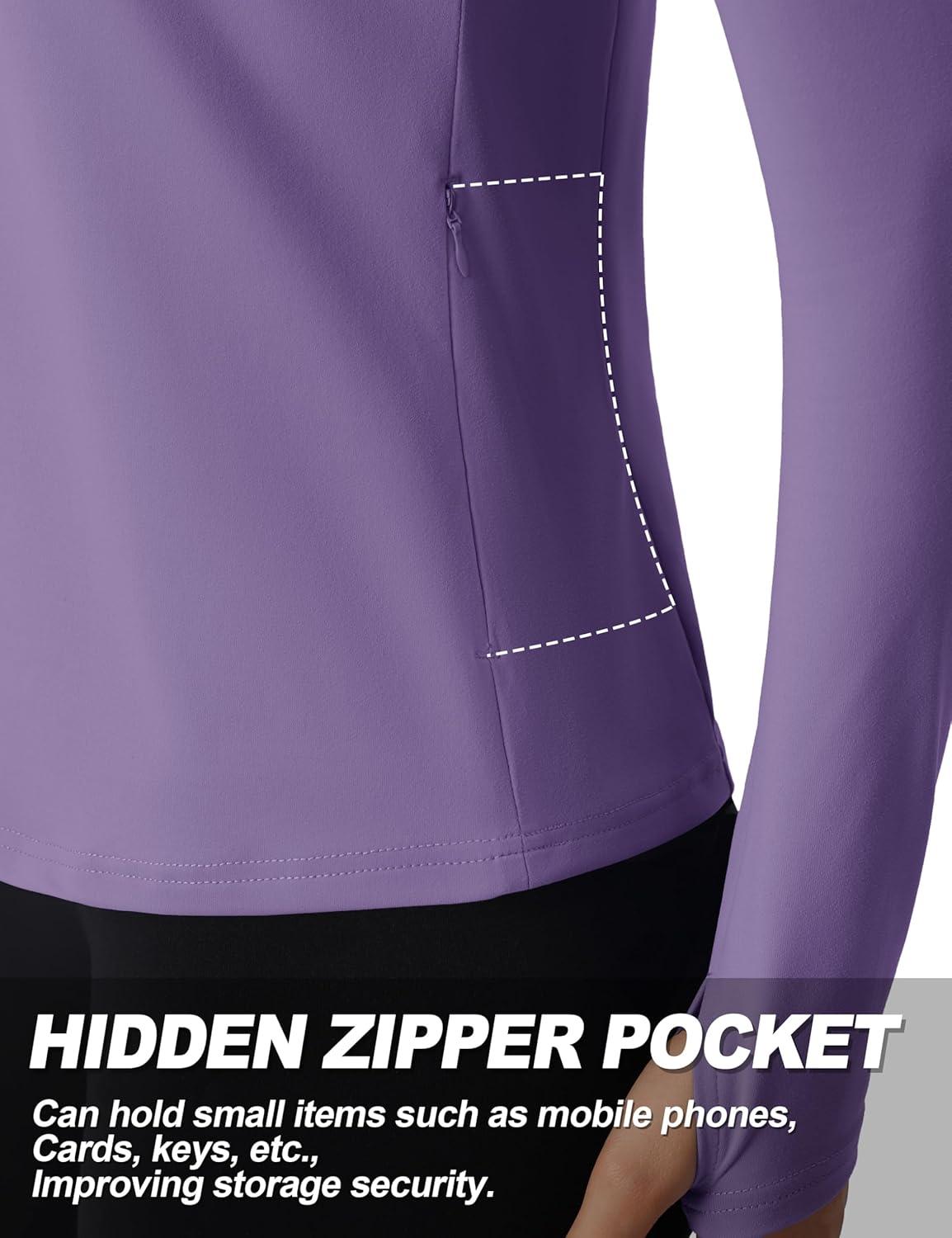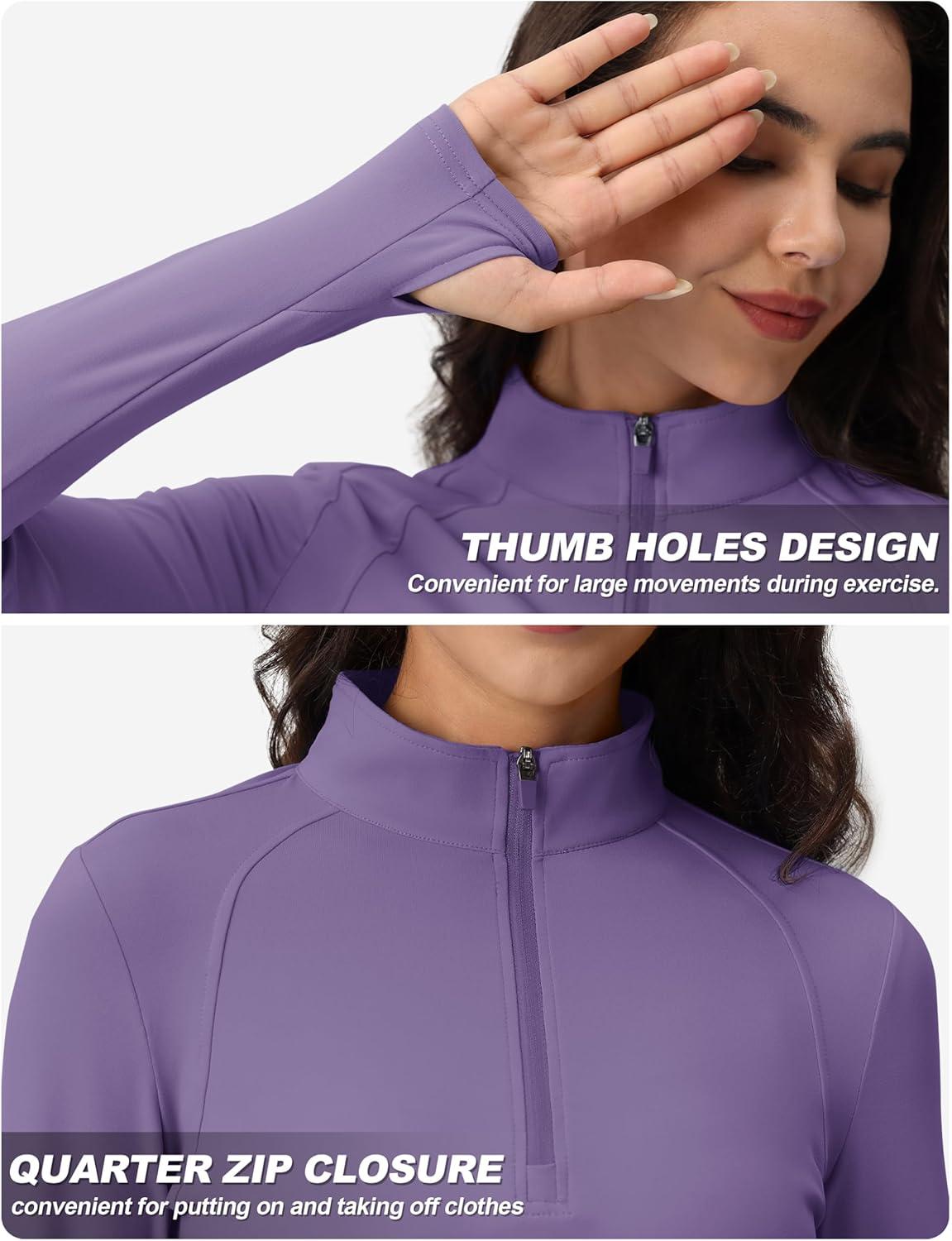 TACVASEN Women’s Quarter Zip Pullover Workout Jacket Long Sleeve Athletic Sweatshirt Running Golf Tops with Thumb Holes(Deeppurple)