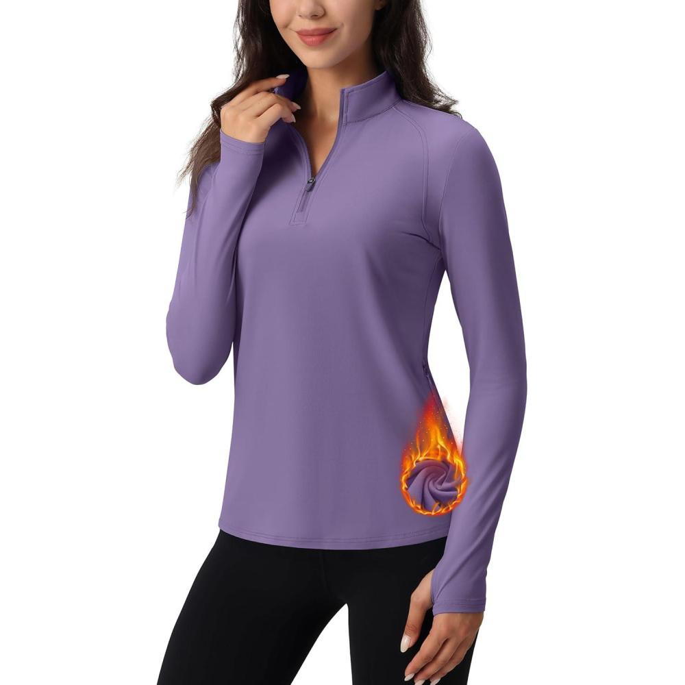 imageTACVASEN Womens Quarter Zip Pullover Workout Jacket Long Sleeve Athletic Sweatshirt Running Golf Tops with Thumb HolesDeeppurple