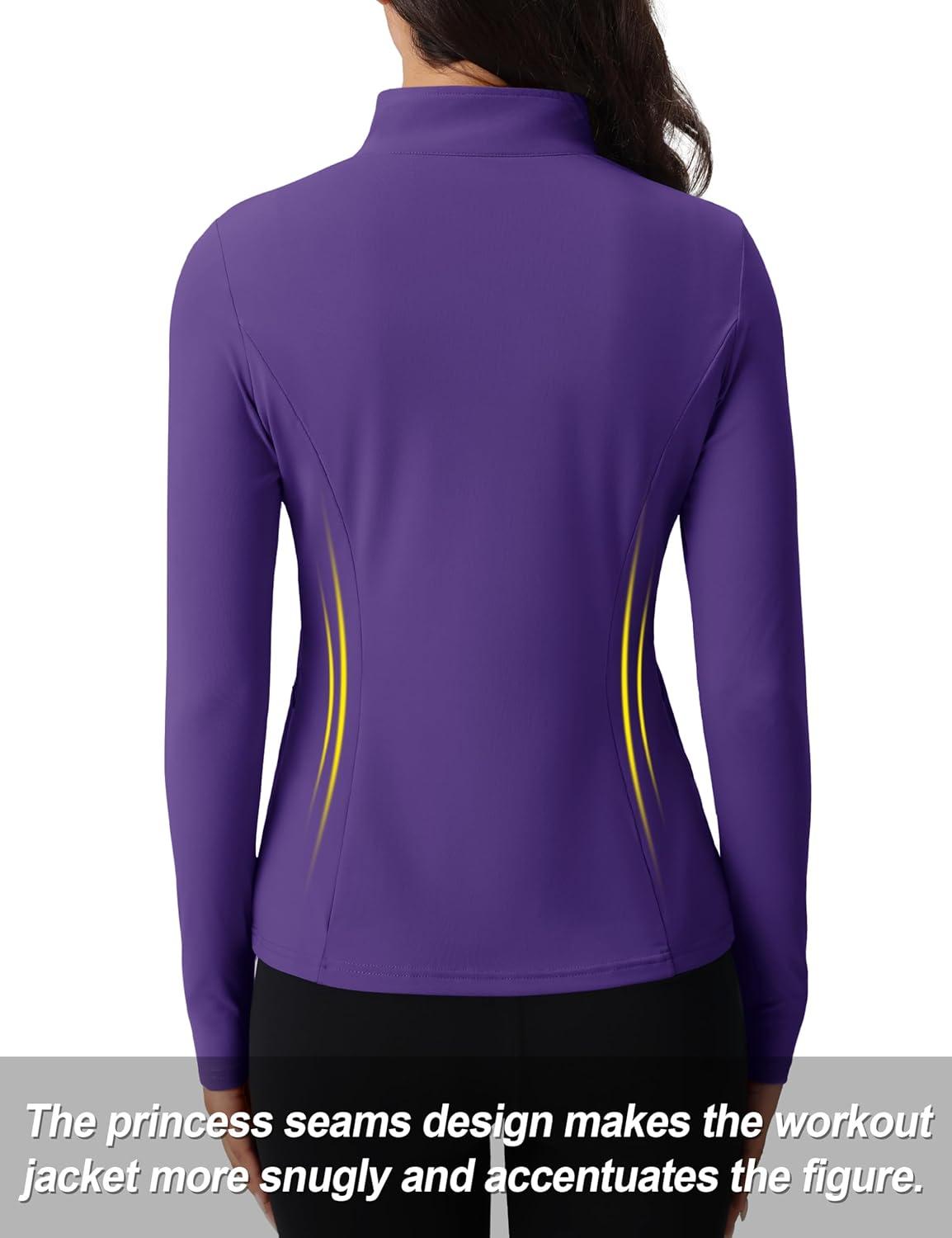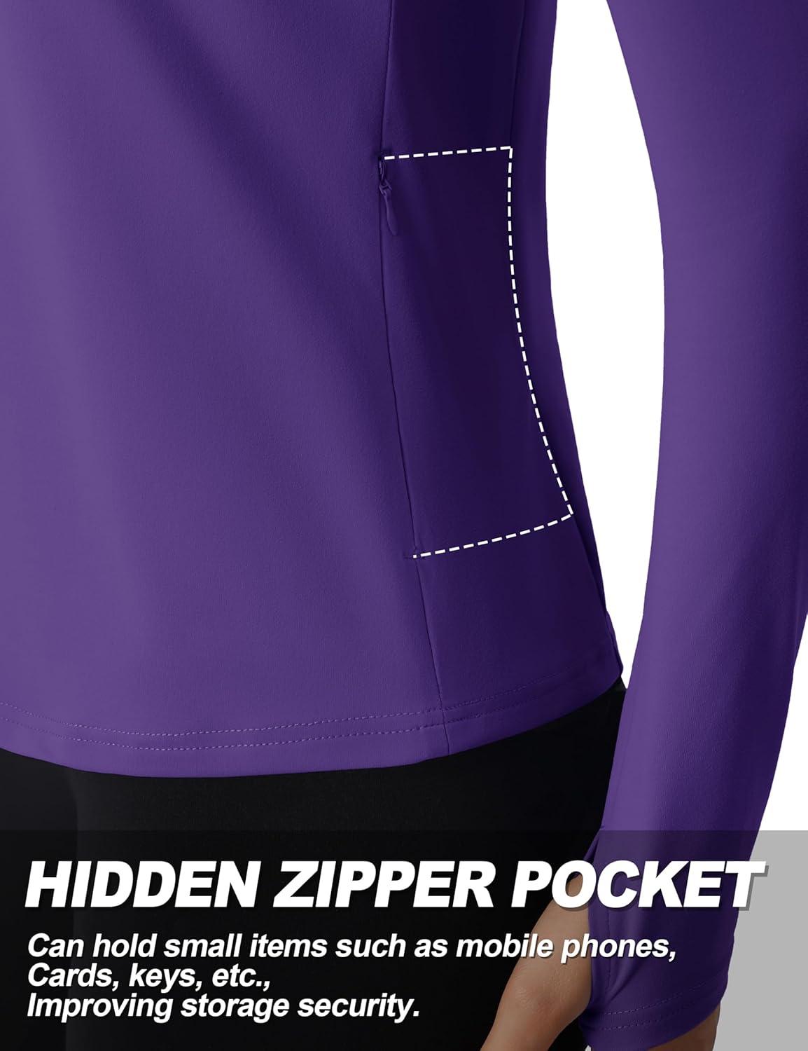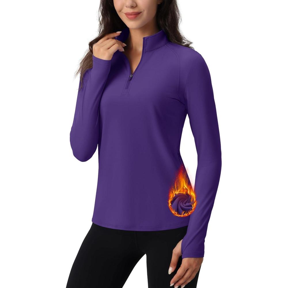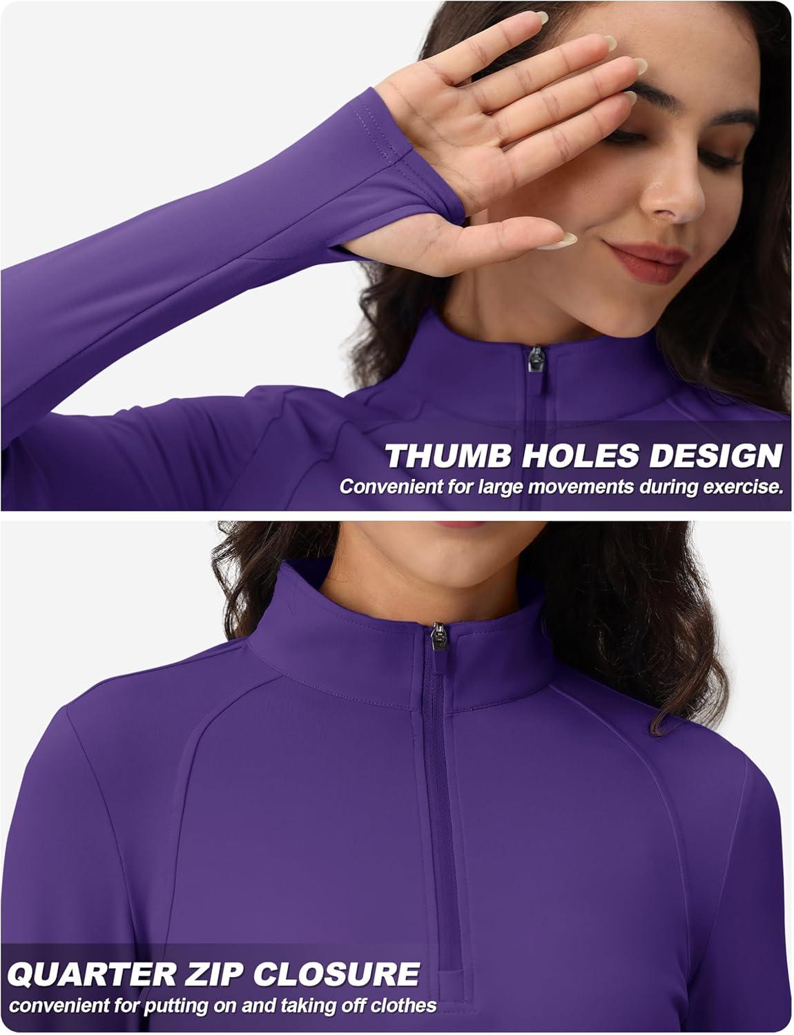 TACVASEN Women’s Quarter Zip Pullover Workout Jacket Long Sleeve Athletic Sweatshirt Running Golf Tops with Thumb Holes(Deeppurple)