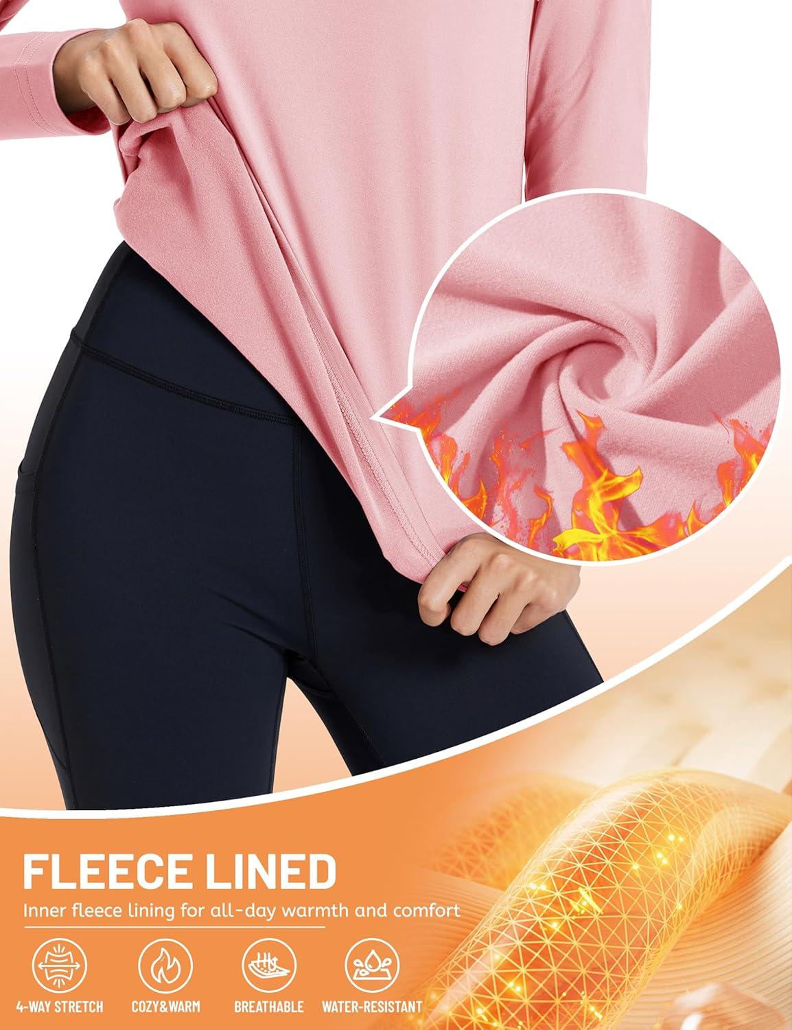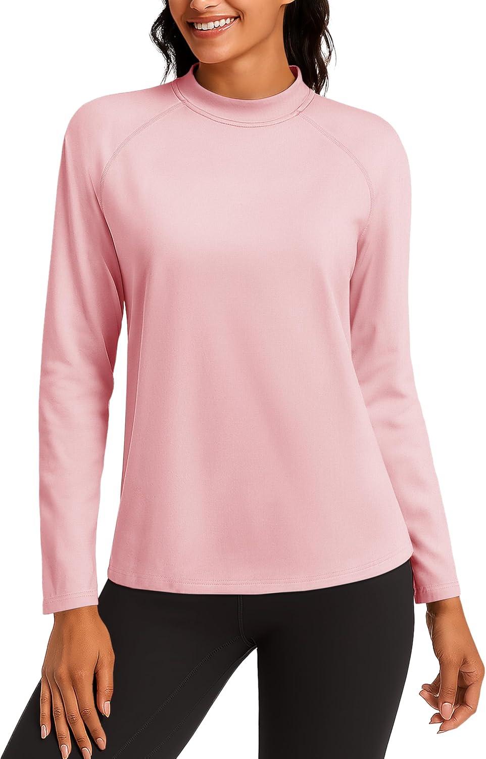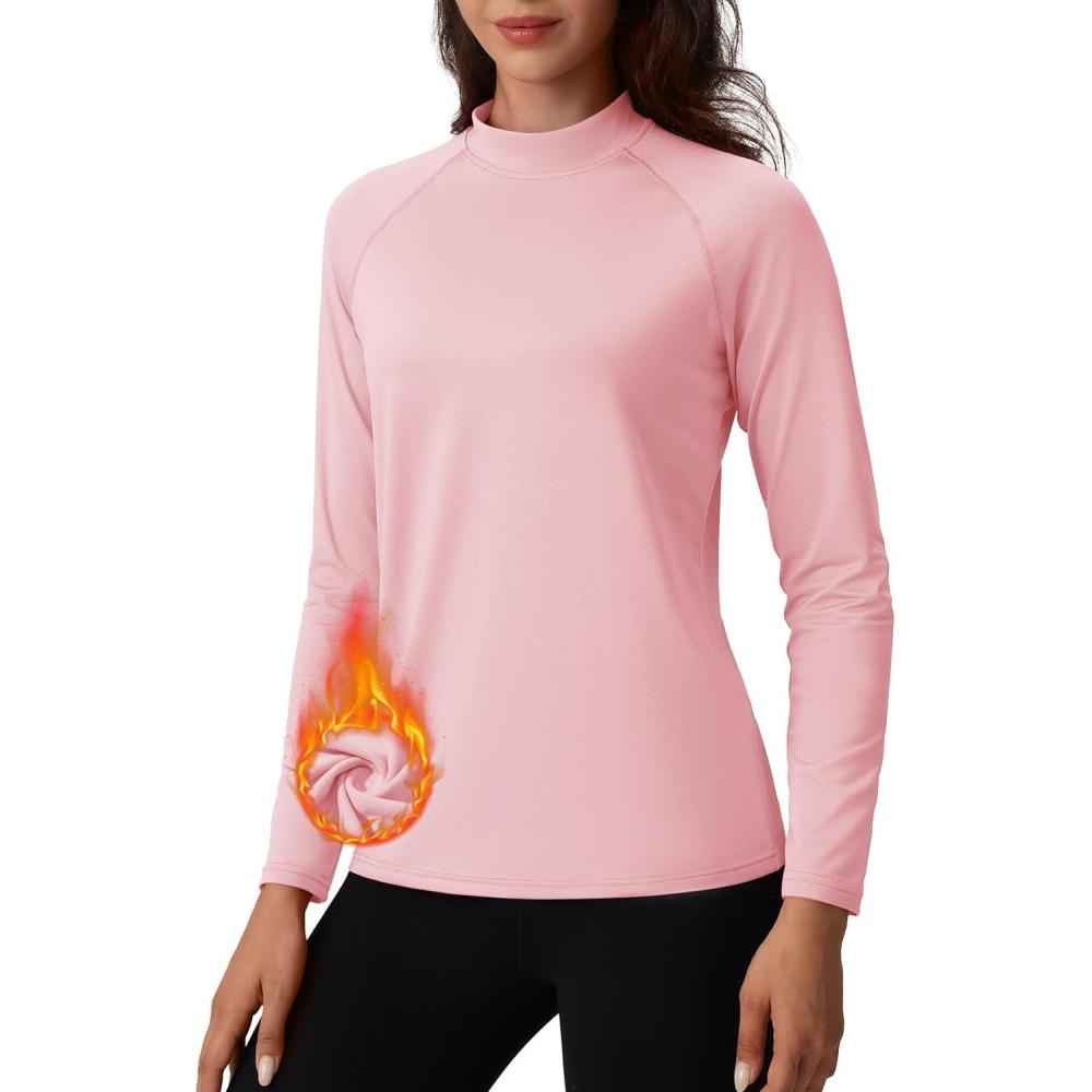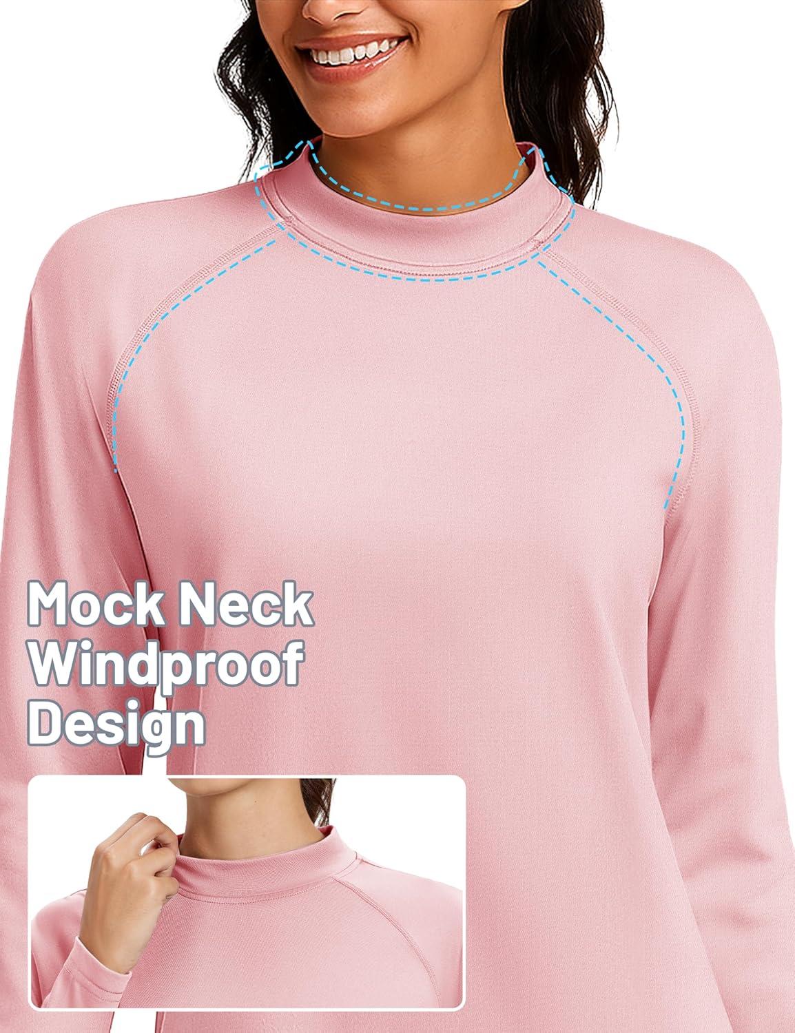 TACVASEN Womens Thermal Fleece Shirt Mock Turtle Neck Long Sleeve Athletic Running Warm Tops Base Layer Cold Weather Gear(Lightpink)
