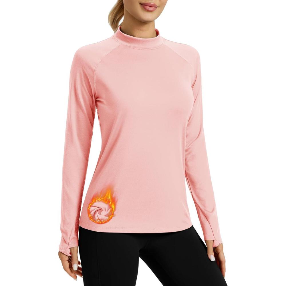 TACVASEN Women’s Thermal Shirts Mock Neck Fleece Lined Running Ski Long Sleeve Base Layer for Cold Weather(Lightpink)