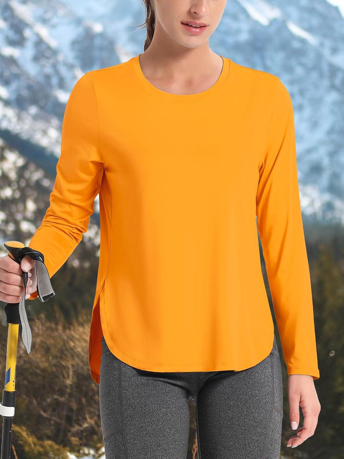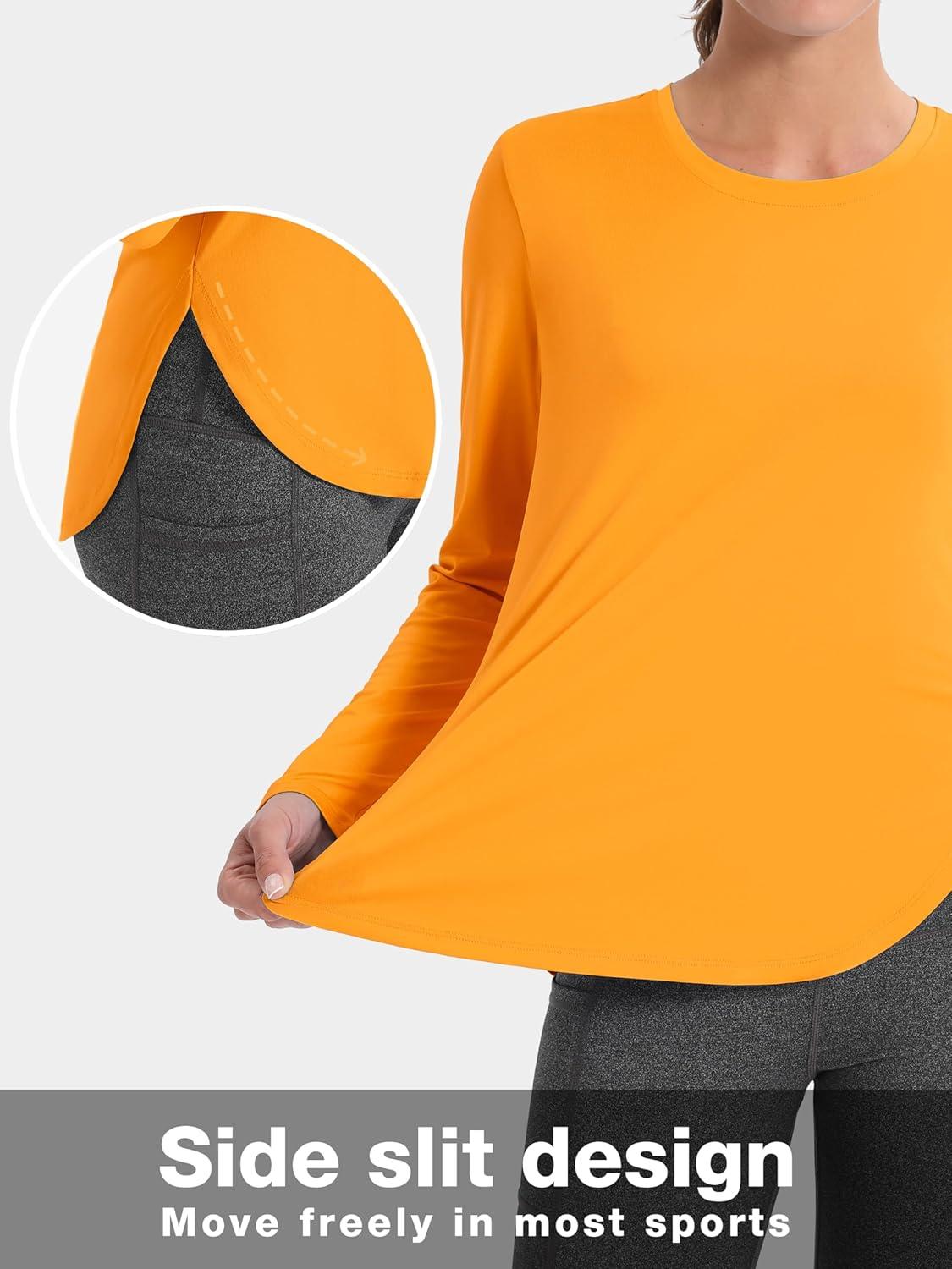 TACVASEN Women’s UPF 80+ UV Shirts Long Sleeve Workout Sun Shirt Outdoor Gym Hiking Tops Breathable Lightweight(Fresh Orange)