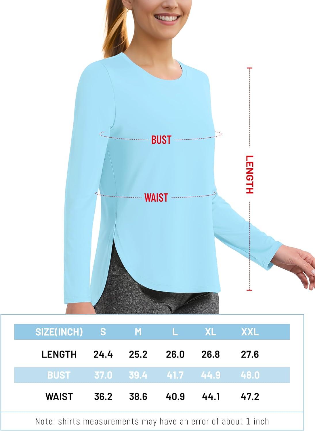 TACVASEN Women’s UPF 80+ UV Shirts Long Sleeve Workout Sun Shirt Outdoor Gym Hiking Tops Breathable Lightweight(Lake Blue)