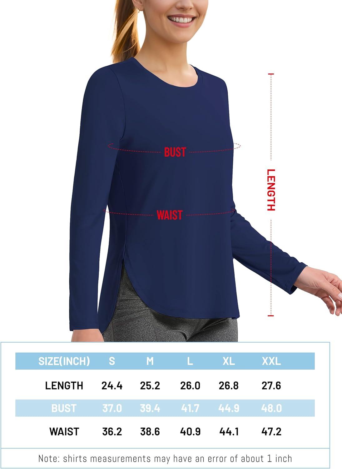TACVASEN Women’s UPF 80+ UV Shirts Long Sleeve Workout Sun Shirt Outdoor Gym Hiking Tops Breathable Lightweight(Navy)