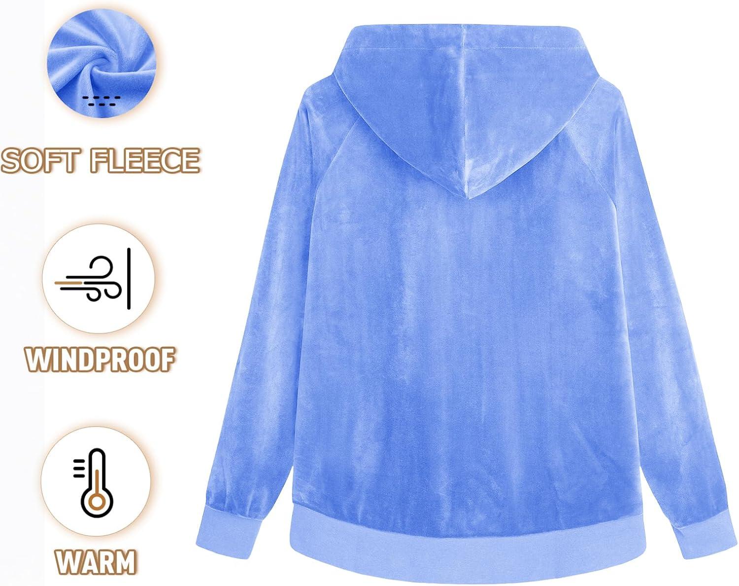 Women's Fleece Jacket with Hood Full Zip Velour Sweatshirt Long Sleeve Casual Coat with Pockets