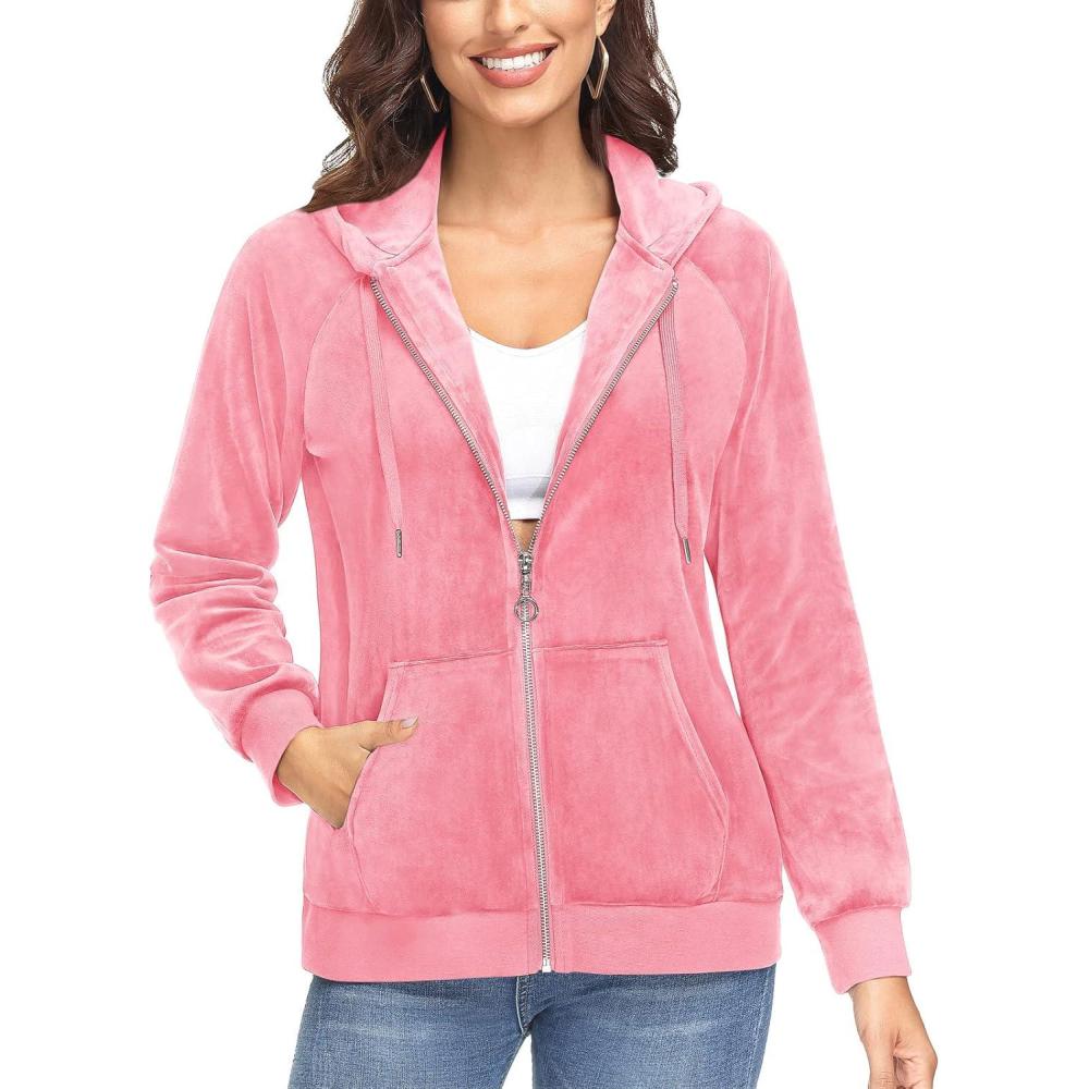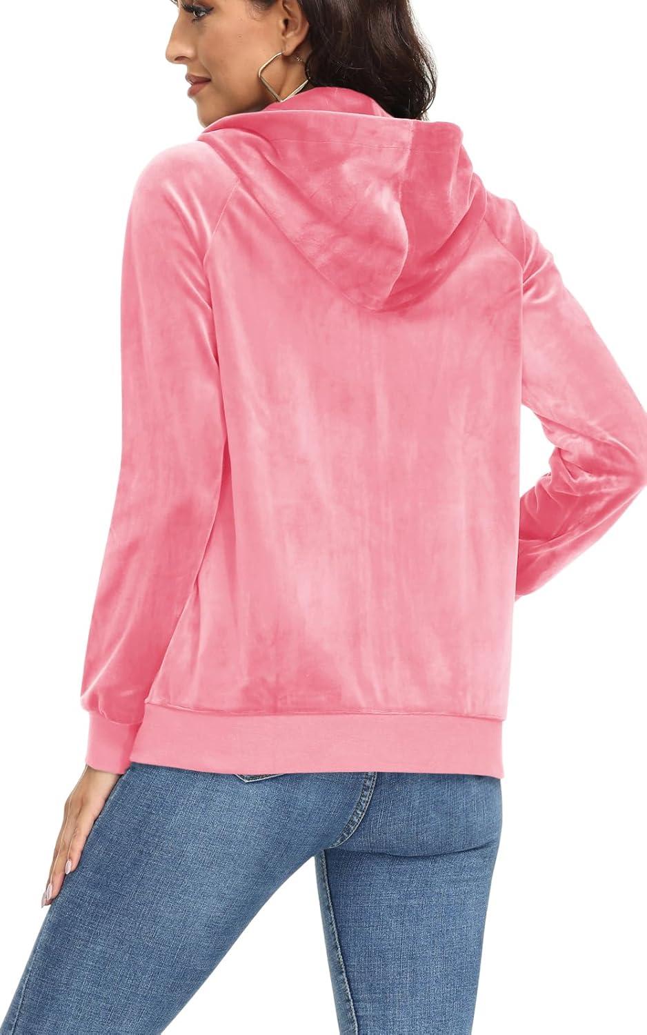 TACVASEN Women’s Velour Jacket with Hood Long Sleeve Soft Fleece Hooded Full Zip(P Pink)
