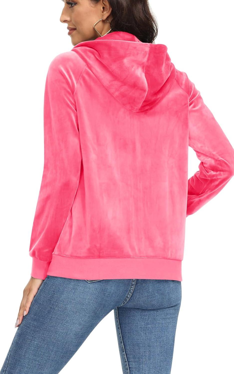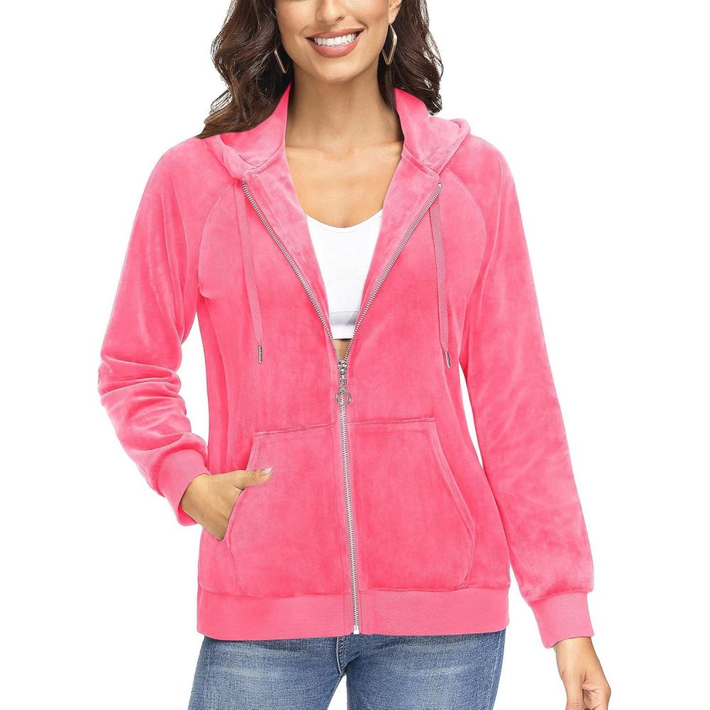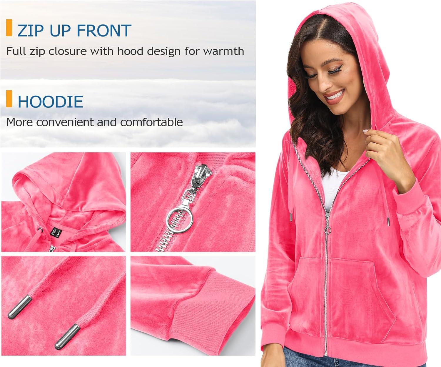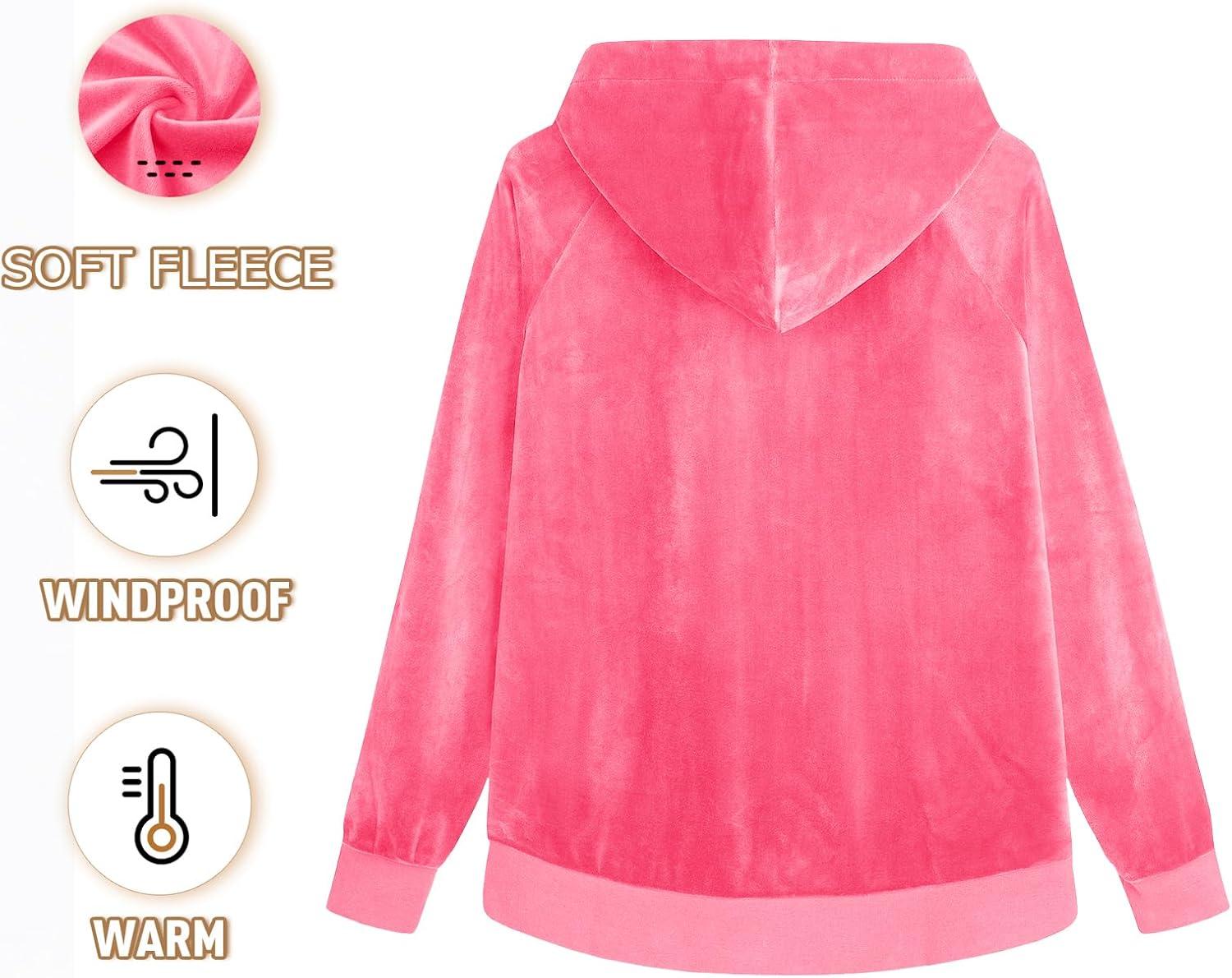 Women's Fleece Jacket with Hood Full Zip Velour Sweatshirt Long Sleeve Casual Coat with Pockets