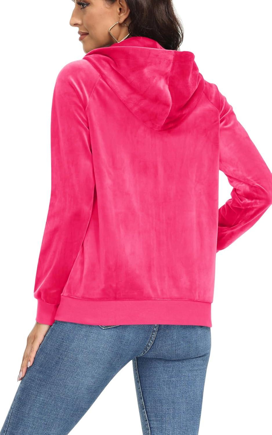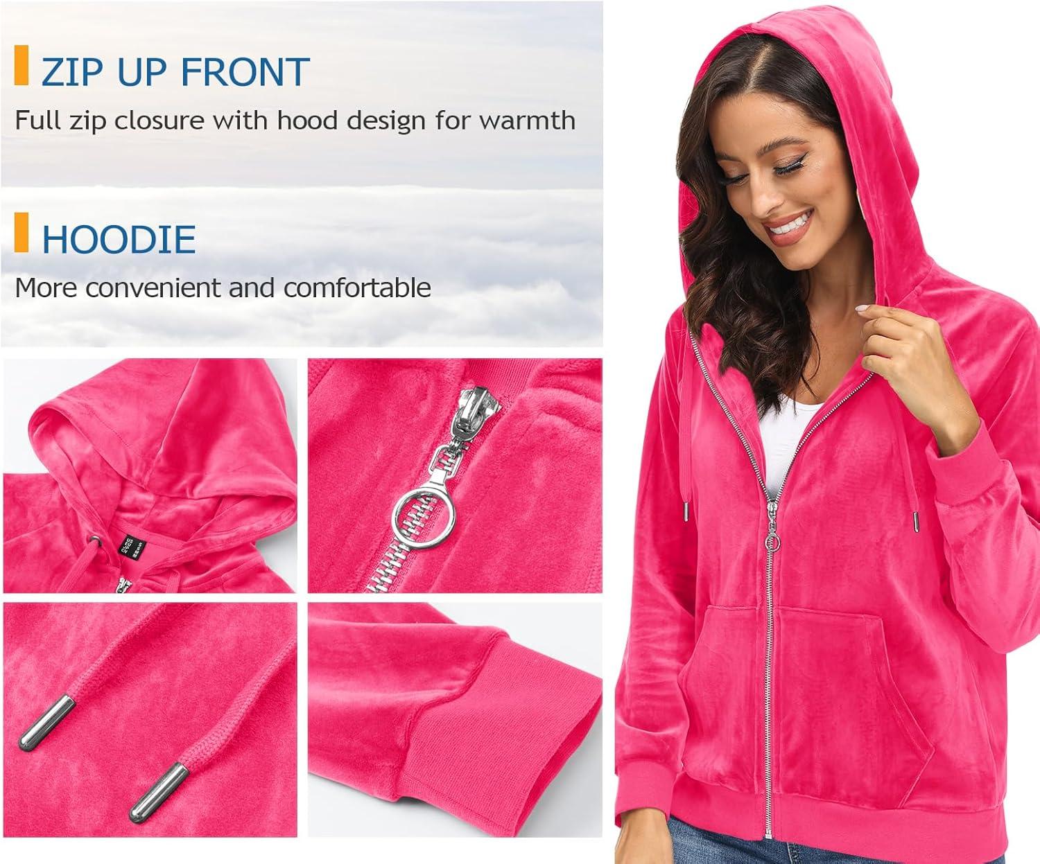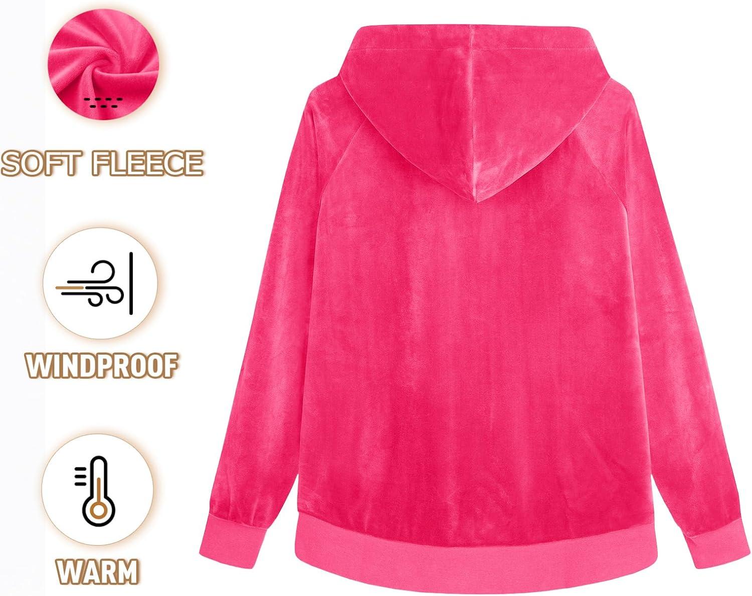 Women's Fleece Jacket with Hood Full Zip Velour Sweatshirt Long Sleeve Casual Coat with Pockets