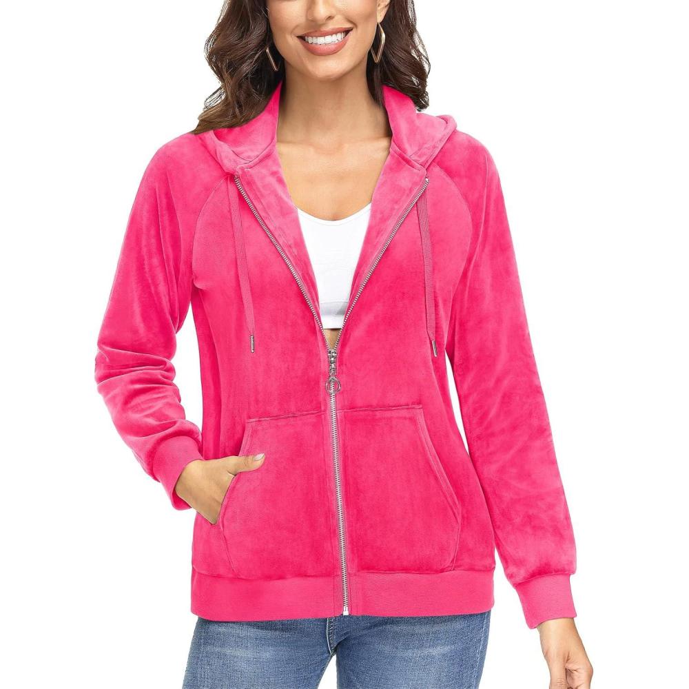 TACVASEN Women’s Velour Jacket with Hood Long Sleeve Soft Fleece Hooded Full Zip(Rose Red)