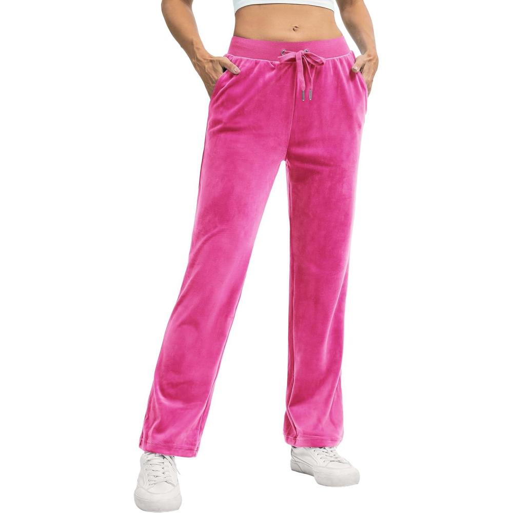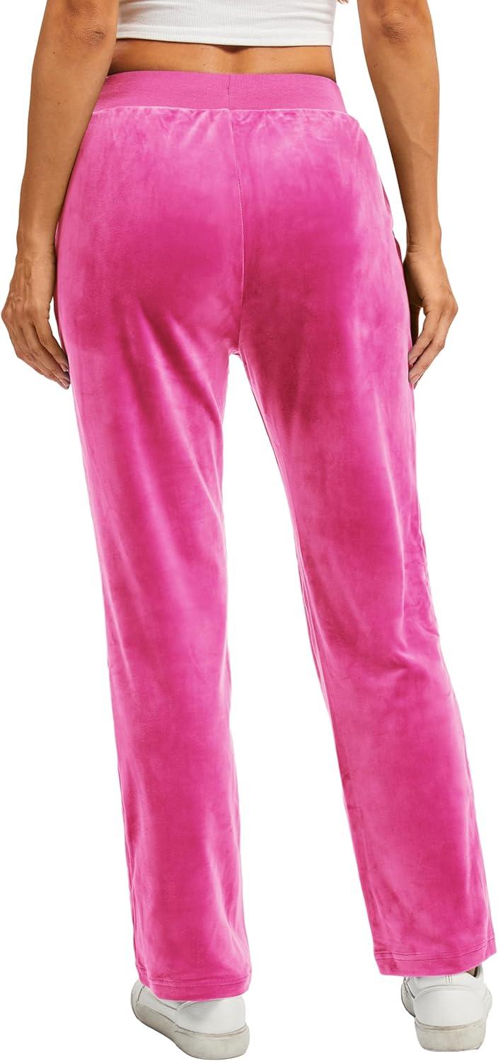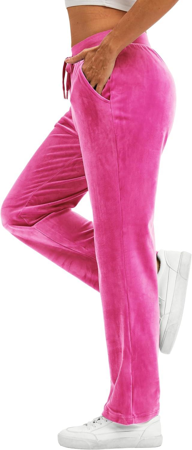 TACVASEN Women’s Velour Pants Soft Velvet Sweatpants Warm Straight Leg Lounge Pants with Pockets Athletic Casual(Rose Red)