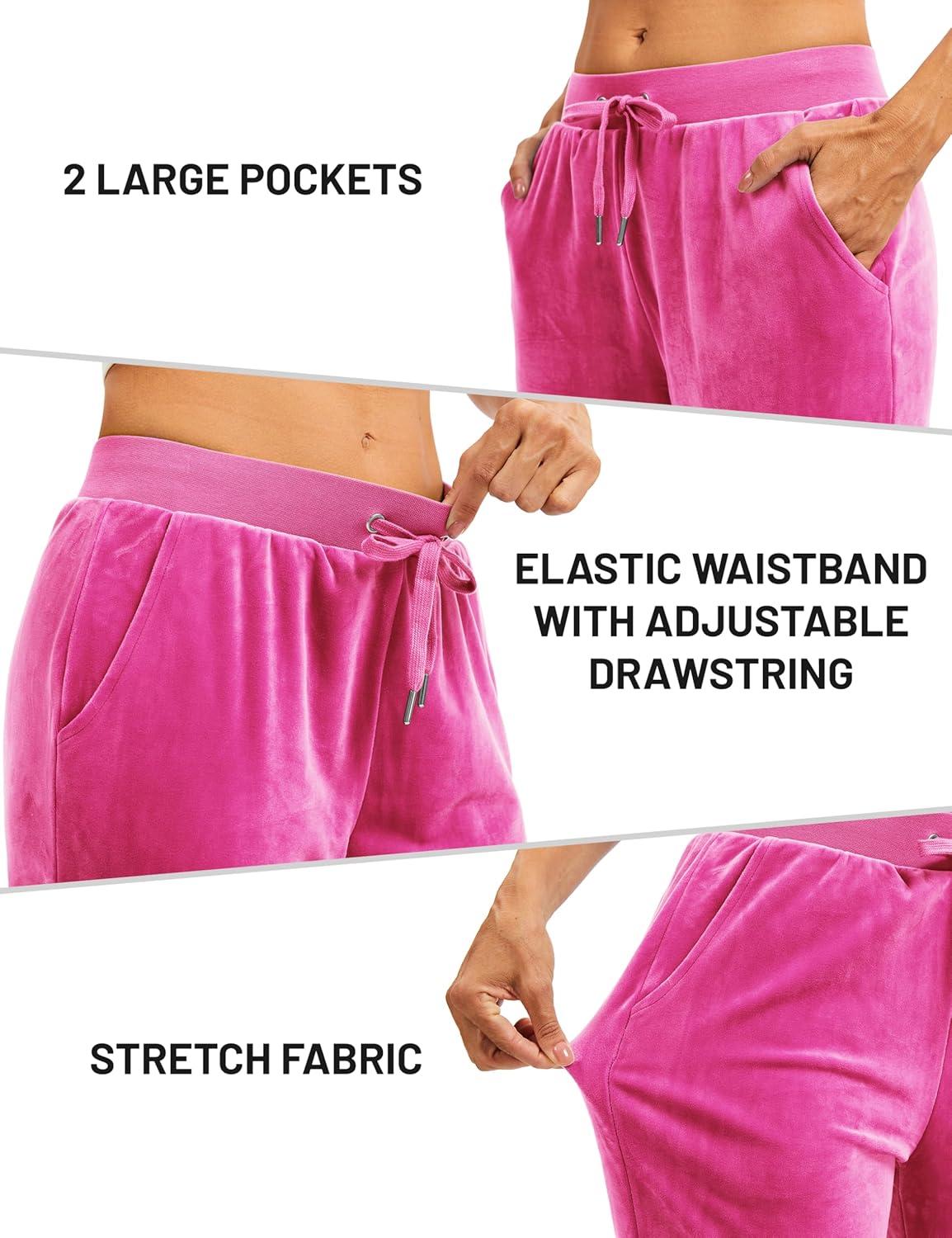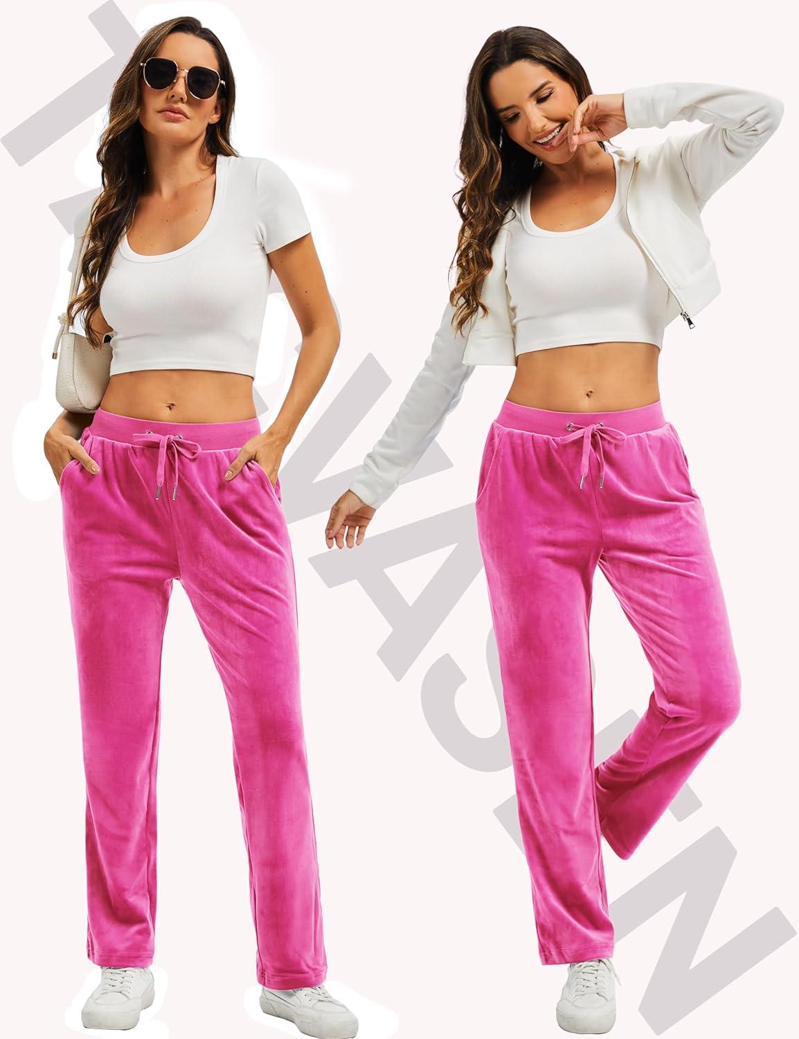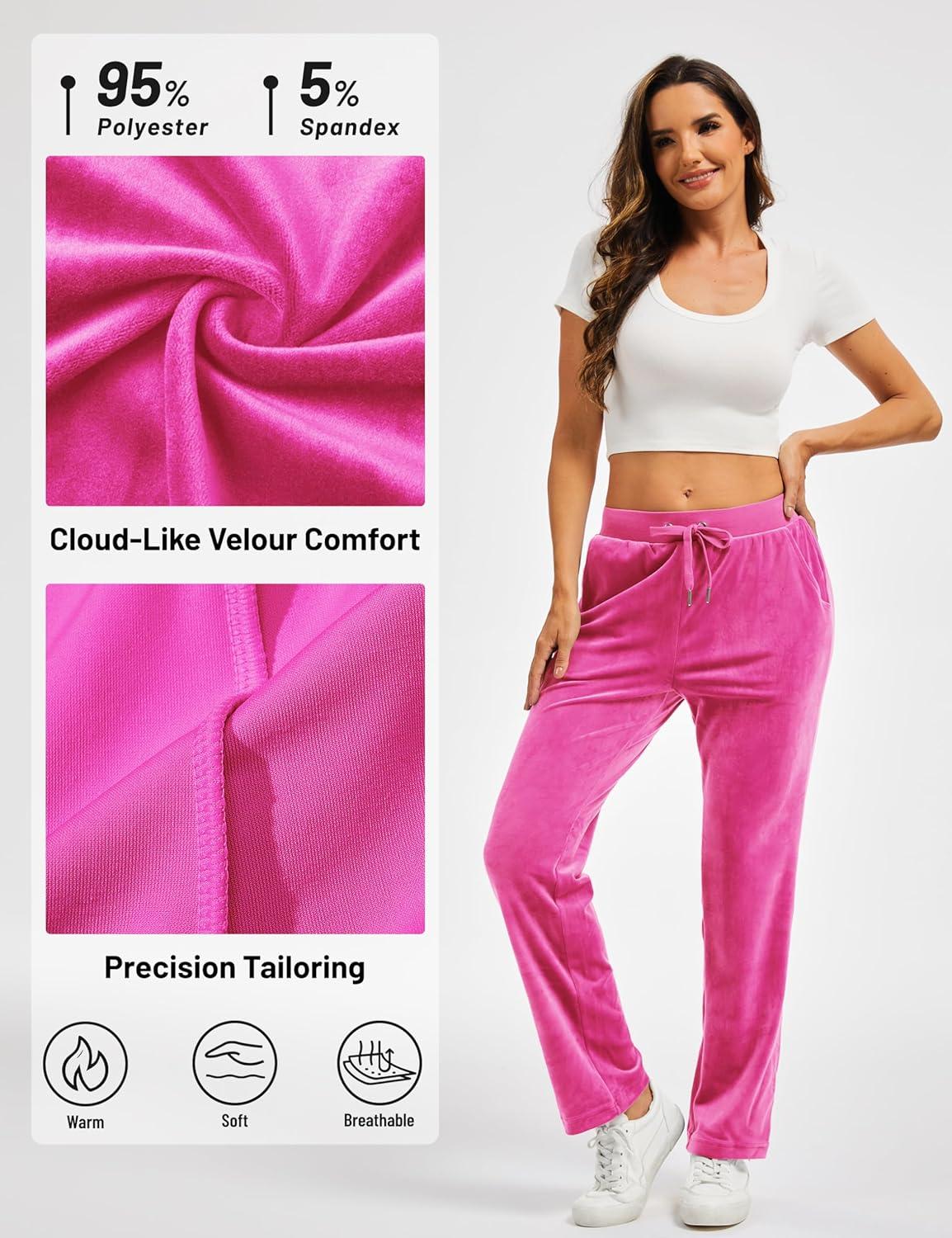 TACVASEN Women’s Velour Pants Soft Velvet Sweatpants Warm Straight Leg Lounge Pants with Pockets Athletic Casual(Rose Red)