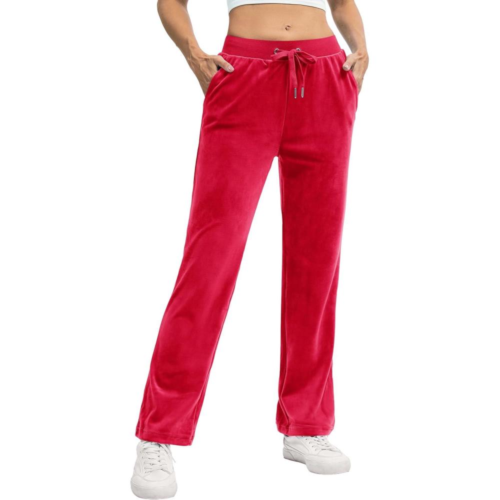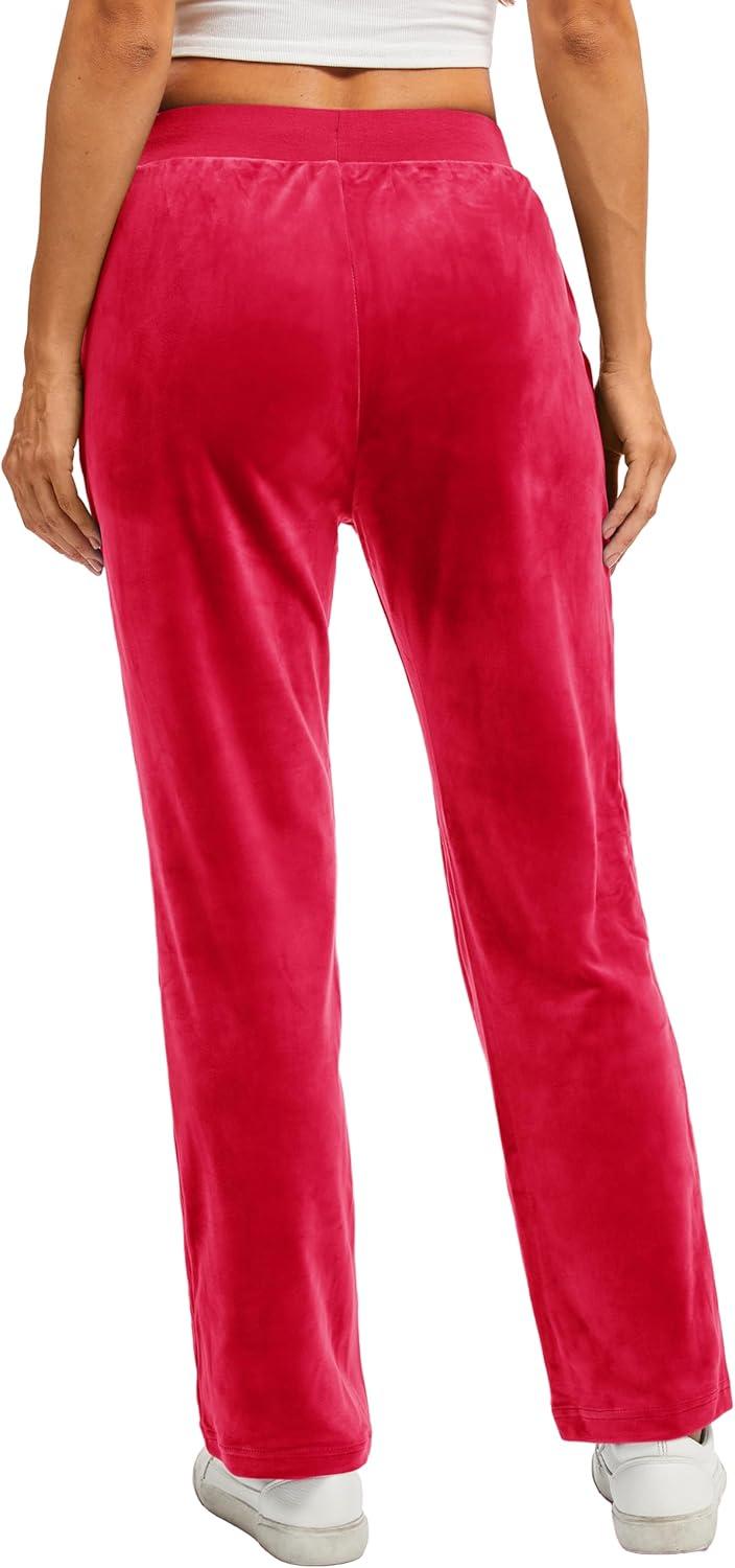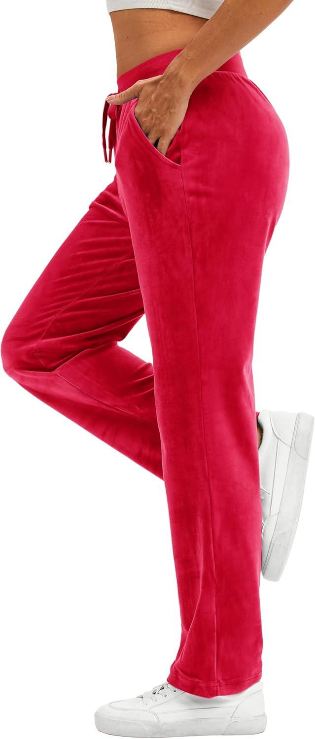 TACVASEN Women’s Velour Pants Soft Velvet Sweatpants Warm Straight Leg Lounge Pants with Pockets Athletic Casual(Tomato Red)