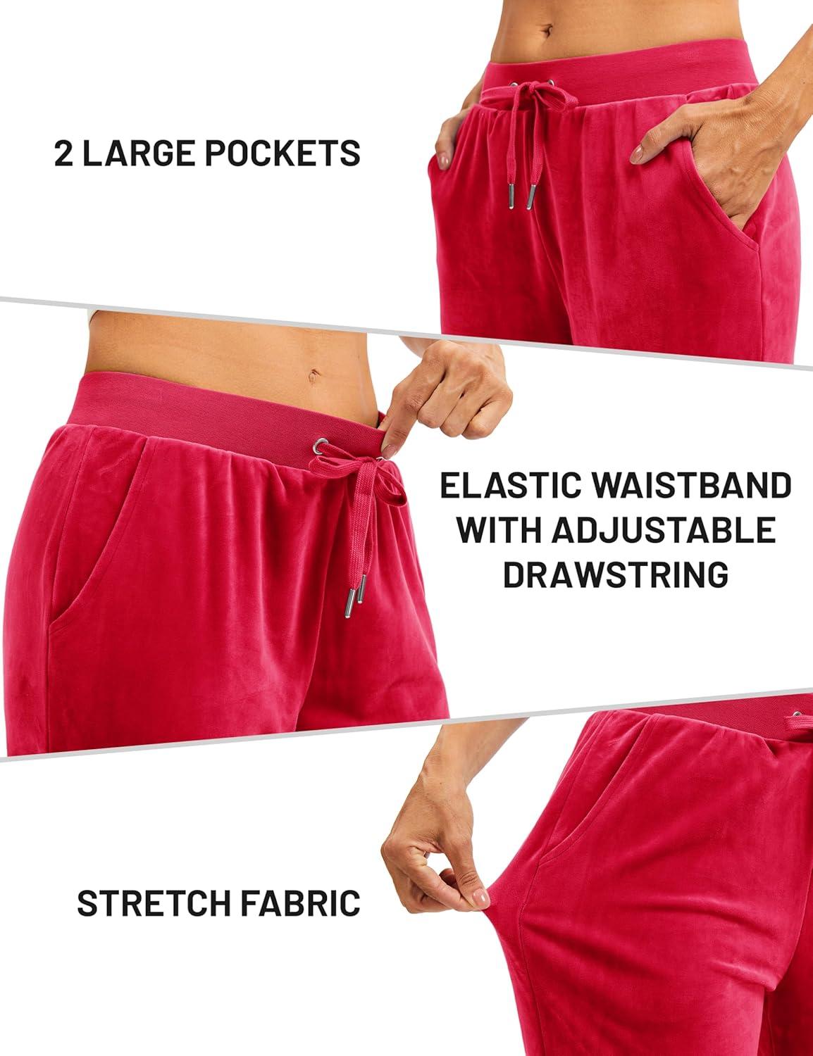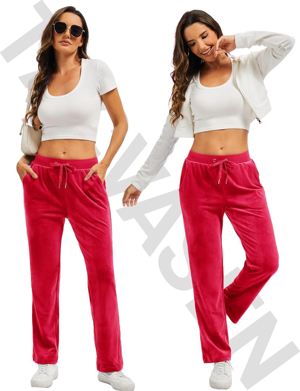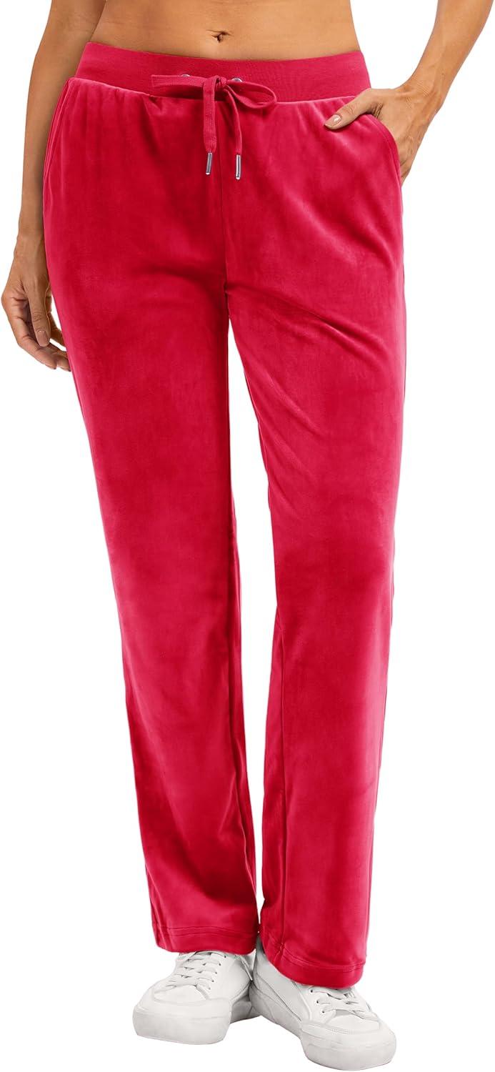 TACVASEN Women’s Velour Pants Soft Velvet Sweatpants Warm Straight Leg Lounge Pants with Pockets Athletic Casual(Tomato Red)