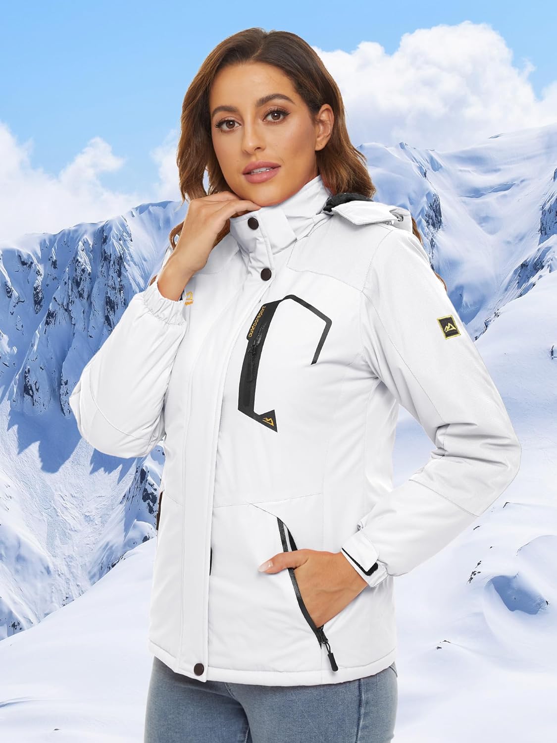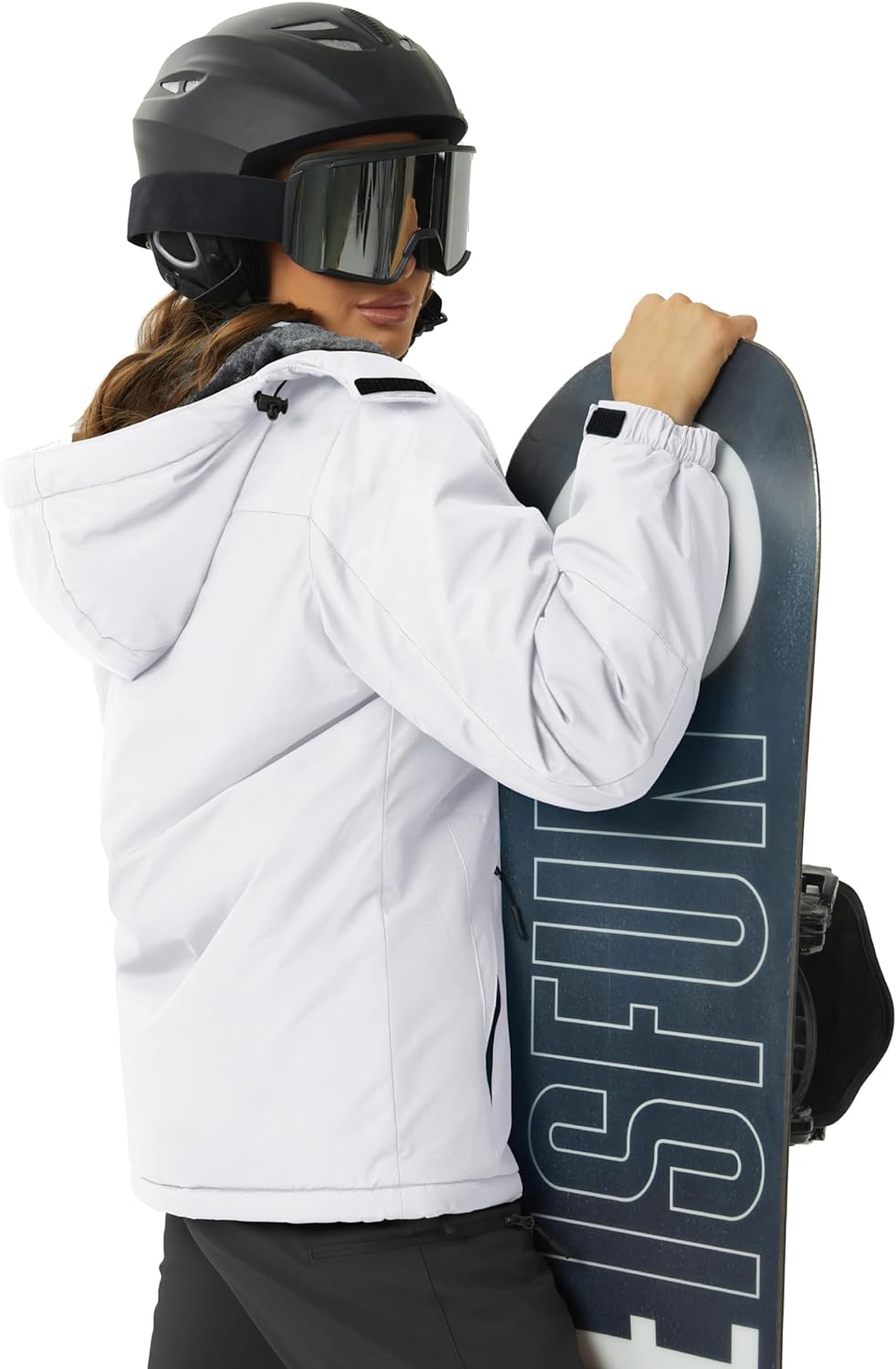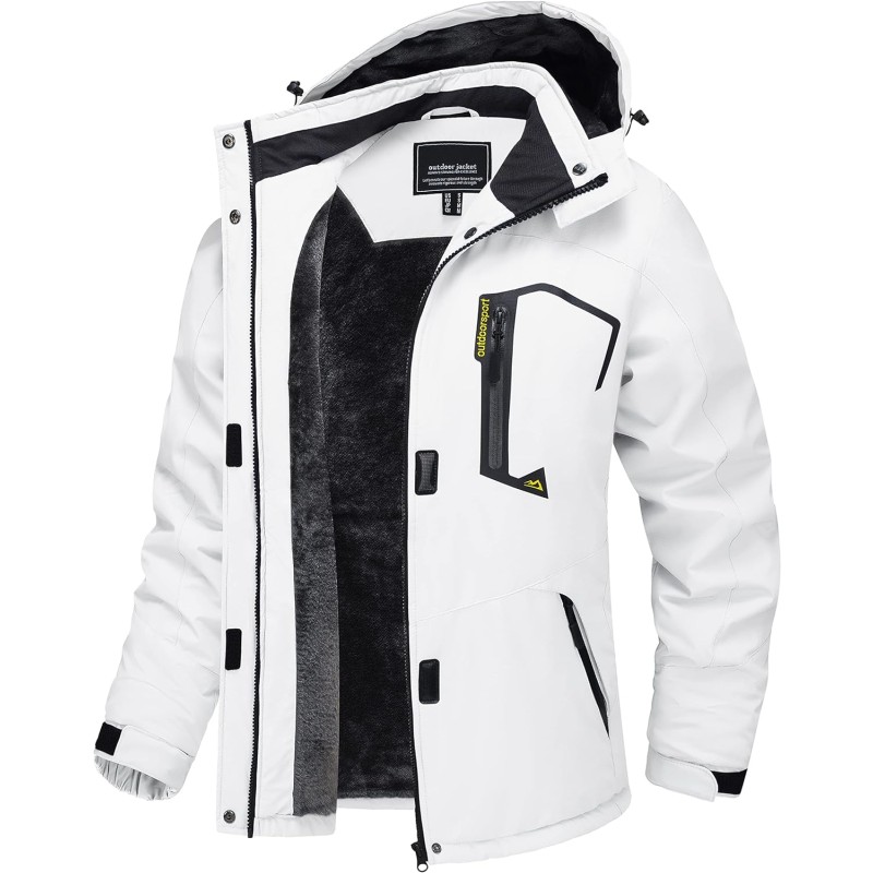 TACVASEN Women’s Waterproof Ski Jacket Hooded Fleece Lined Warm Winter Jacket Snow Coat Mountain Windproof Rain Windbreaker(White)