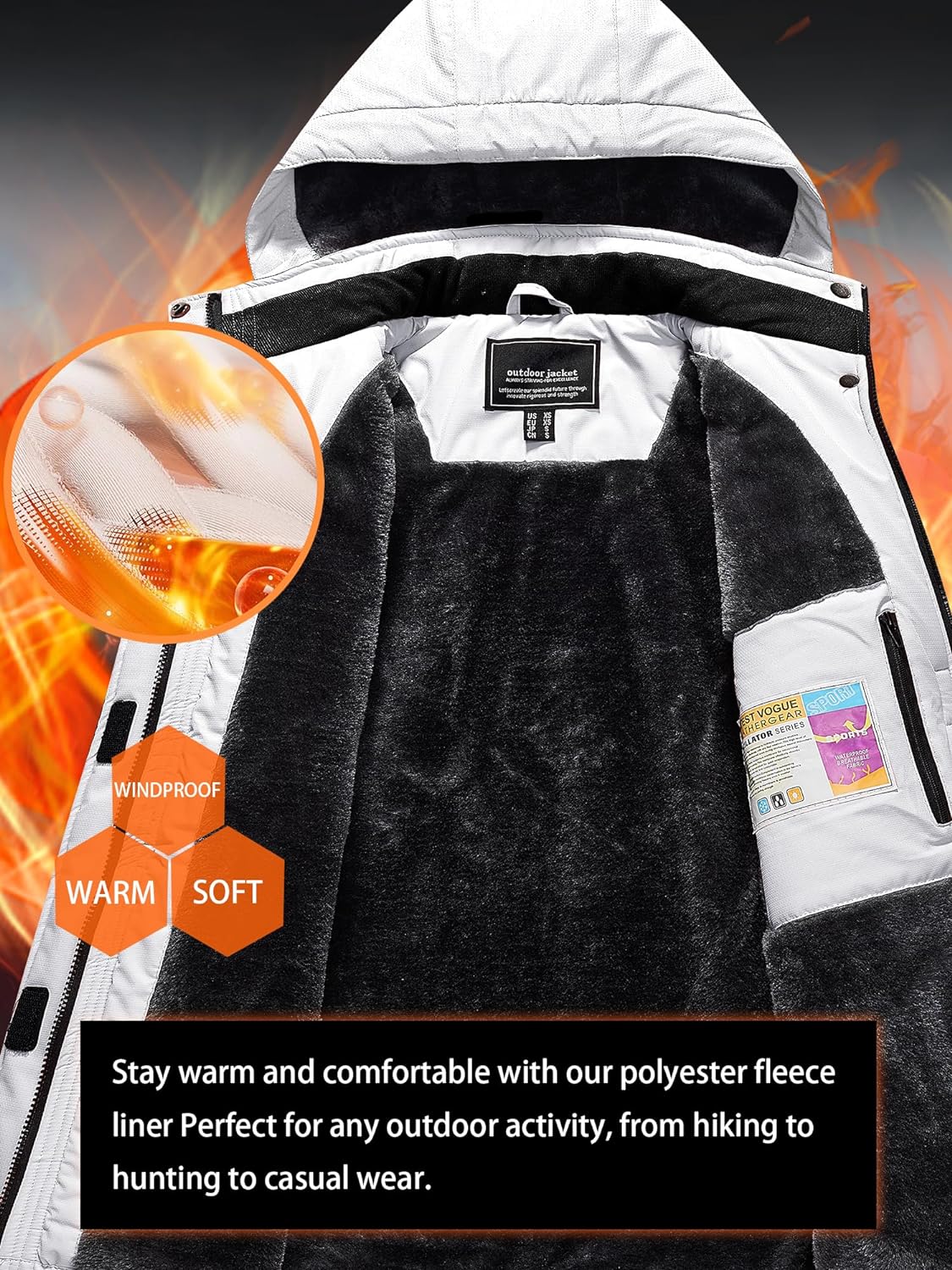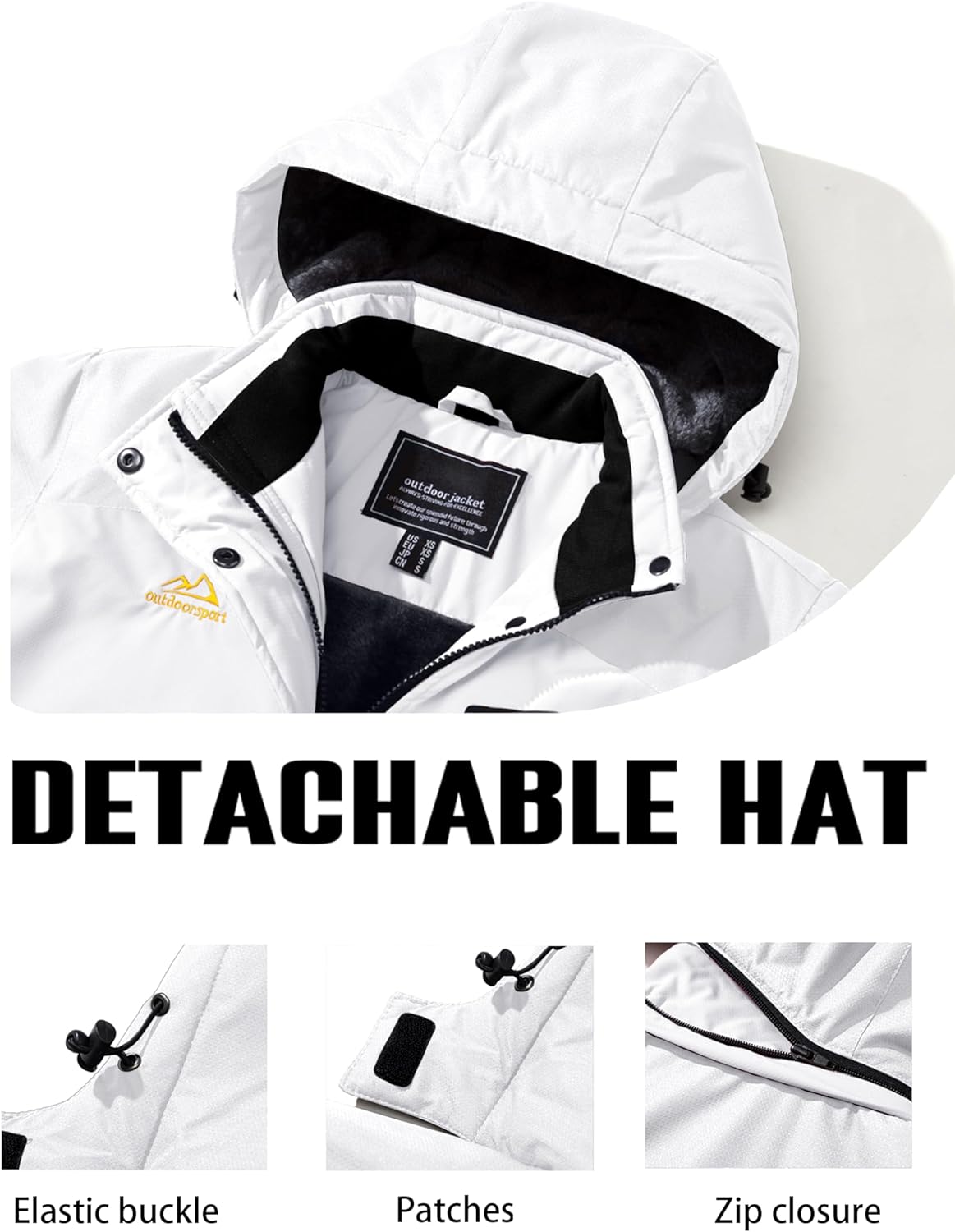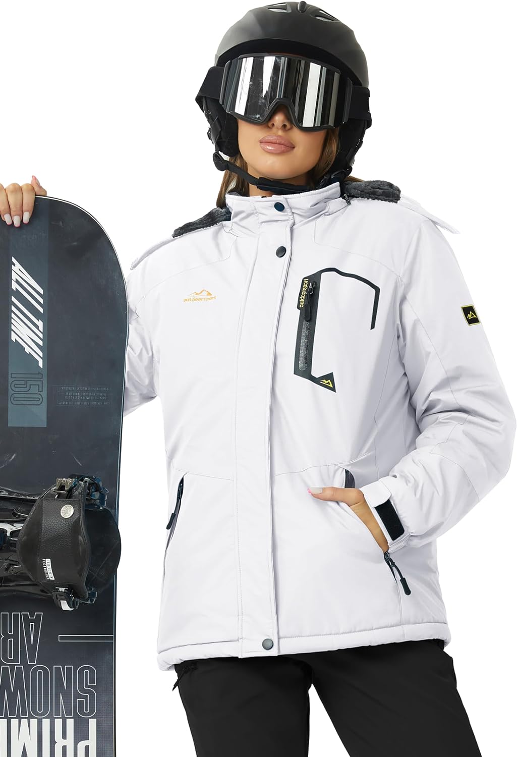 TACVASEN Women’s Waterproof Ski Jacket Hooded Fleece Lined Warm Winter Jacket Snow Coat Mountain Windproof Rain Windbreaker(White)
