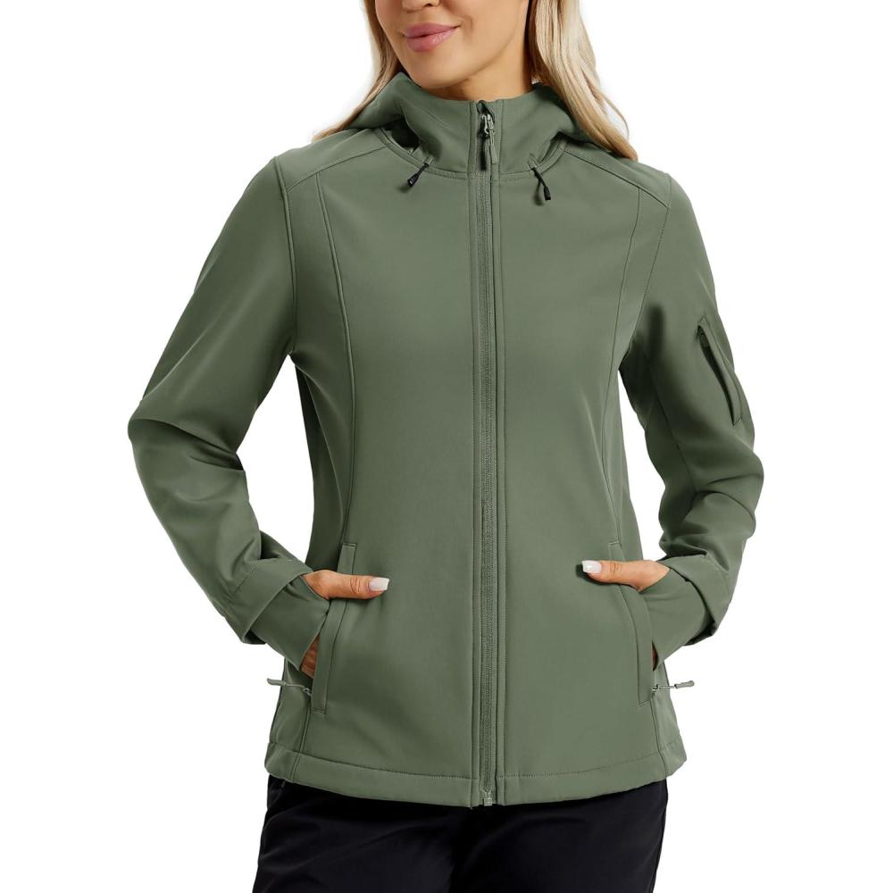 TACVASEN Women’s Waterproof Softshell Jacket with Hood Fleece Lined Warm Light Raincoat for Outdoor Hiking(Dark Grey Green)