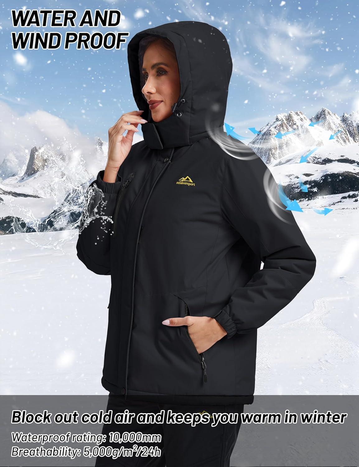 TACVASEN Women's Waterproof Winter Jacket Ski Hooded Insulated Jacket Fleece Warm Snow Outdoor Rain Windbreaker