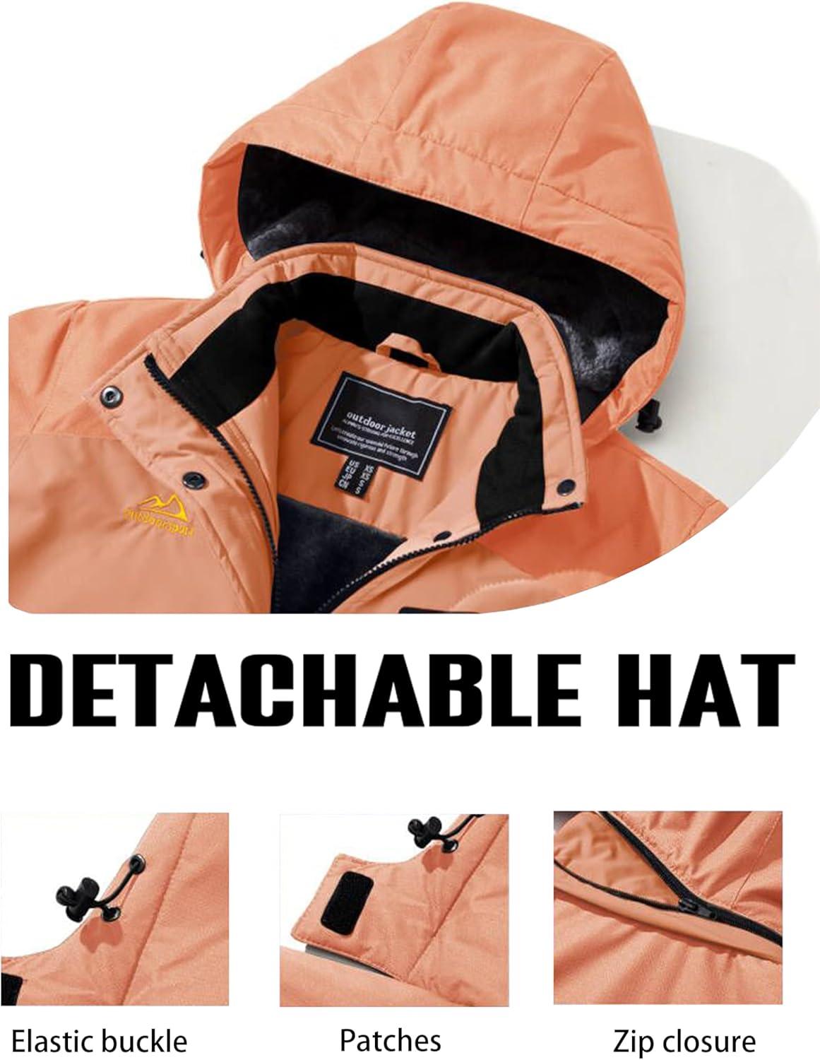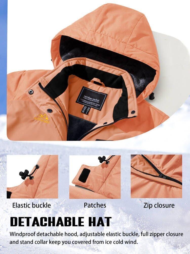 TACVASEN Women’s Winter Jacket Waterproof Ski Jacket Snow Coat Warm Fleece Rain Jacket with Hood Windbreaker(Apricot)