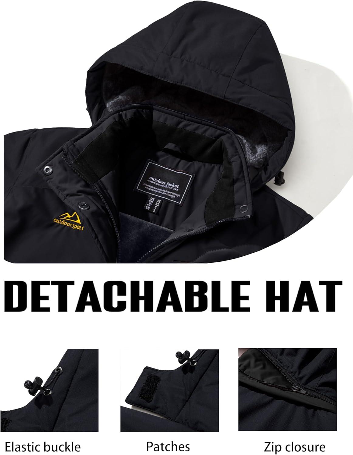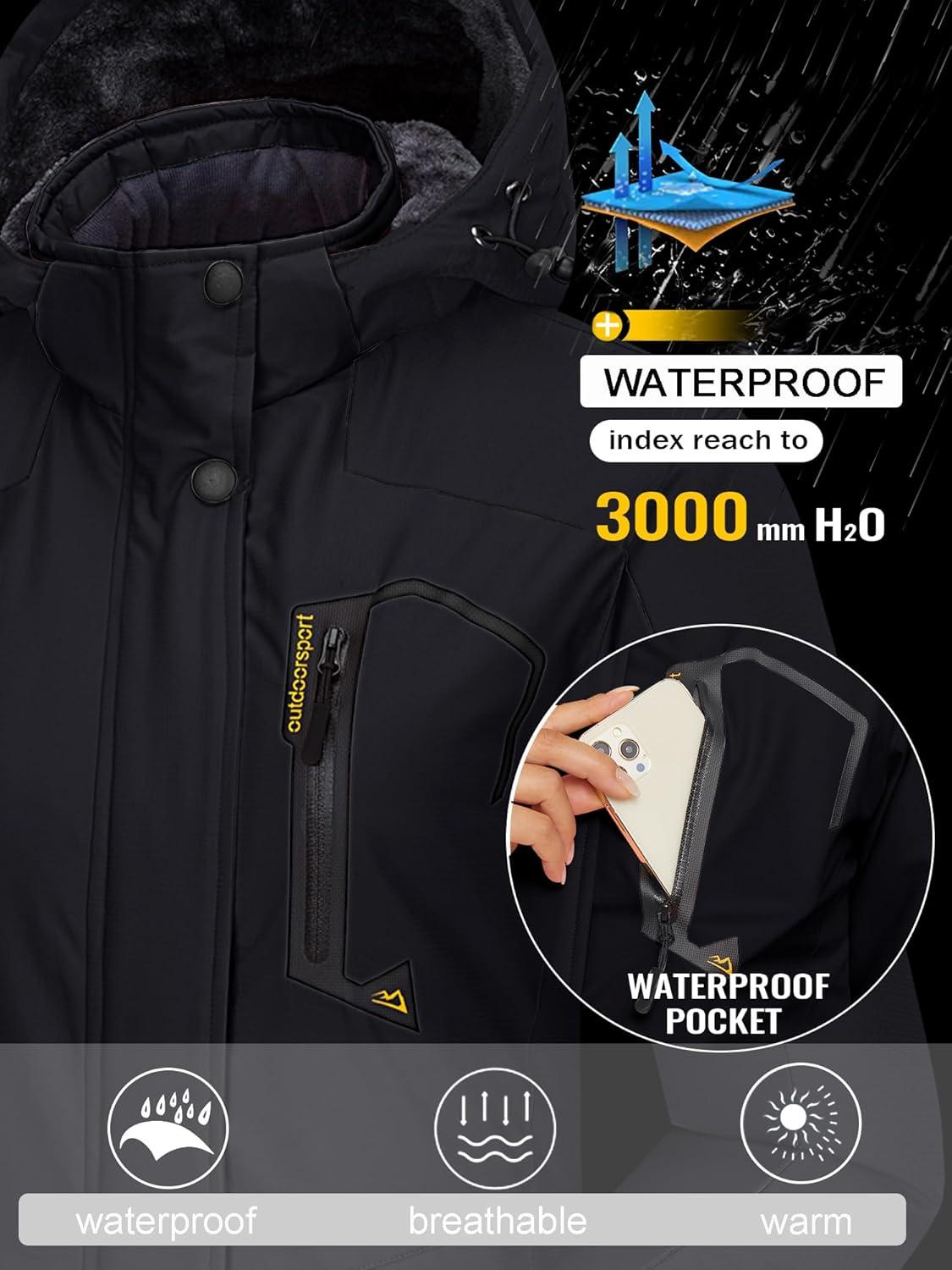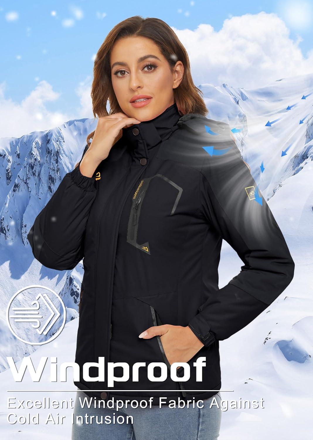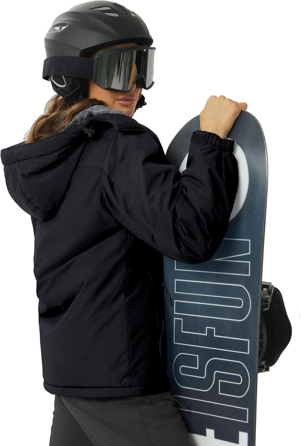 TACVASEN Women’s Winter Jacket Waterproof Ski Jacket Snow Coat Warm Fleece Rain Jacket with Hood Windbreaker(Black)