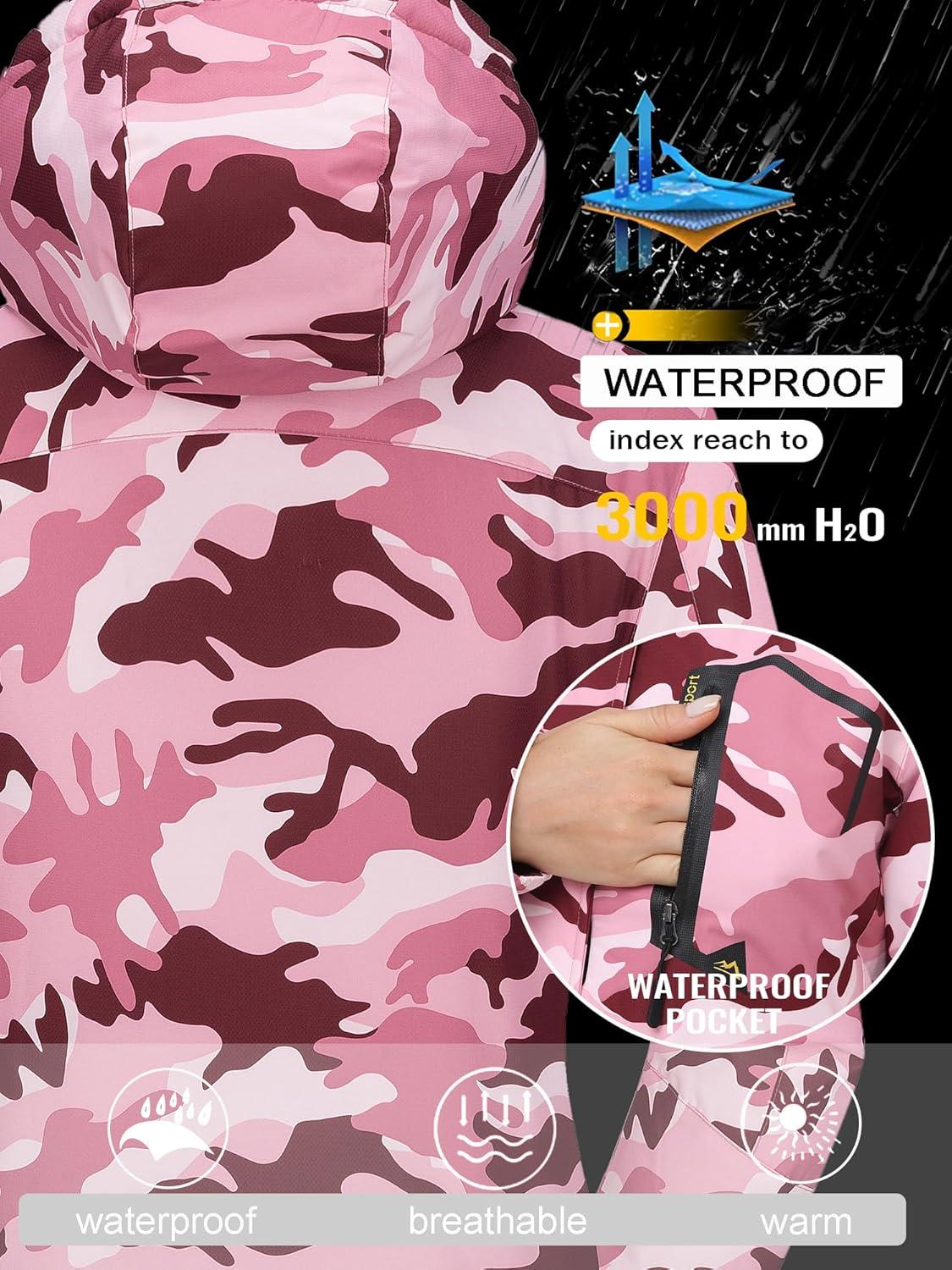 TACVASEN Women’s Winter Jacket Waterproof Ski Jacket Snow Coat Warm Fleece Rain Jacket with Hood Windbreaker(Color Pink)