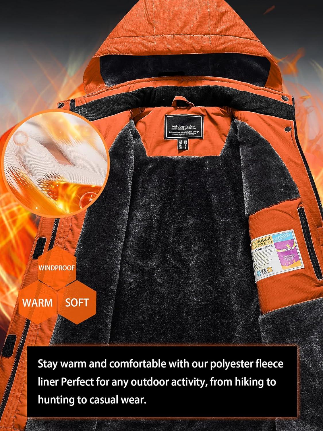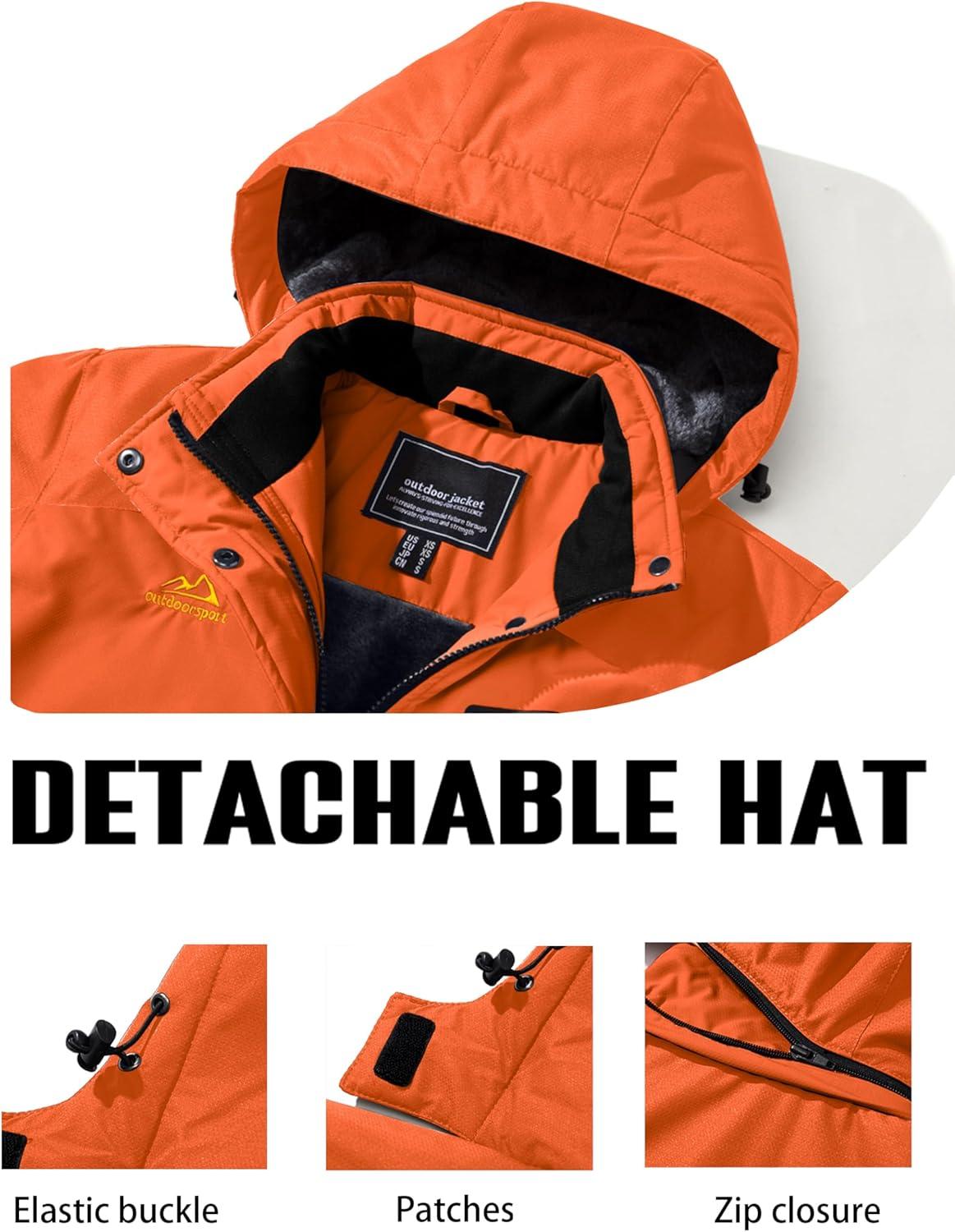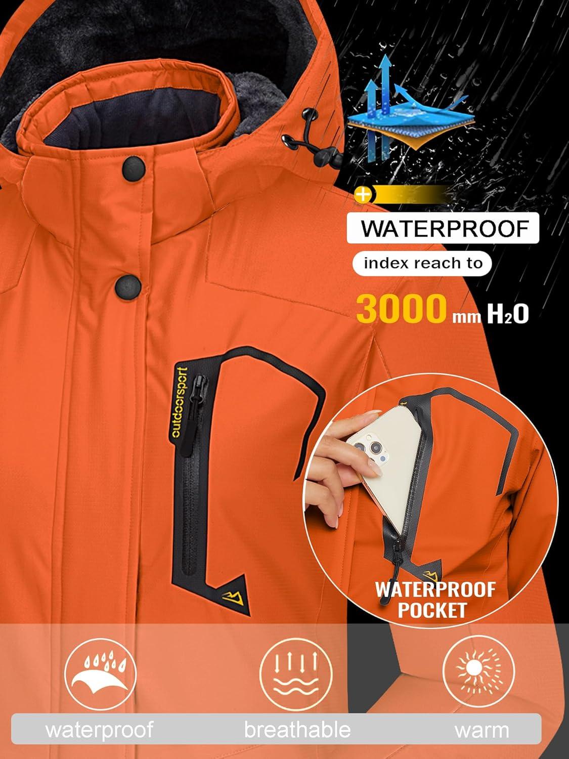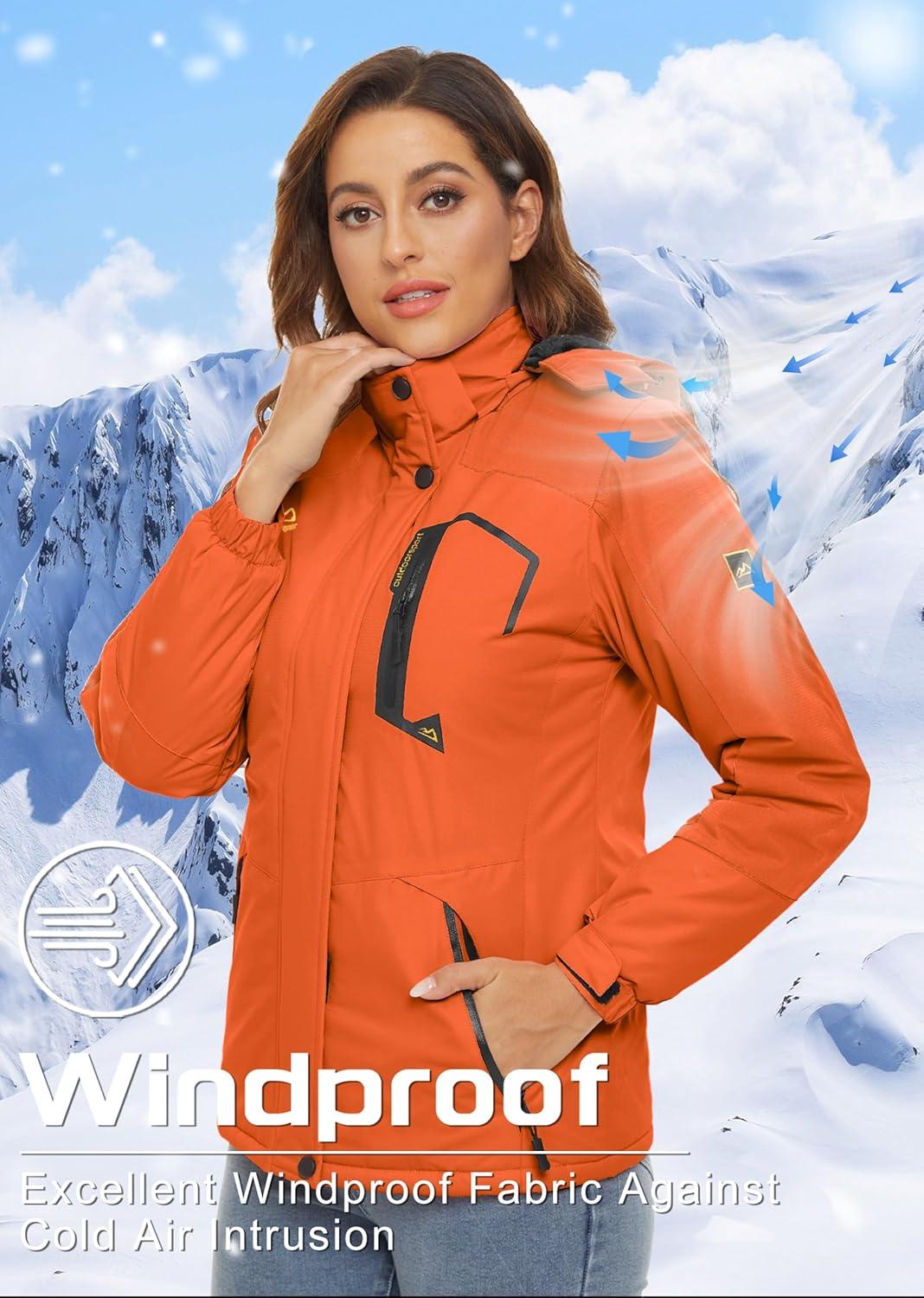 TACVASEN Women’s Winter Jacket Waterproof Ski Jacket Snow Coat Warm Fleece Rain Jacket with Hood Windbreaker(Orange)