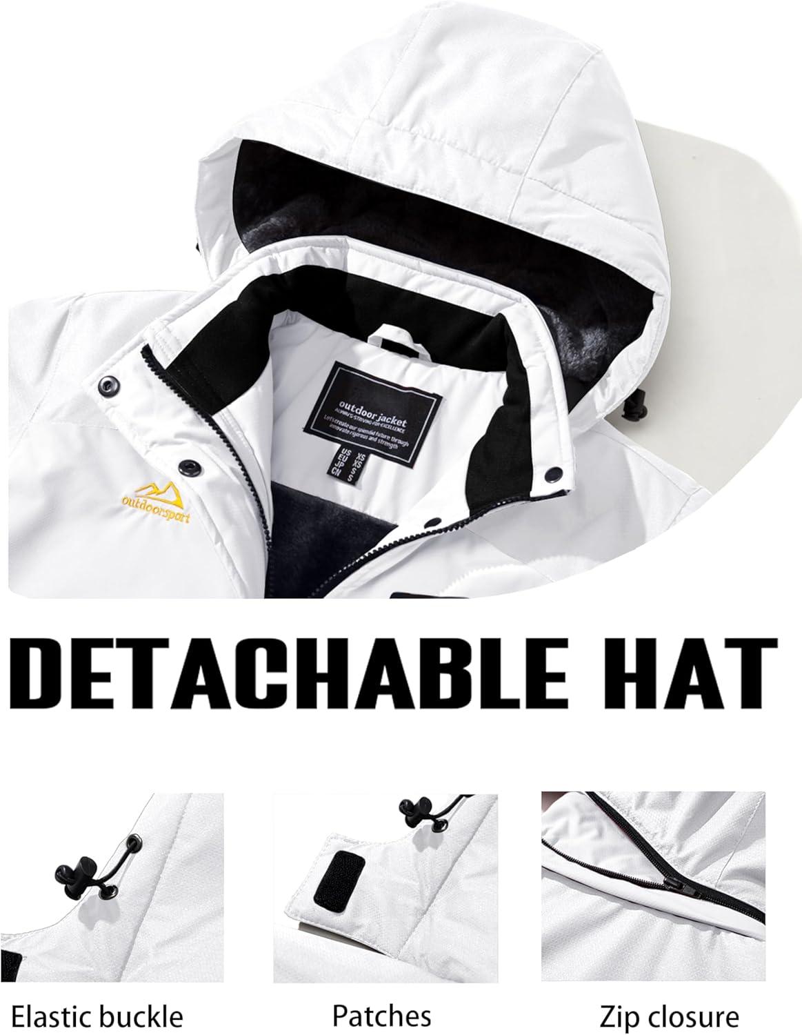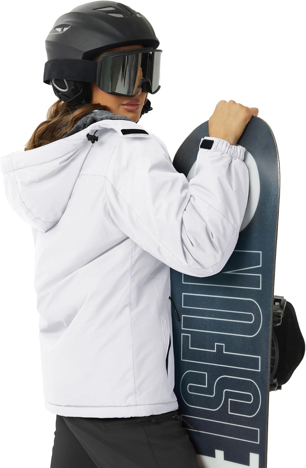 TACVASEN Women’s Winter Jacket Waterproof Ski Jacket Snow Coat Warm Fleece Rain Jacket with Hood Windbreaker(White)