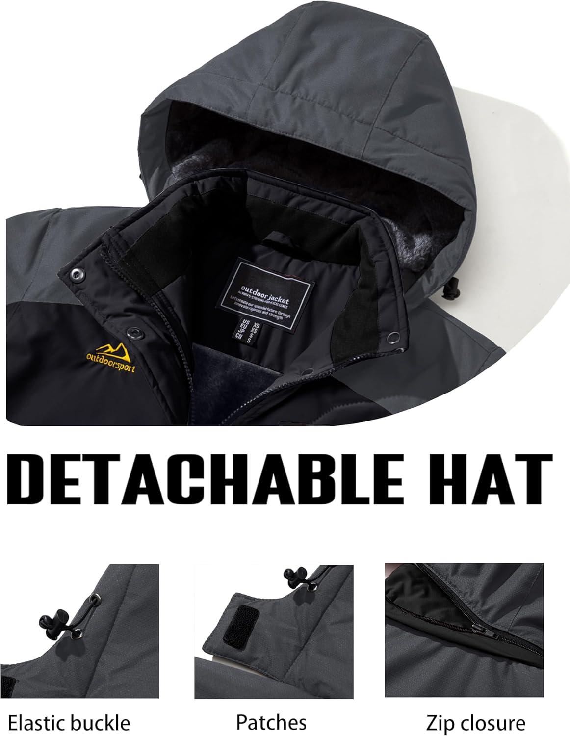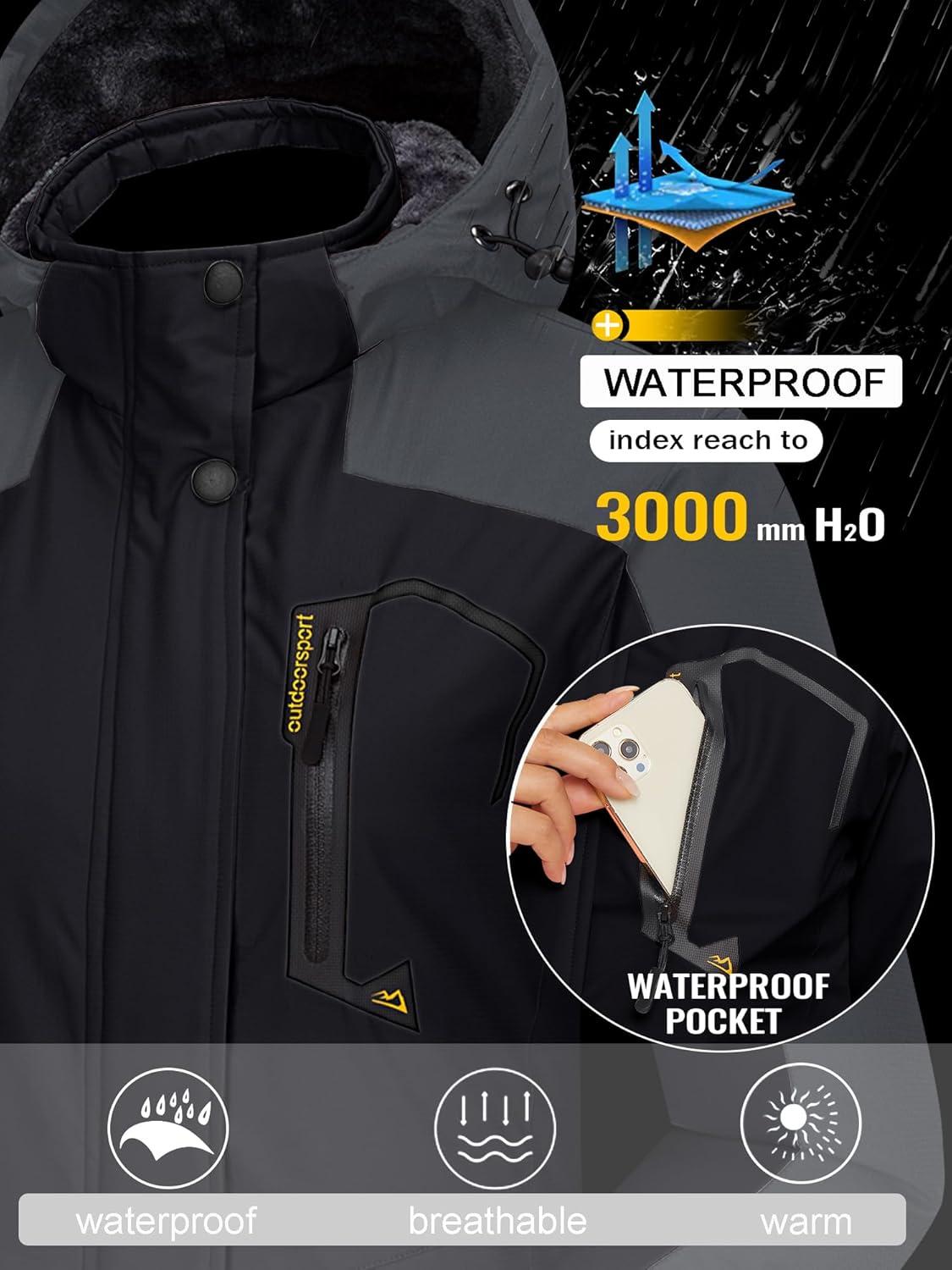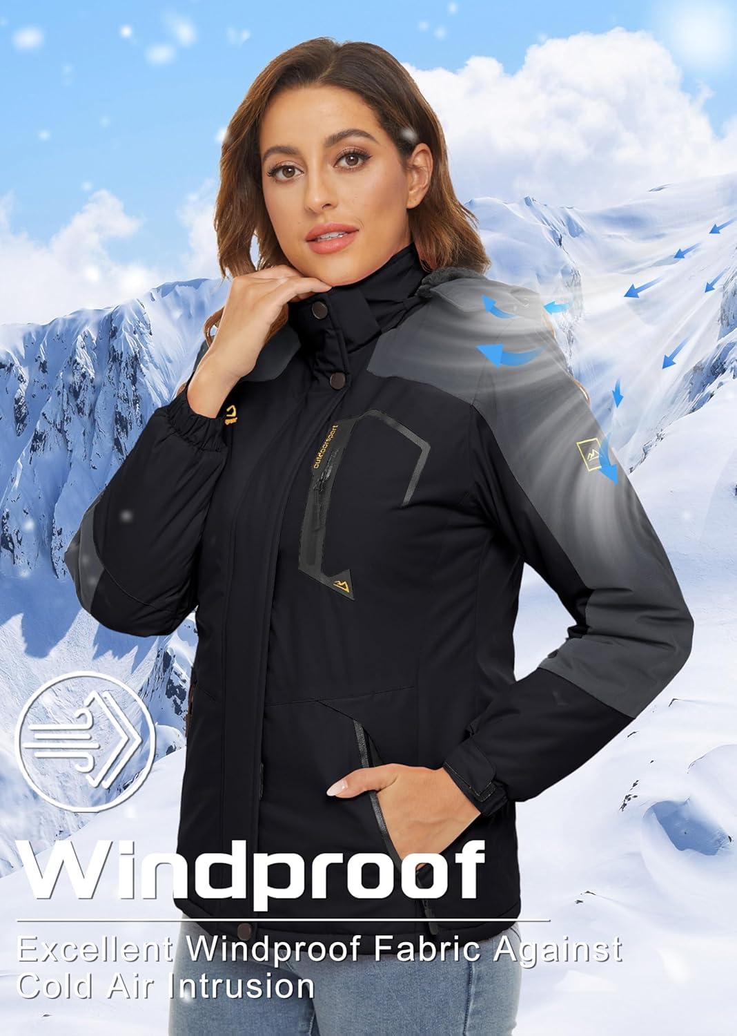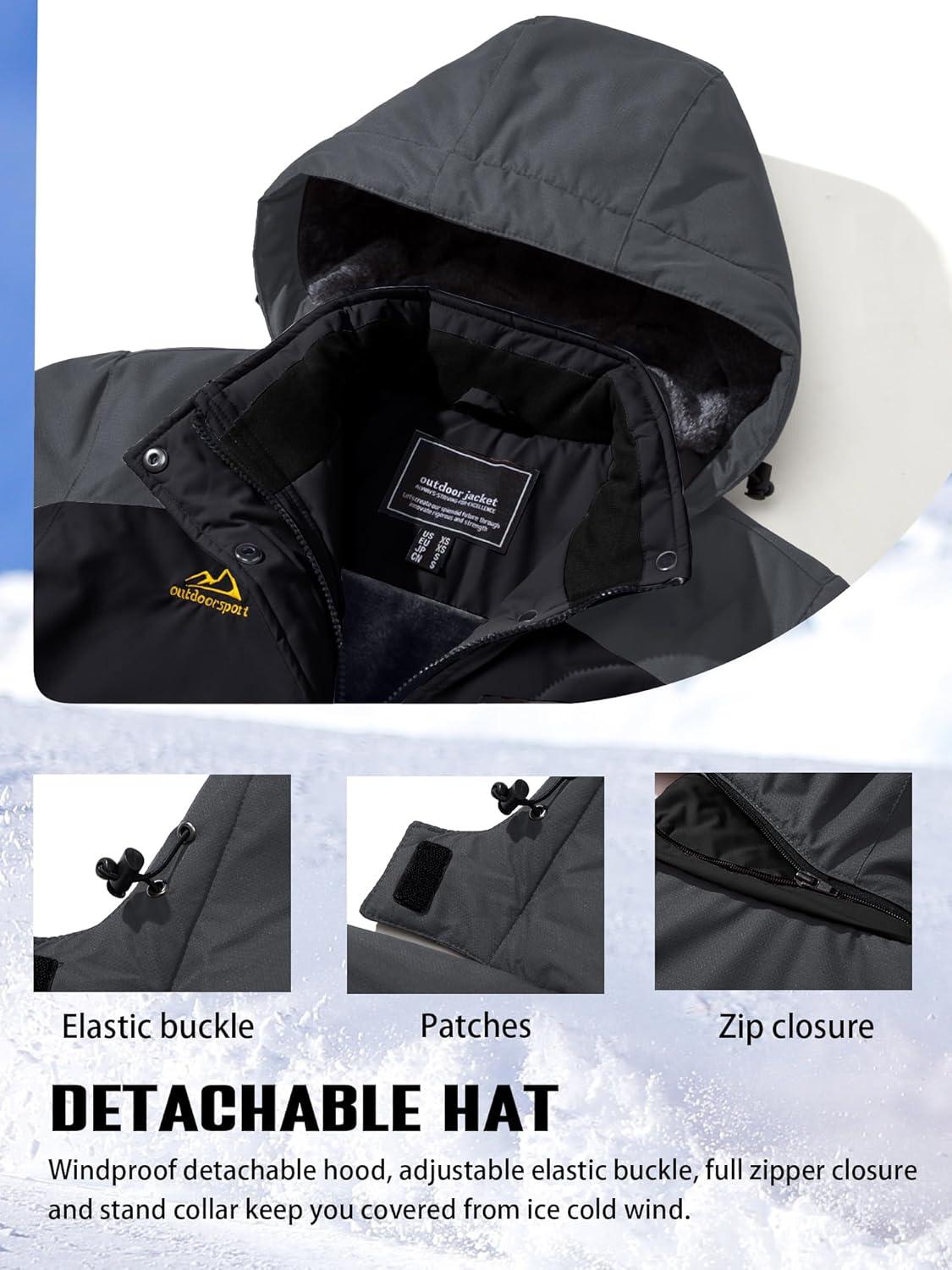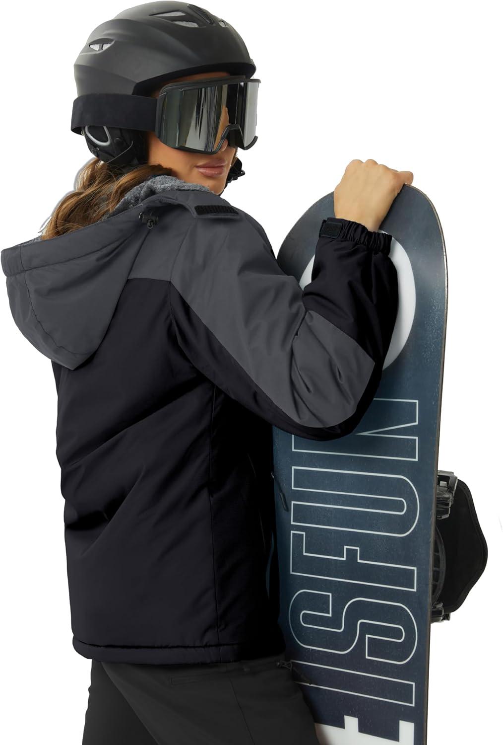 TACVASEN Women’s Winter Jacket Waterproof Ski Jackets Snow Coat Warm Fleece Rain Jacket with Hood Windbreaker(Black Grey)
