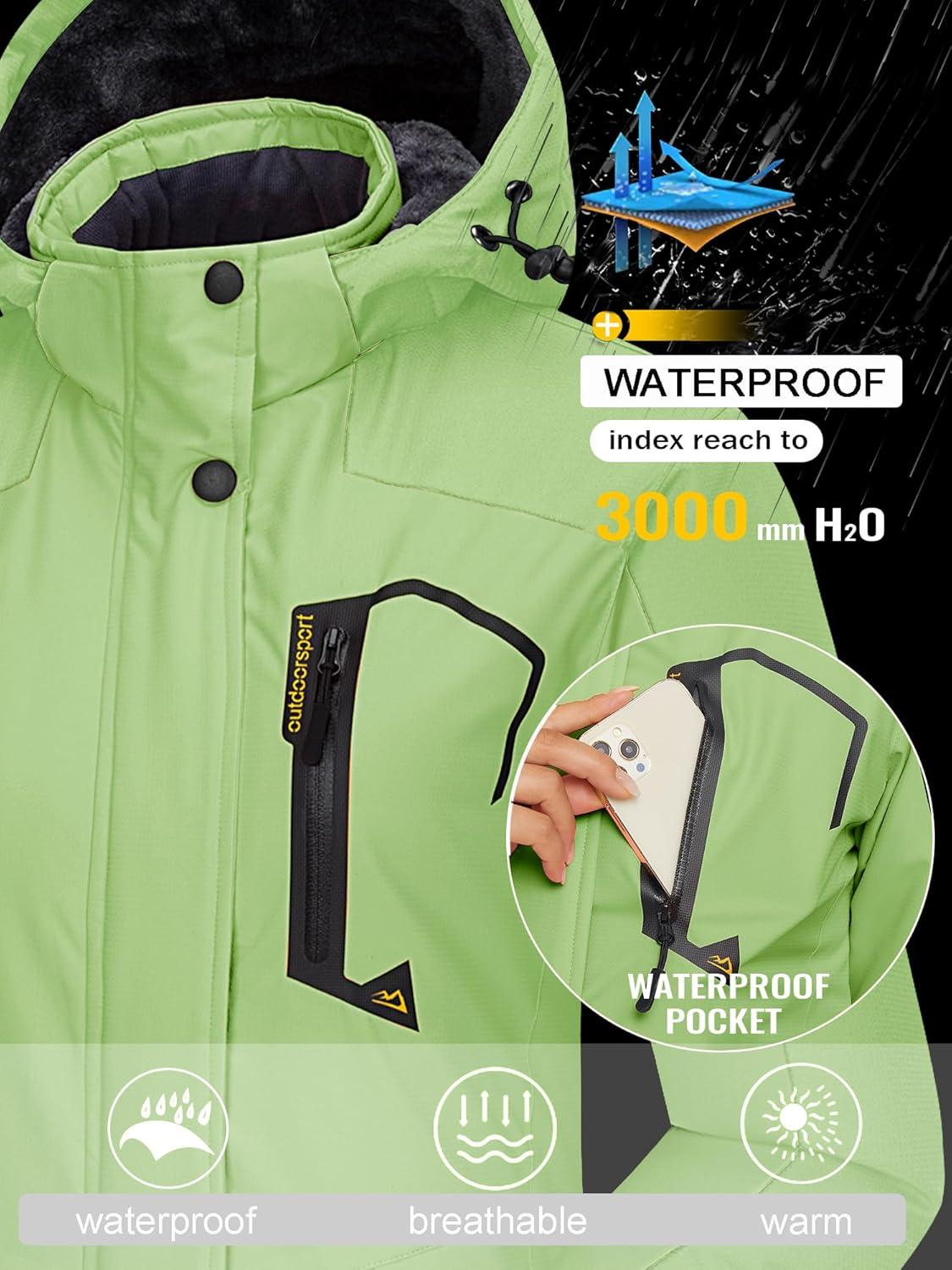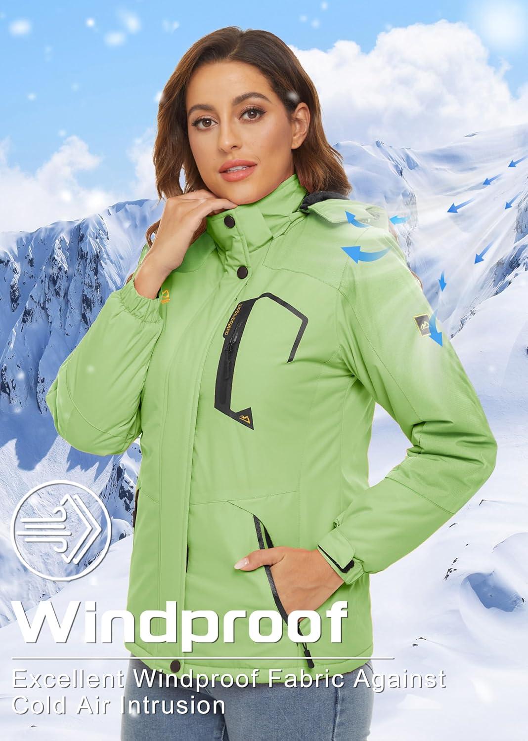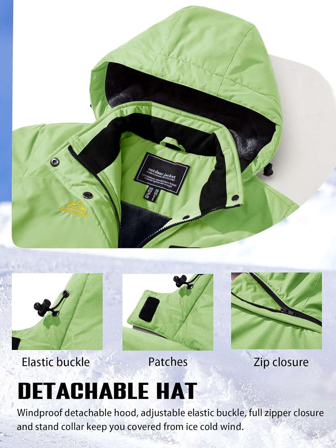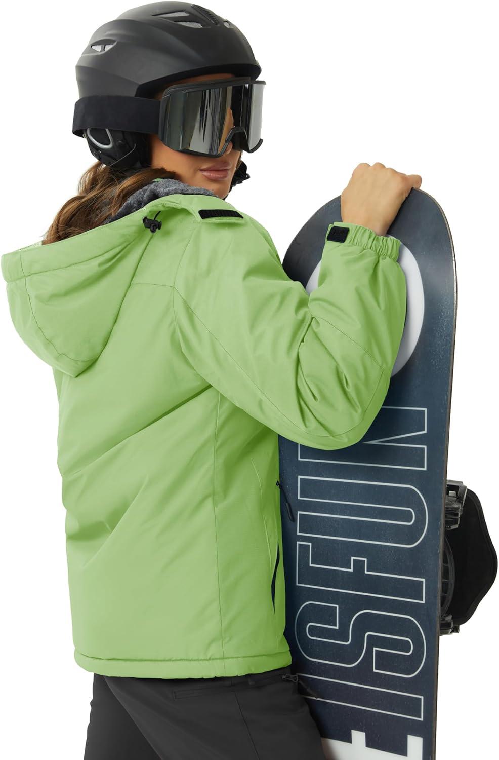 TACVASEN Women’s Winter Jacket Waterproof Ski Jackets Snow Coat Warm Fleece Rain Jacket with Hood Windbreaker(Light Green)