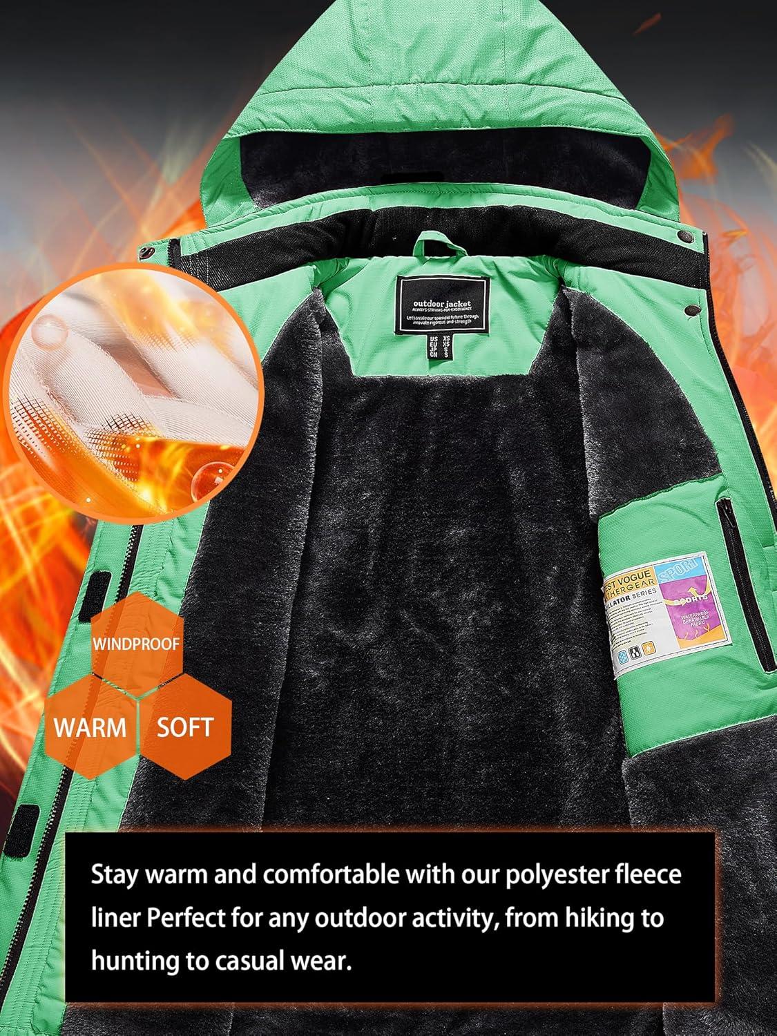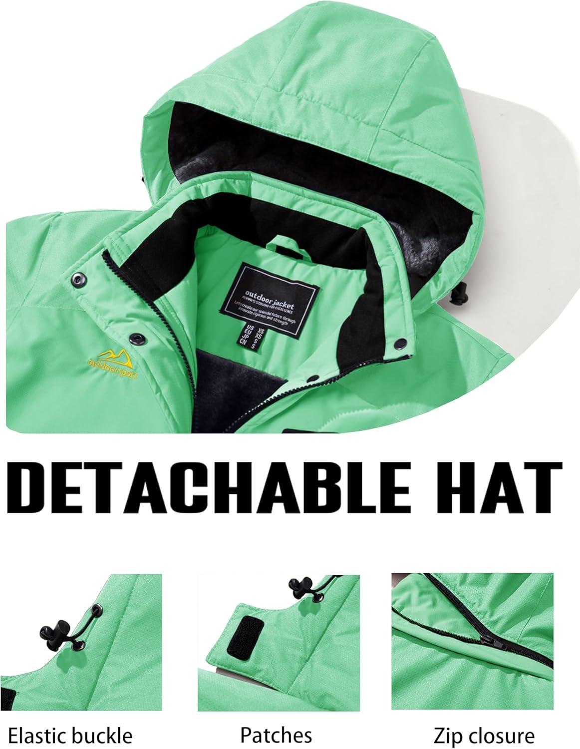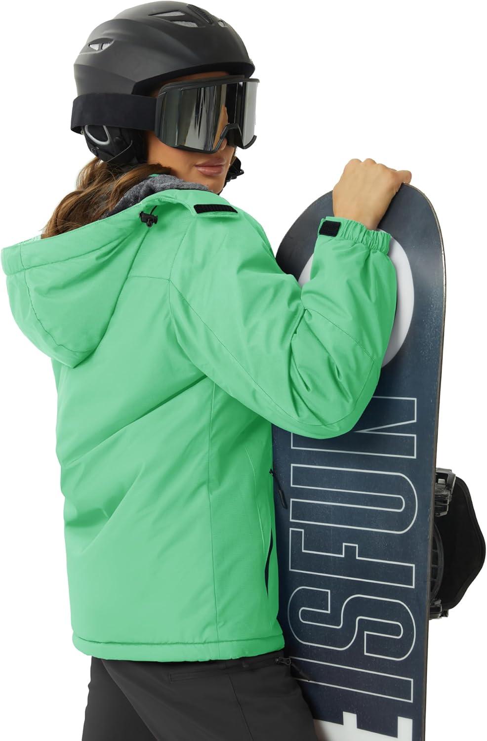 TACVASEN Women’s Winter Jacket Waterproof Ski Jackets Snow Coat Warm Fleece Rain Jacket with Hood Windbreaker(Light Green)