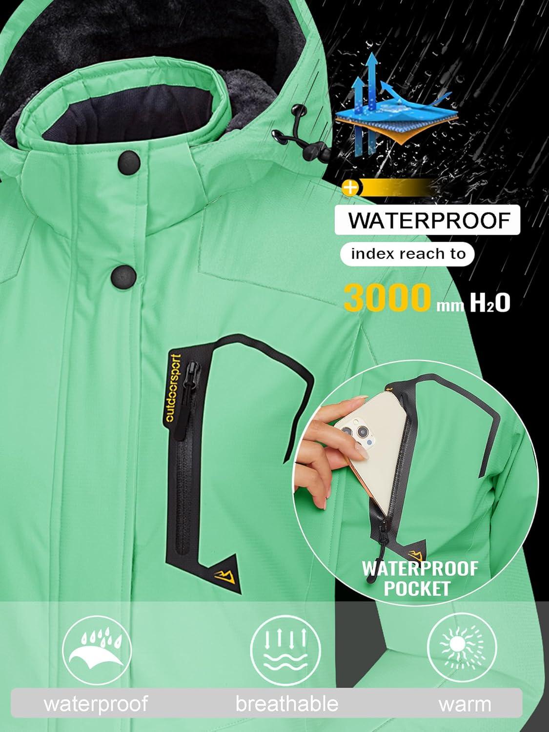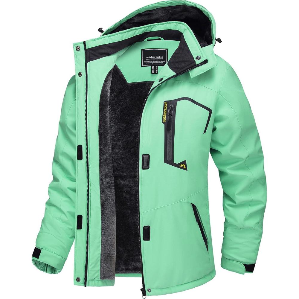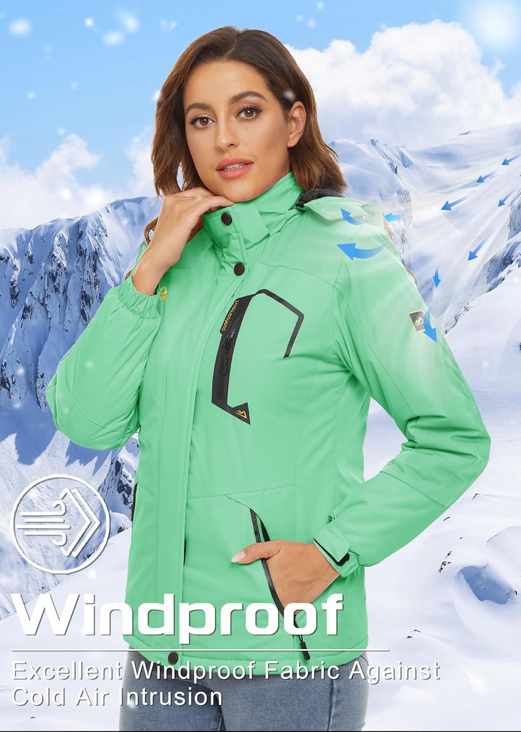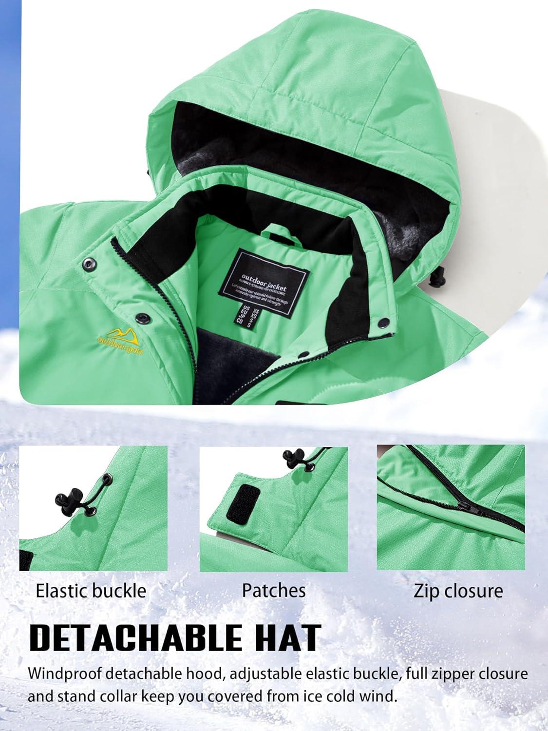 TACVASEN Women’s Winter Jacket Waterproof Ski Jackets Snow Coat Warm Fleece Rain Jacket with Hood Windbreaker(Mint Green)