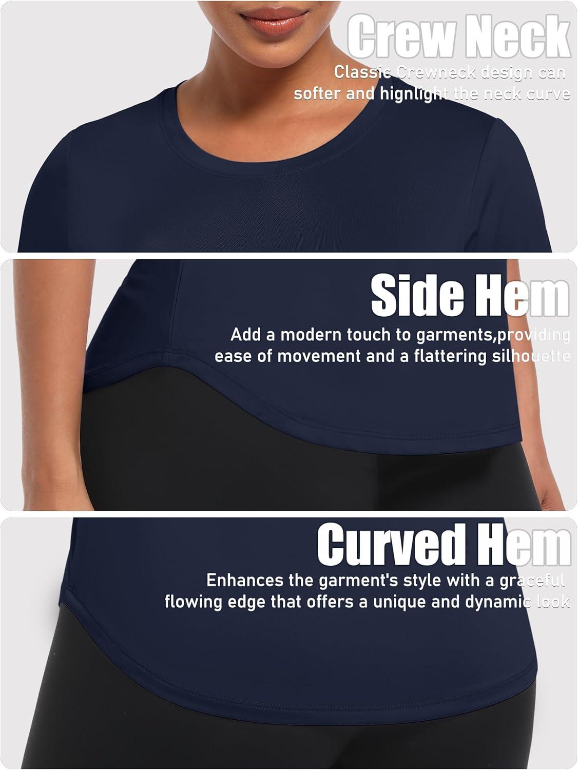 TACVASEN Womens Workout Shirt Short Sleeve UPF 80+ Sun Protection Shirts Moisture Wicking Tops(Navy)