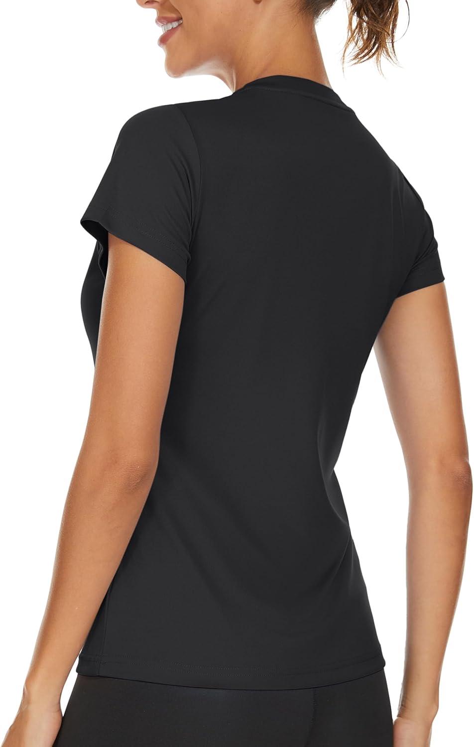 TACVASEN Workout Tops for Women UPF 50+ Sun Protection V-Neck T Shirts Short Sleeve Quick Dry Athletic Running Shirts(Black)
