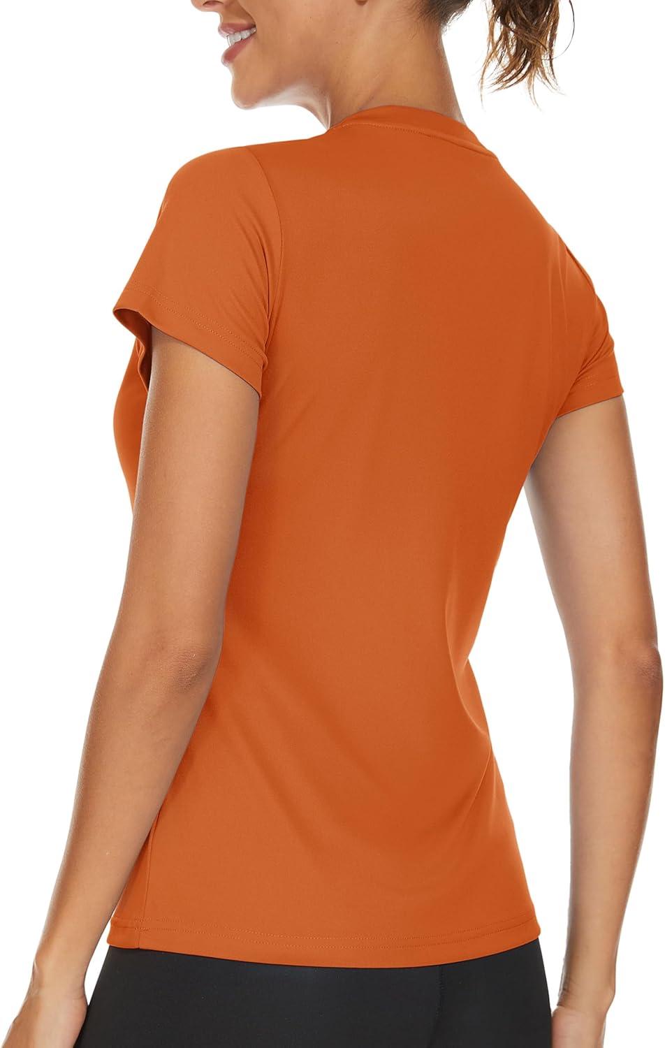 TACVASEN Workout Tops for Women UPF 50+ Sun Protection V-Neck T Shirts Short Sleeve Quick Dry Athletic Running Shirts(Dark Orange)