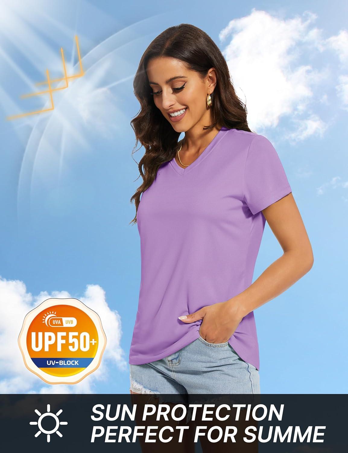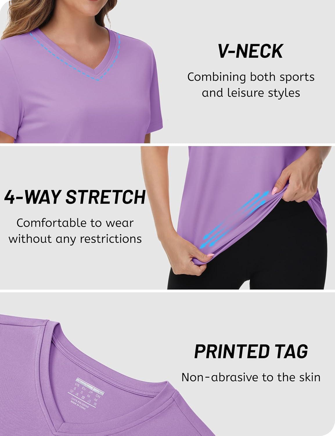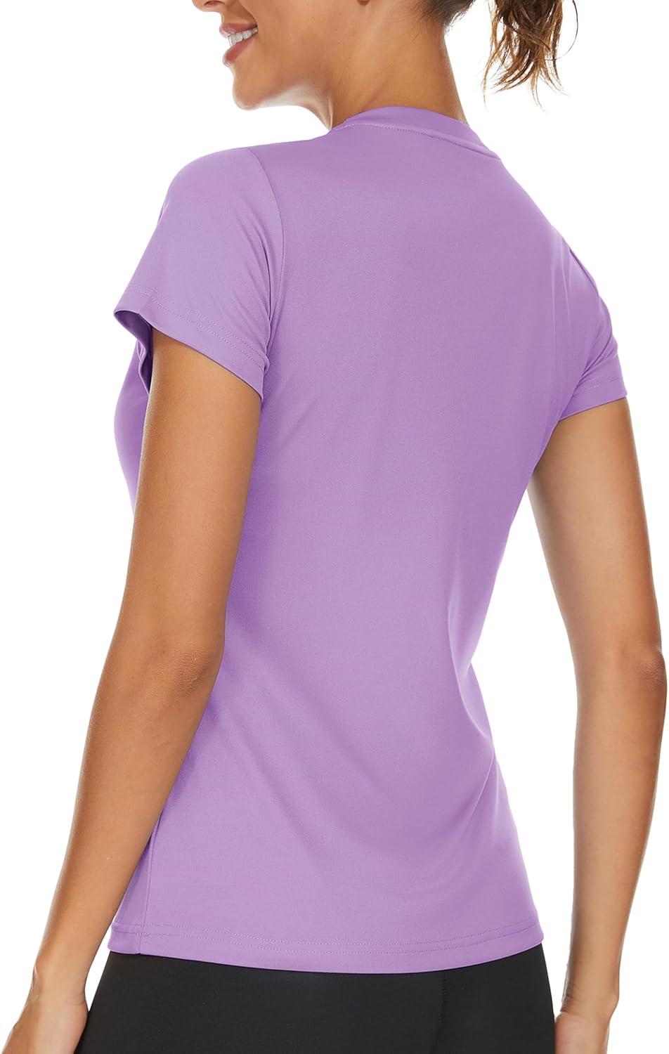 TACVASEN Workout Tops for Women UPF 50+ Sun Protection V-Neck T Shirts Short Sleeve Quick Dry Athletic Running Shirts(Gray Purple)