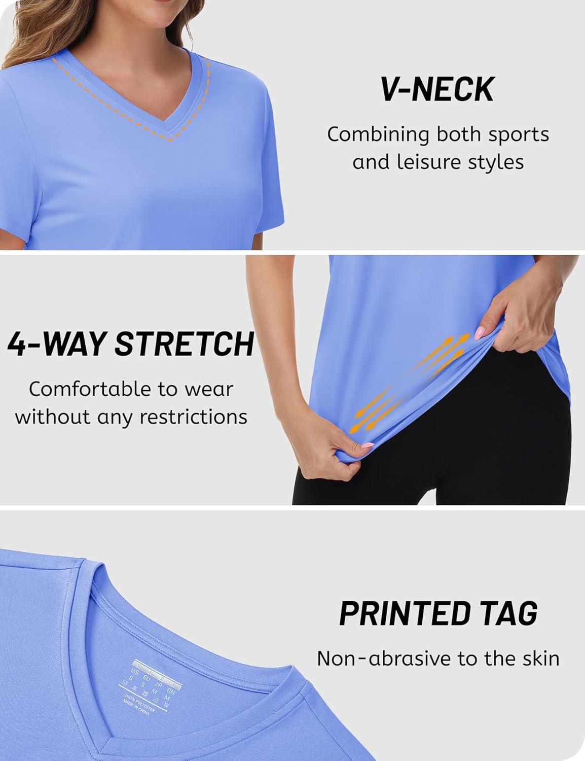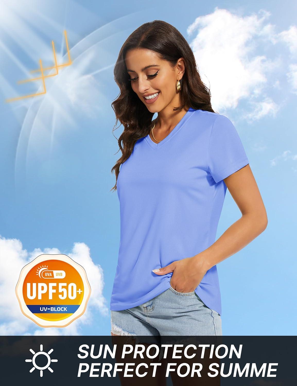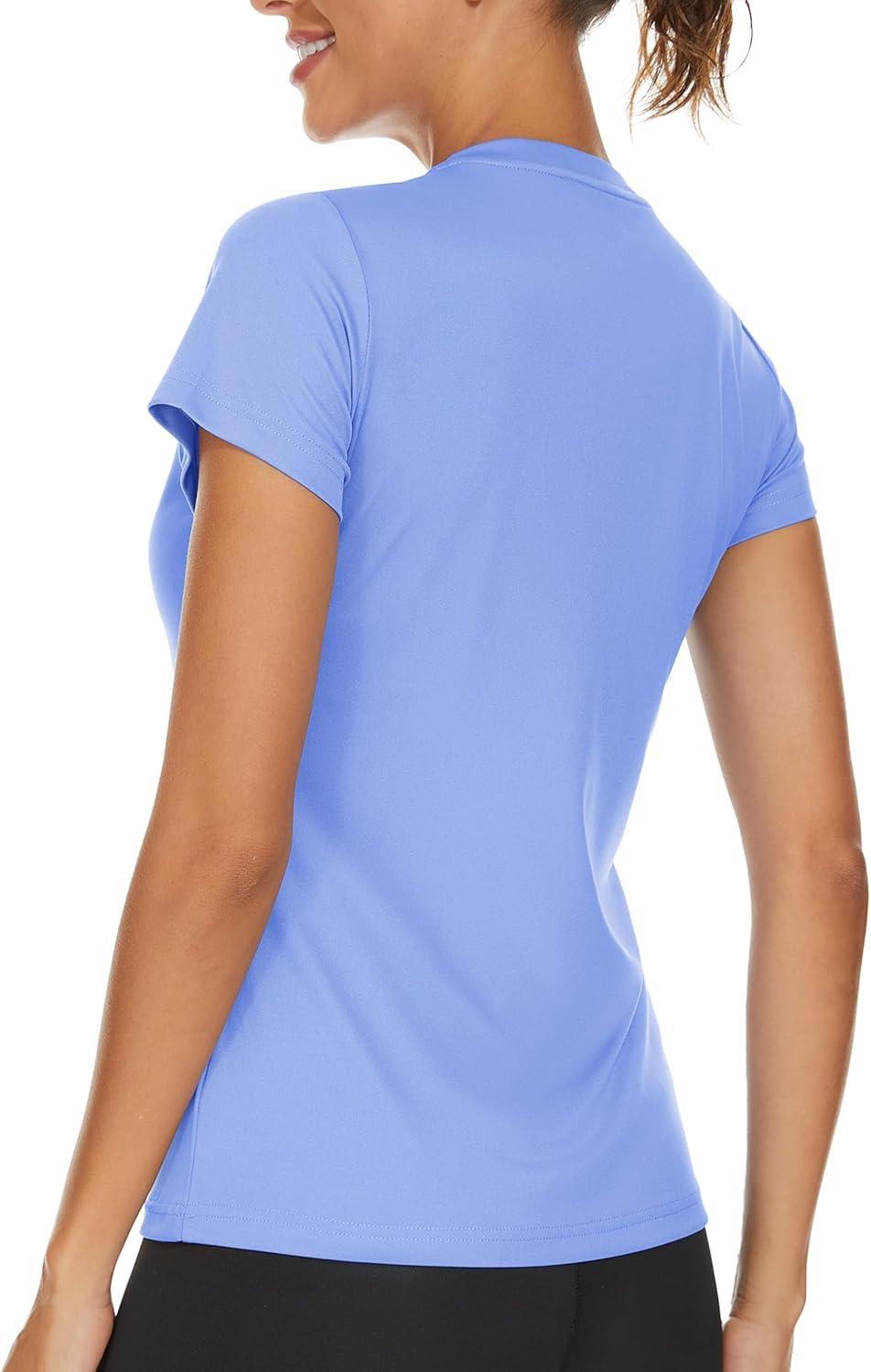 TACVASEN Workout Tops for Women UPF 50+ Sun Protection V-Neck T Shirts Short Sleeve Quick Dry Athletic Running Shirts(Lake Blue)
